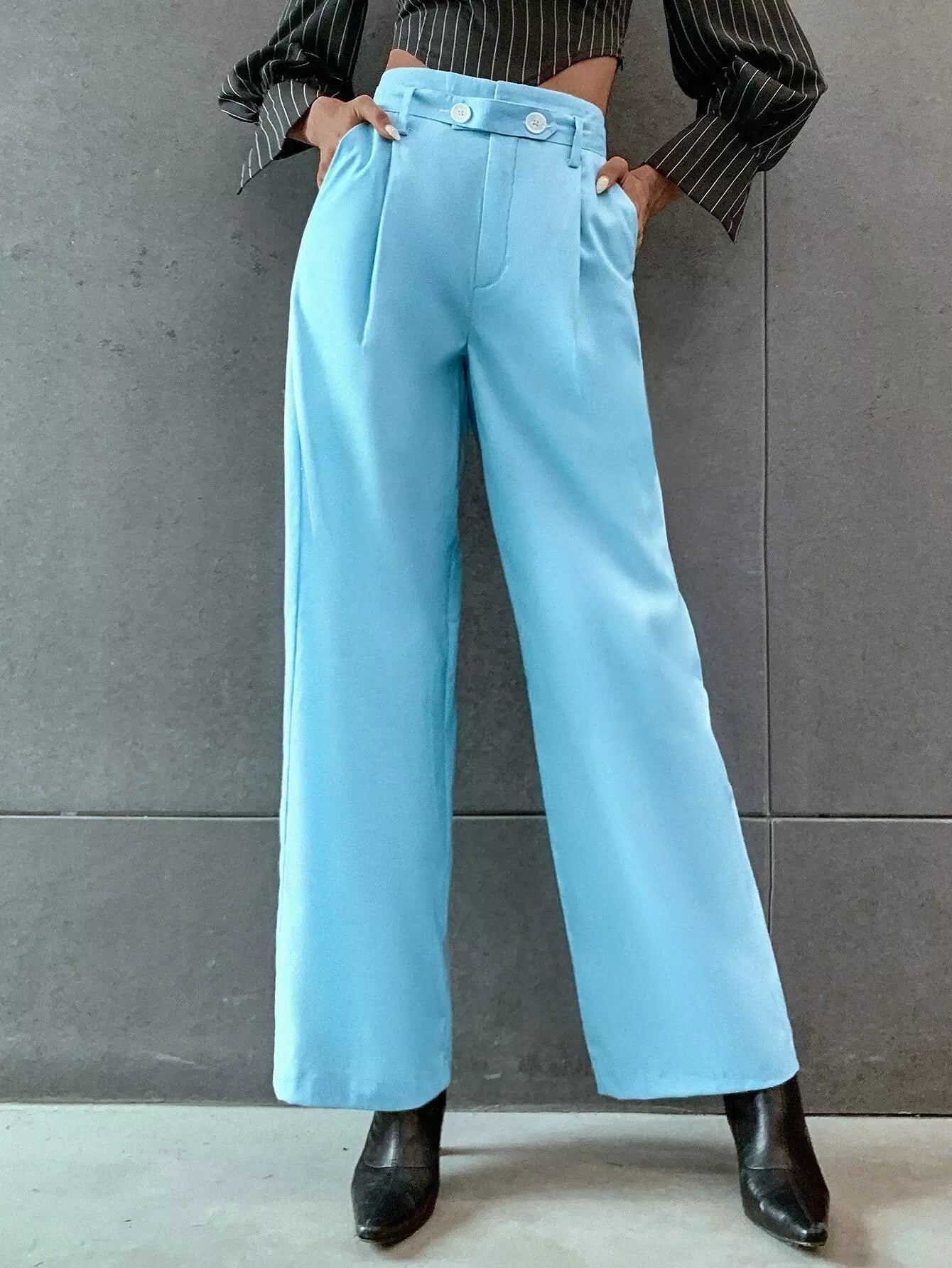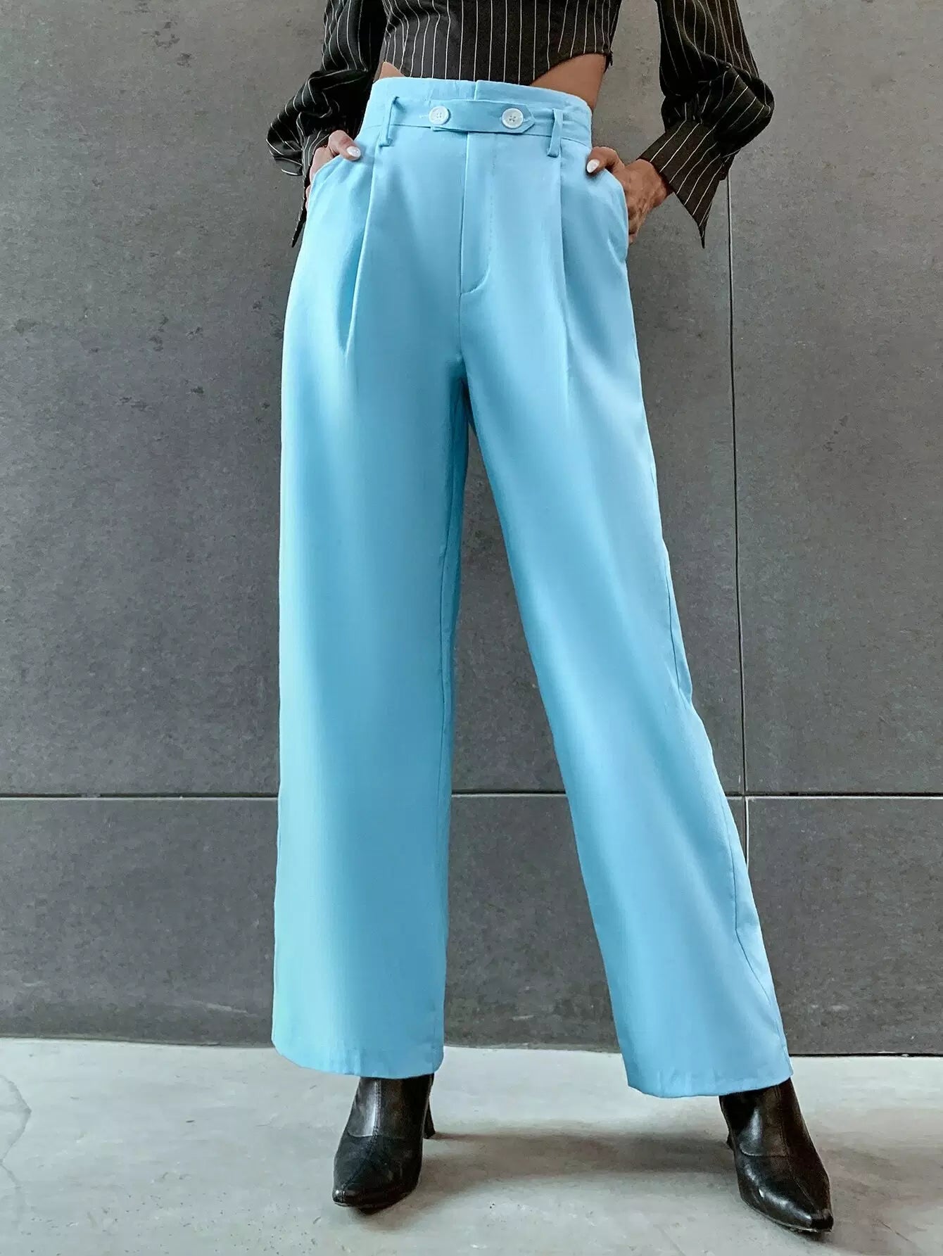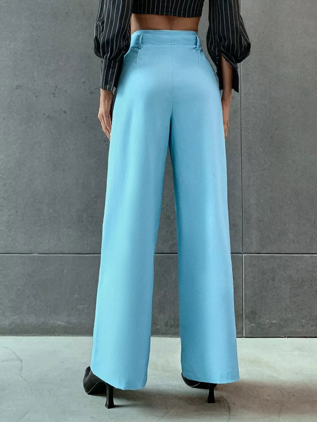 للنساء - بنطال واسع الساق بجيوب مائلة