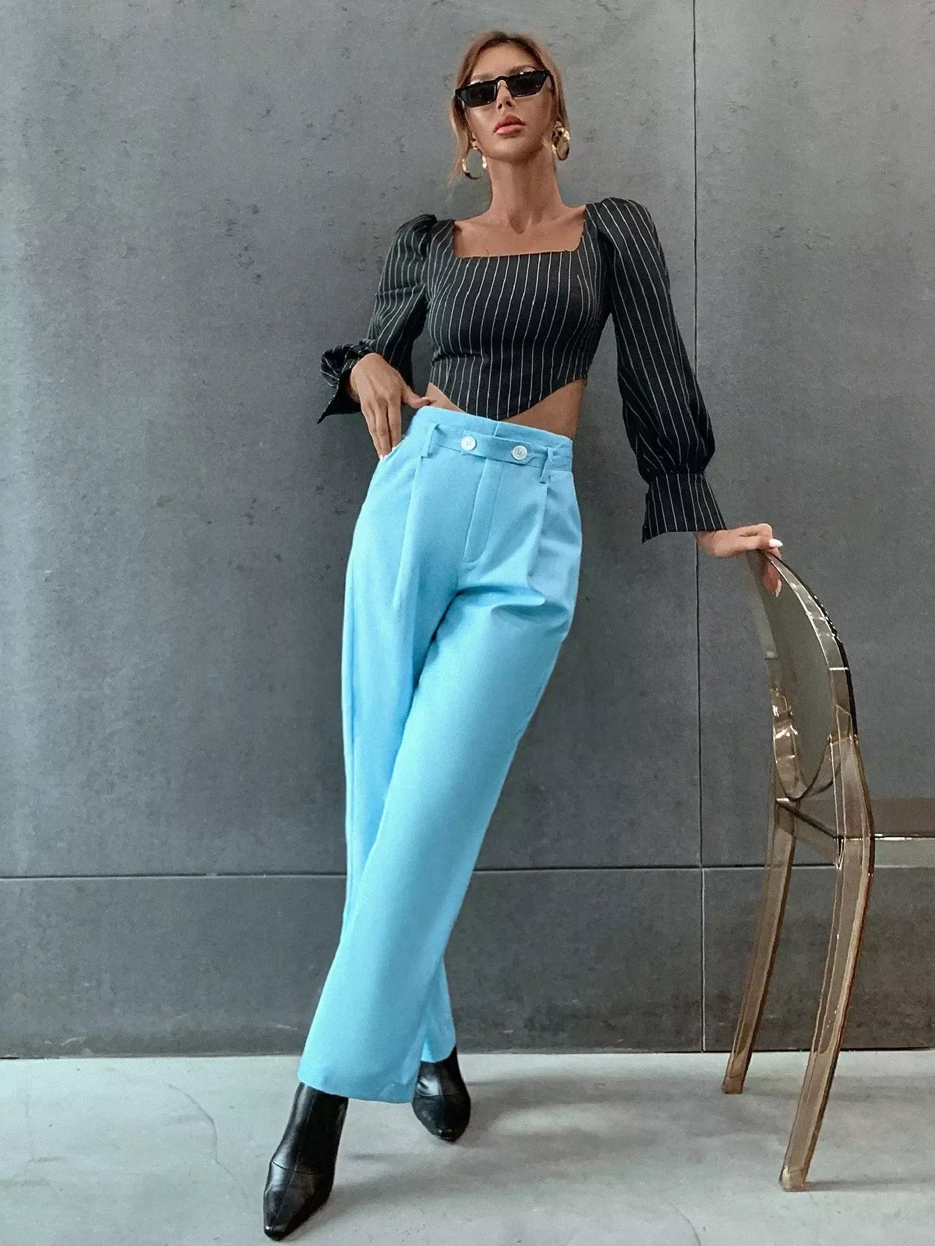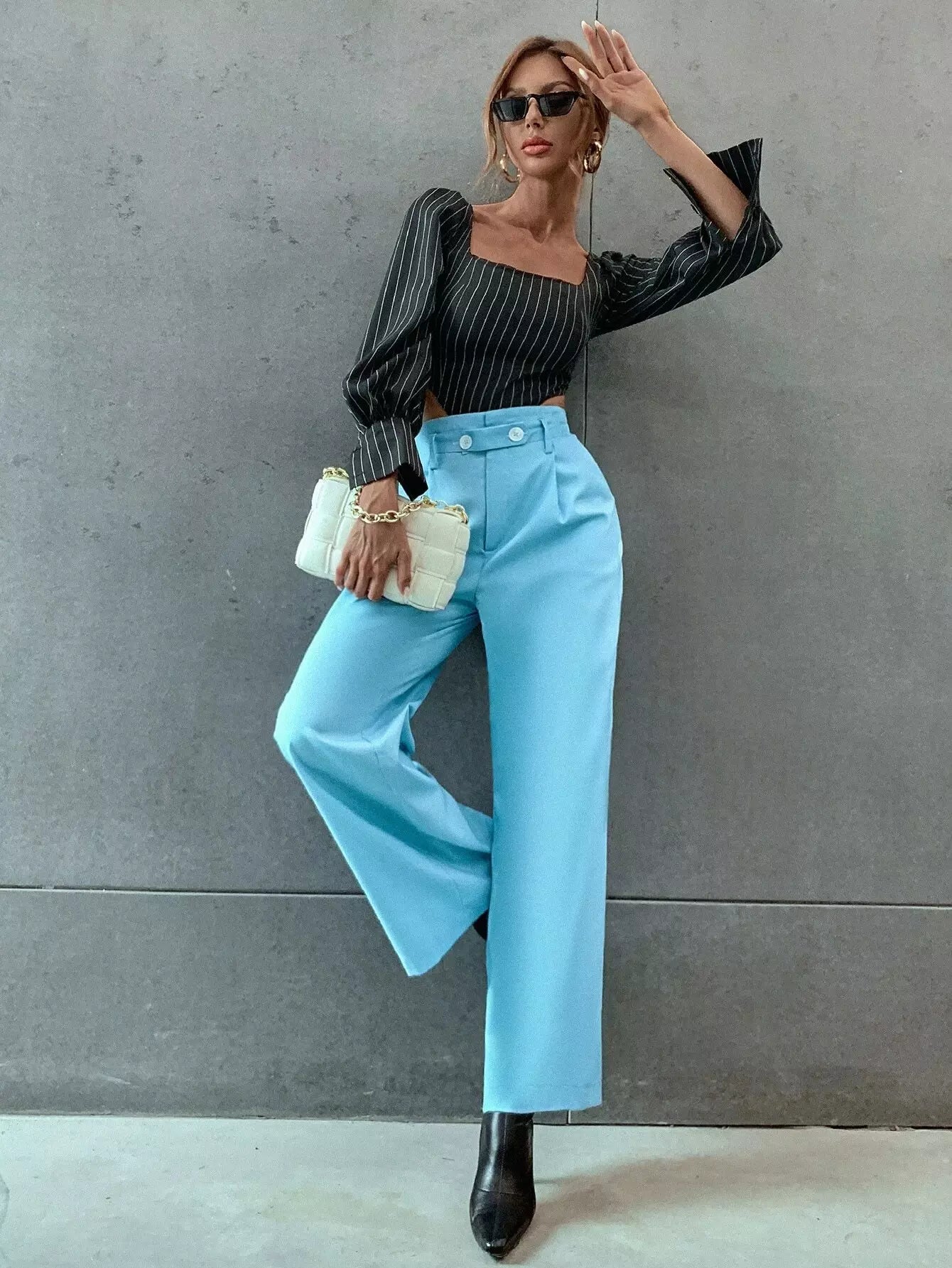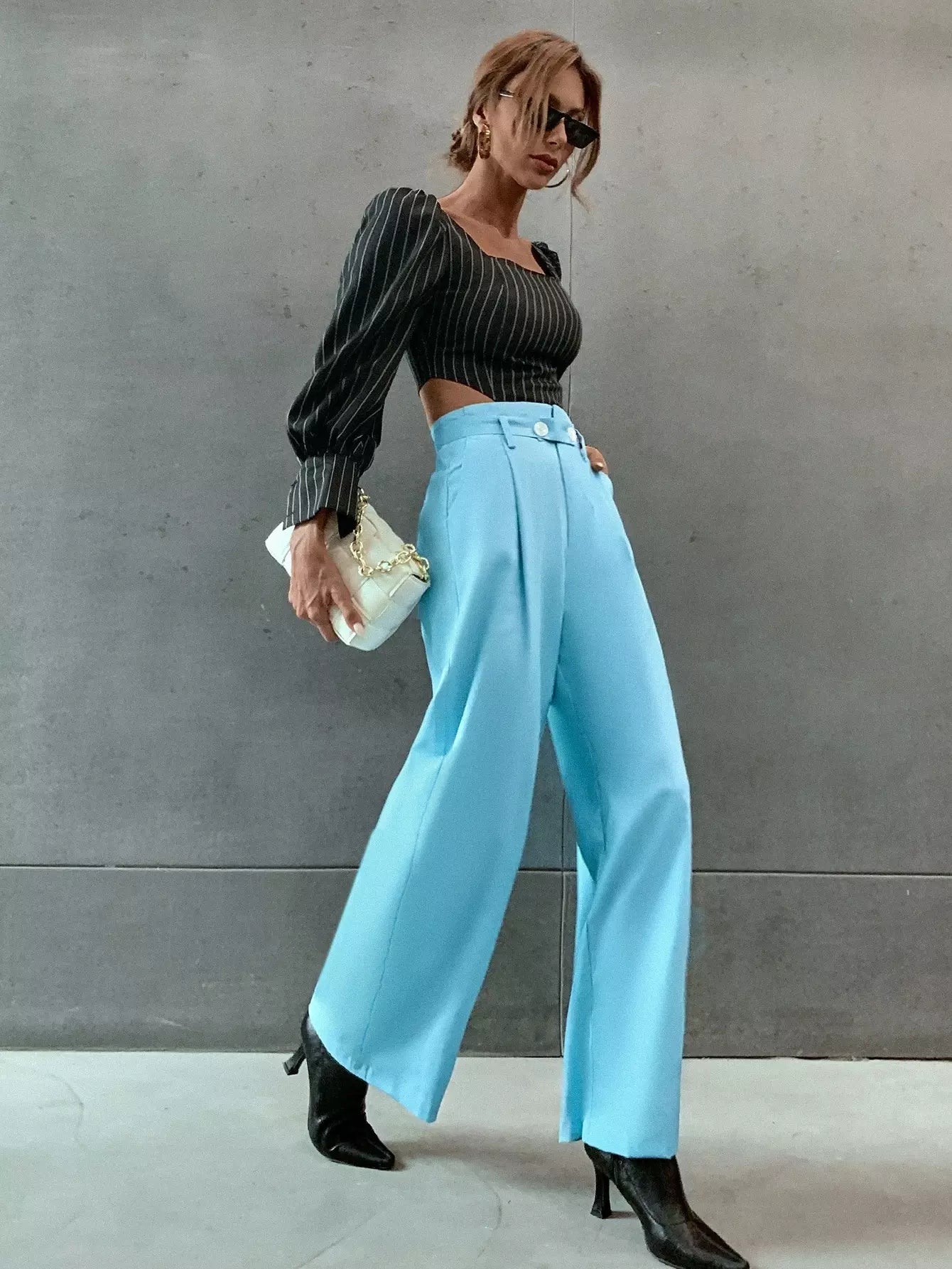 للنساء - بنطال واسع الساق بجيوب مائلة