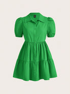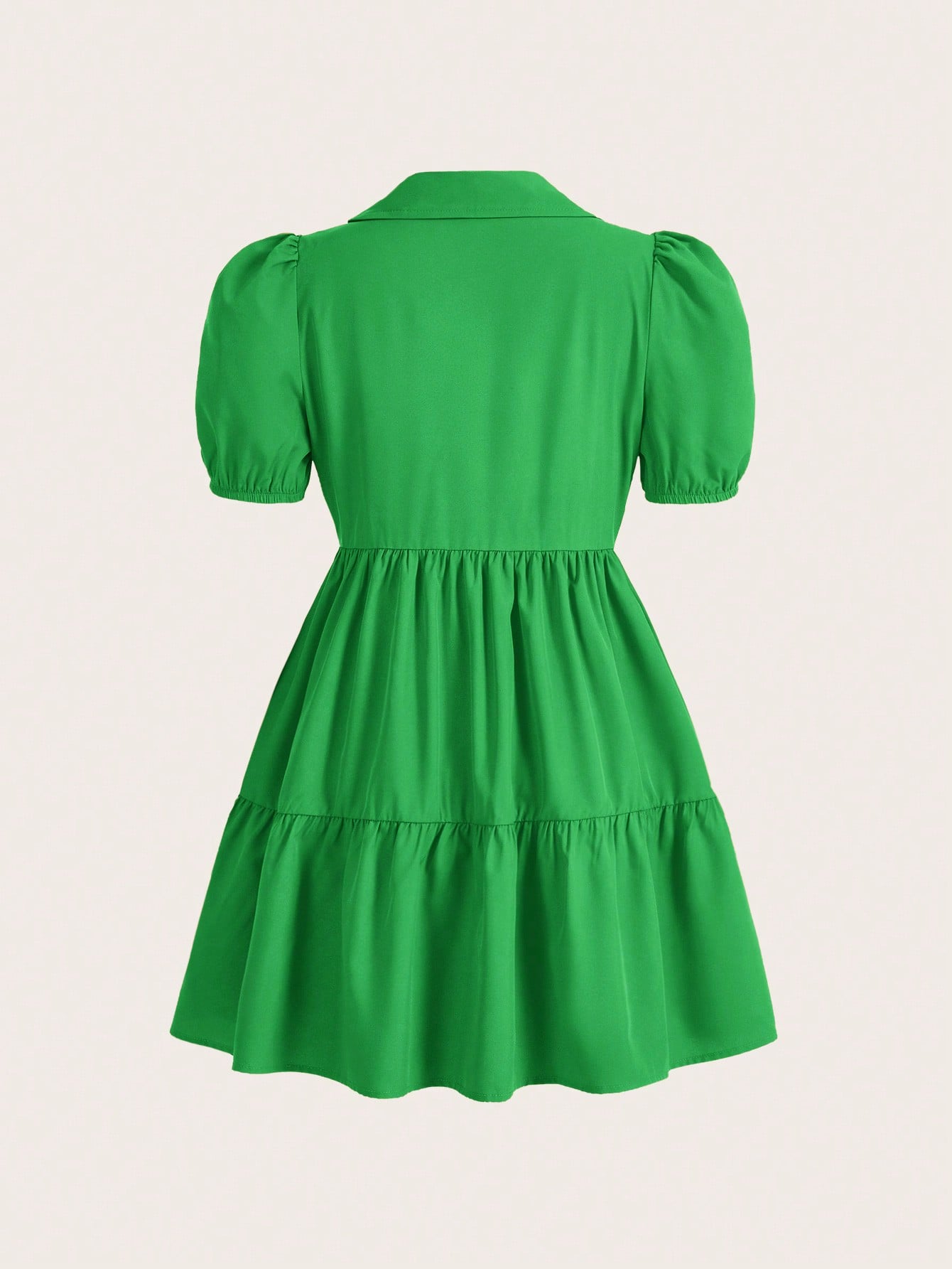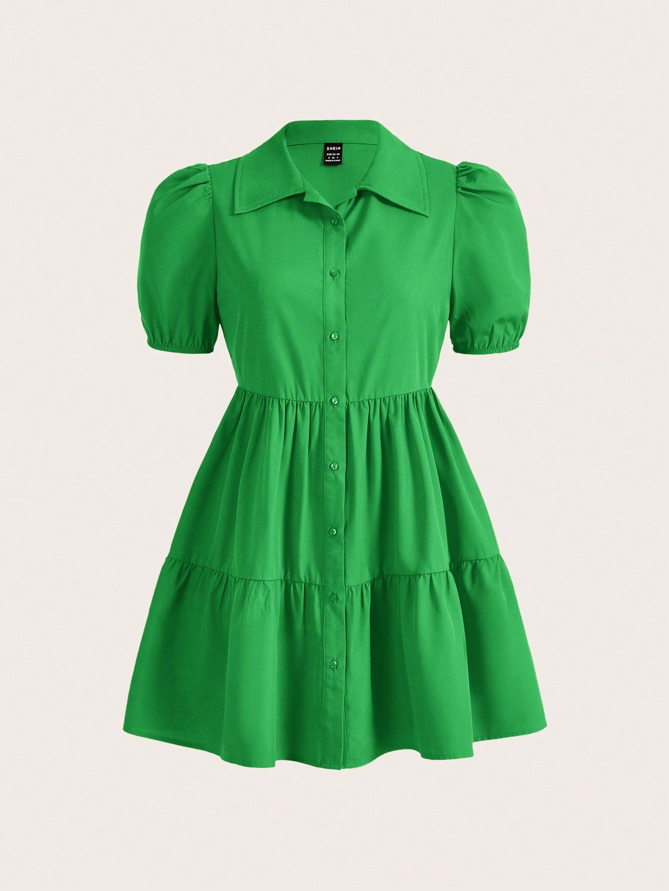 Slaydiva Resort Puff Sleeve V-Neck Layered Cake Loose Dress