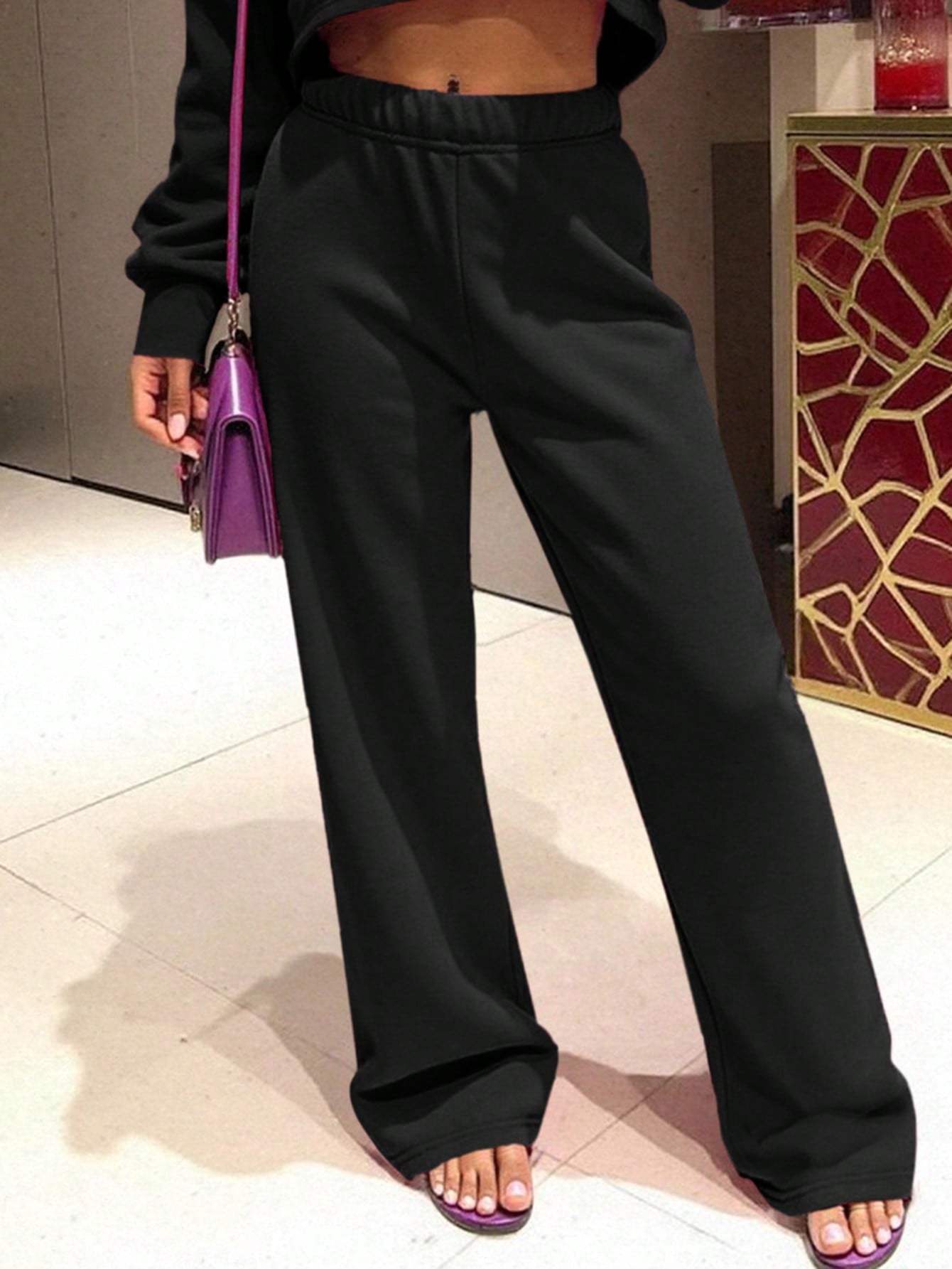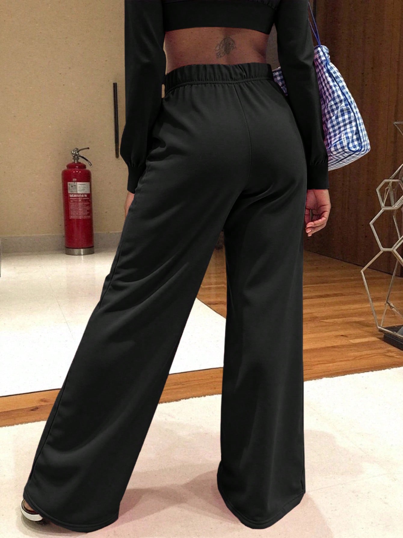 بنطال رياضي نسائي أسود اللون من Slayr، بخصر برباط، مناسب للإطلالات الكاجوال.