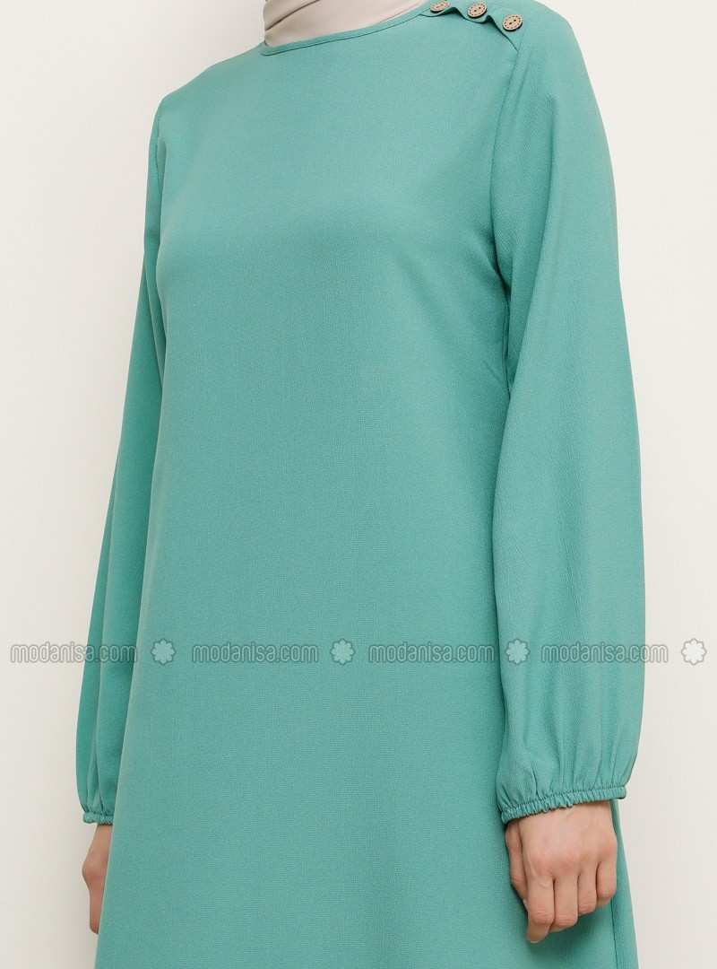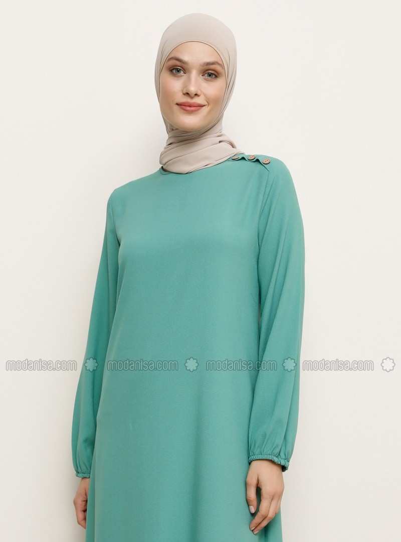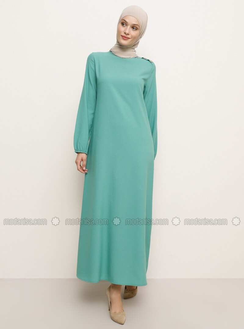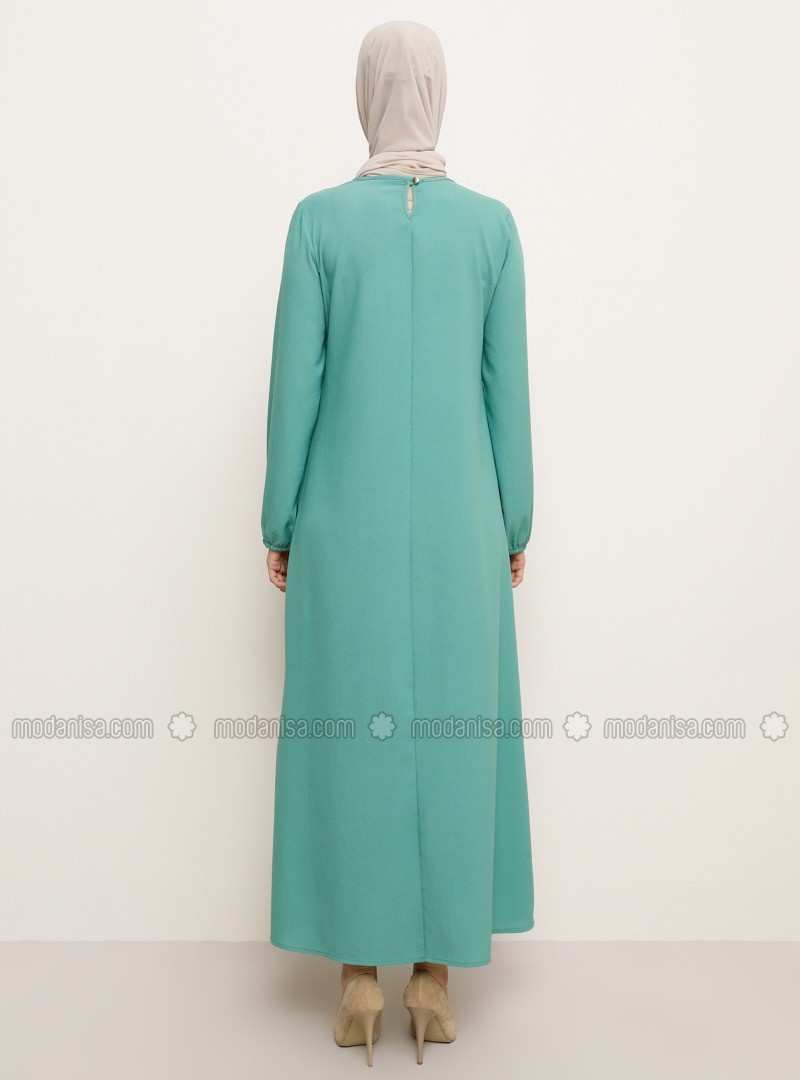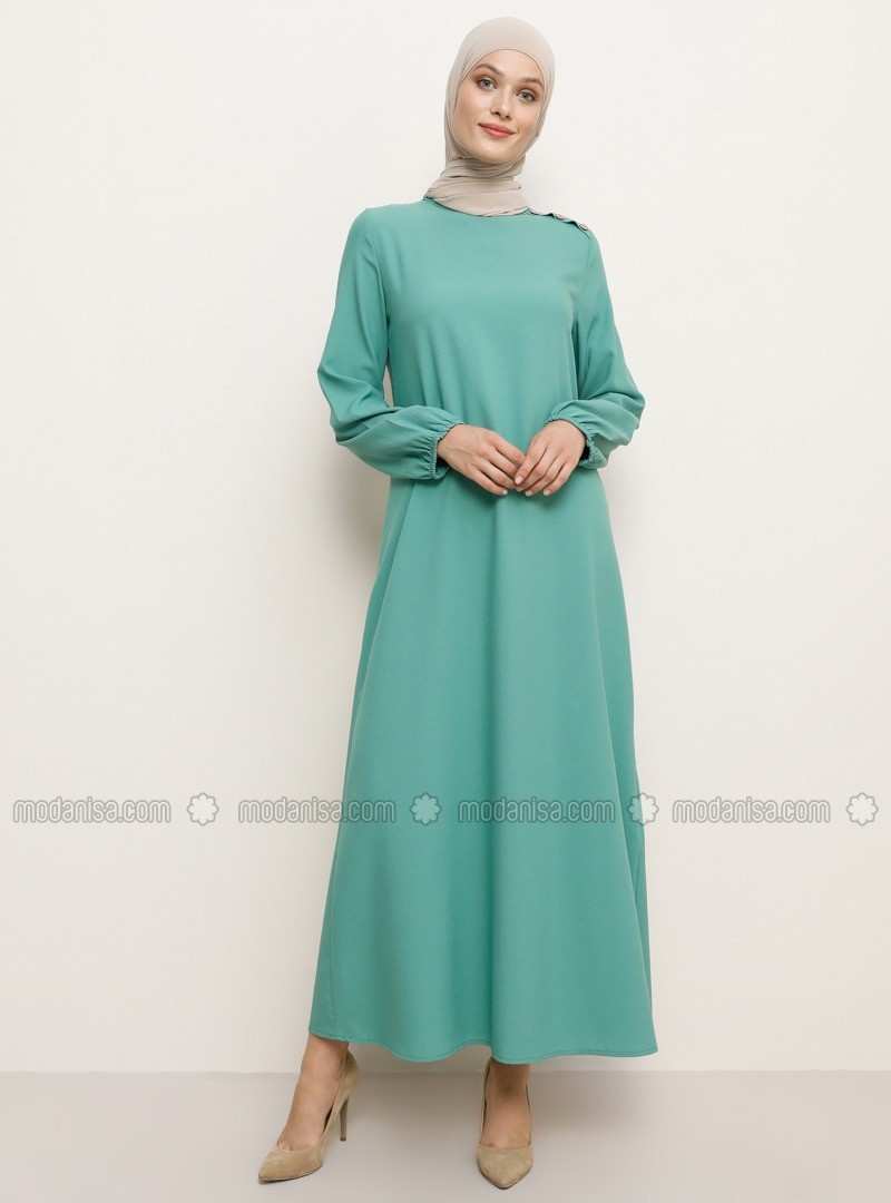 فستان بأكمام مطاطية بتفاصيل اللوز الأخضر