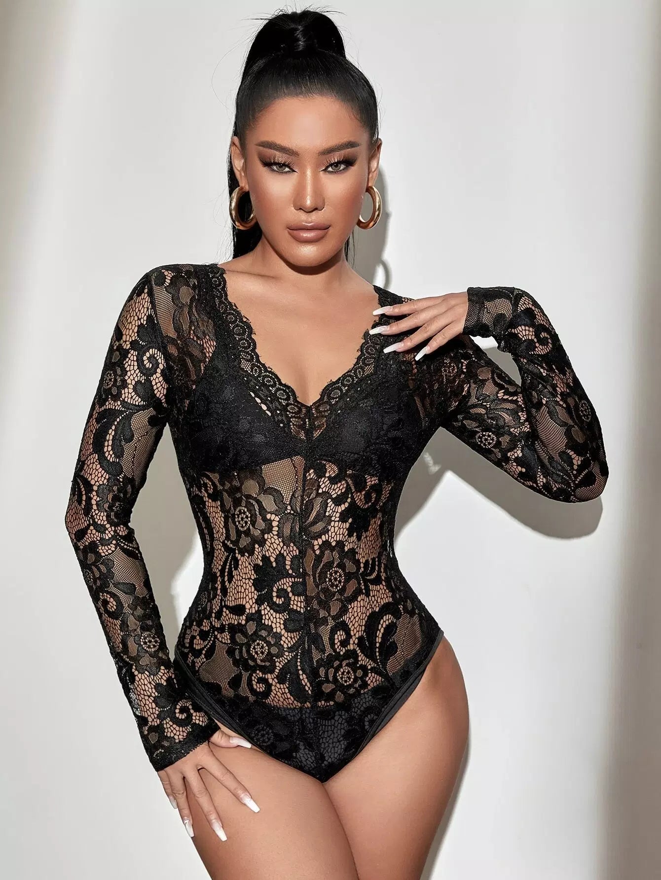 بدلة داخلية ضيقة من الدانتيل بقصة ضيقة بدون ملابس داخلية