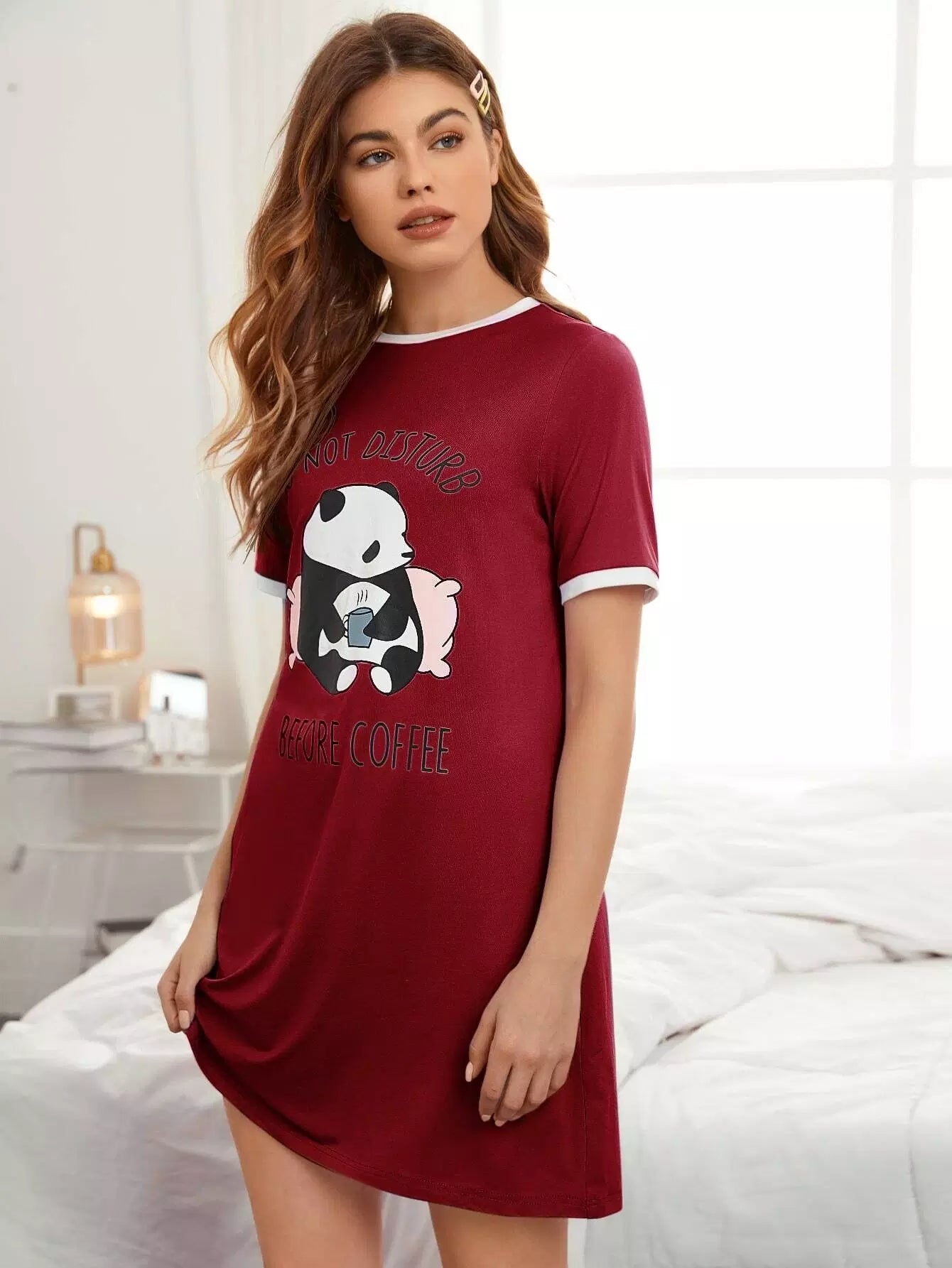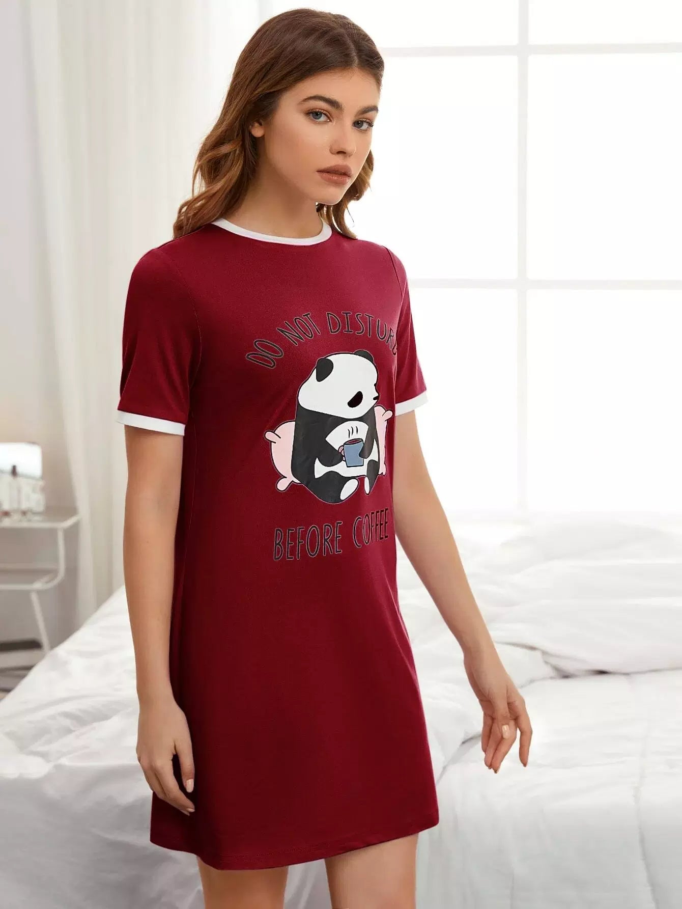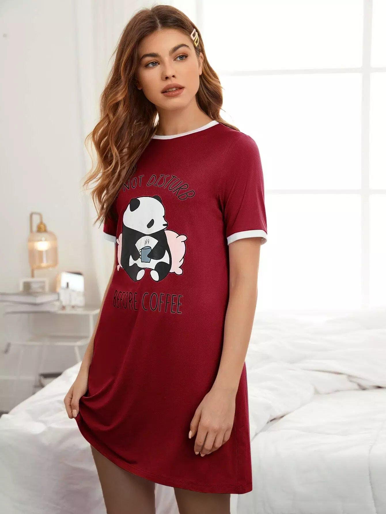 فستان نوم مزين بشعارات ورسومات كارتونية