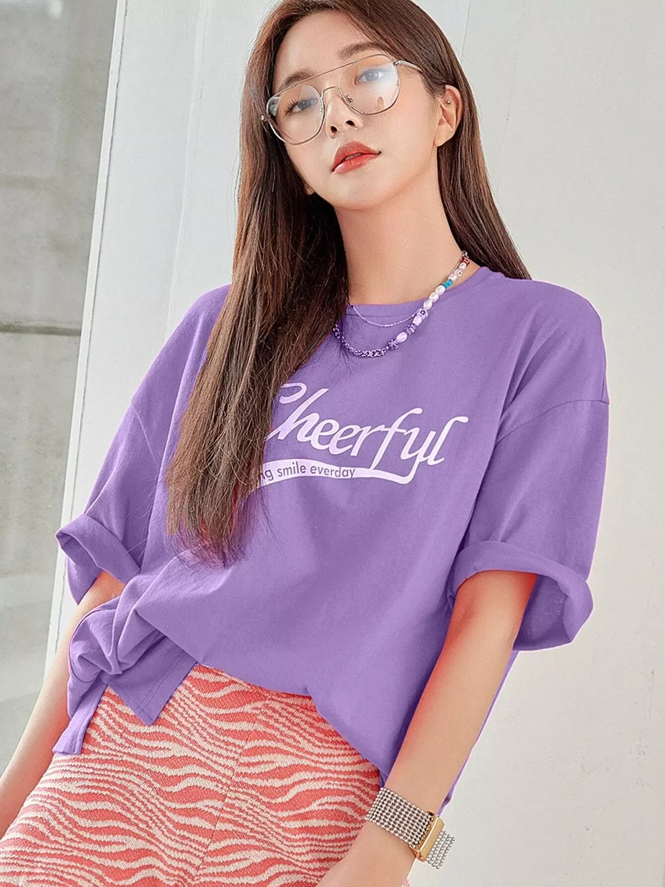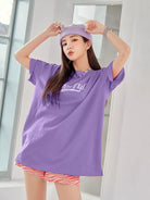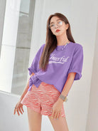 تي شيرت ذو أكتاف منسدلة جرافيك شعار