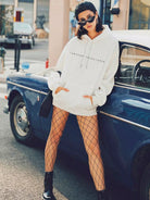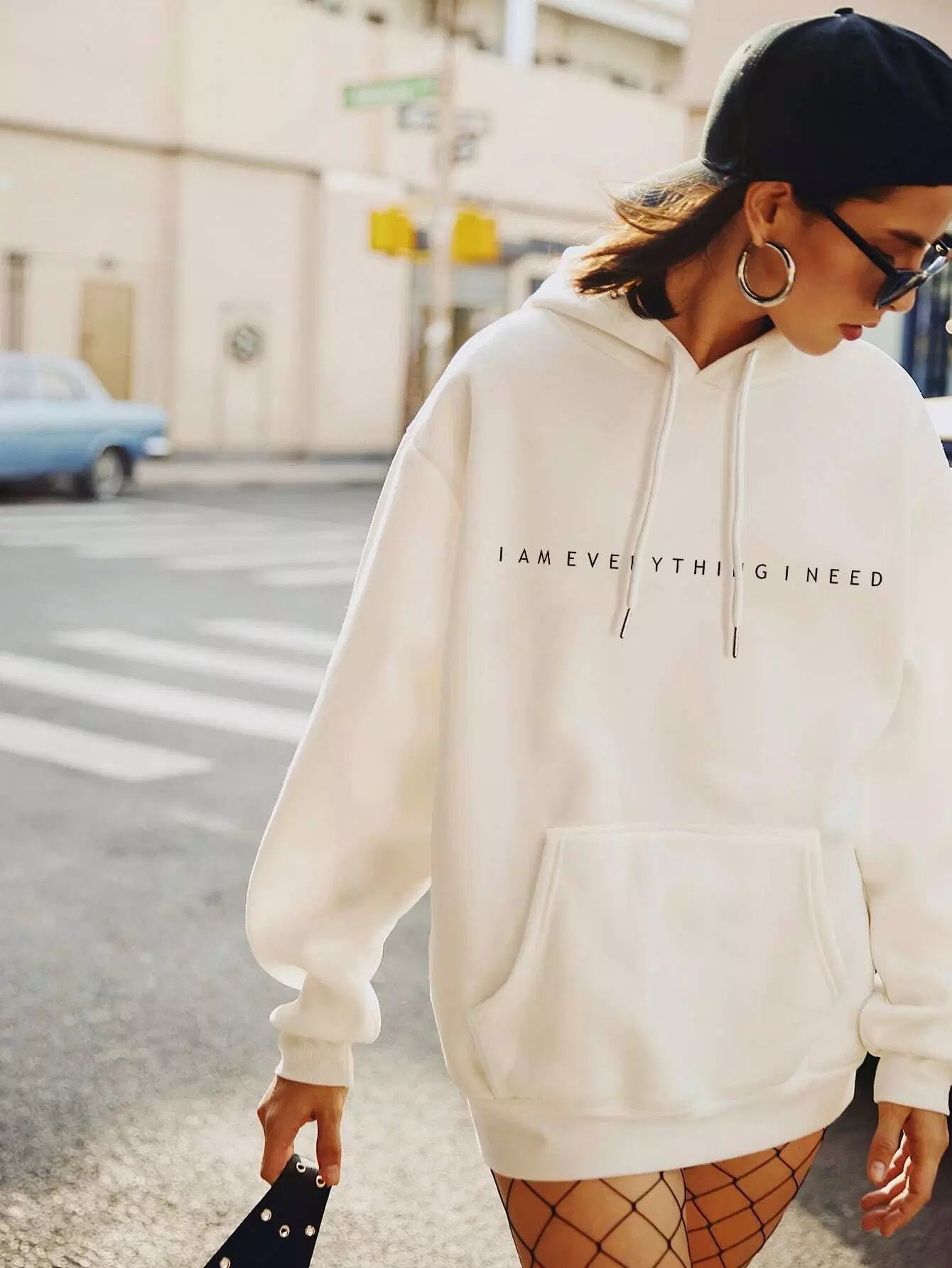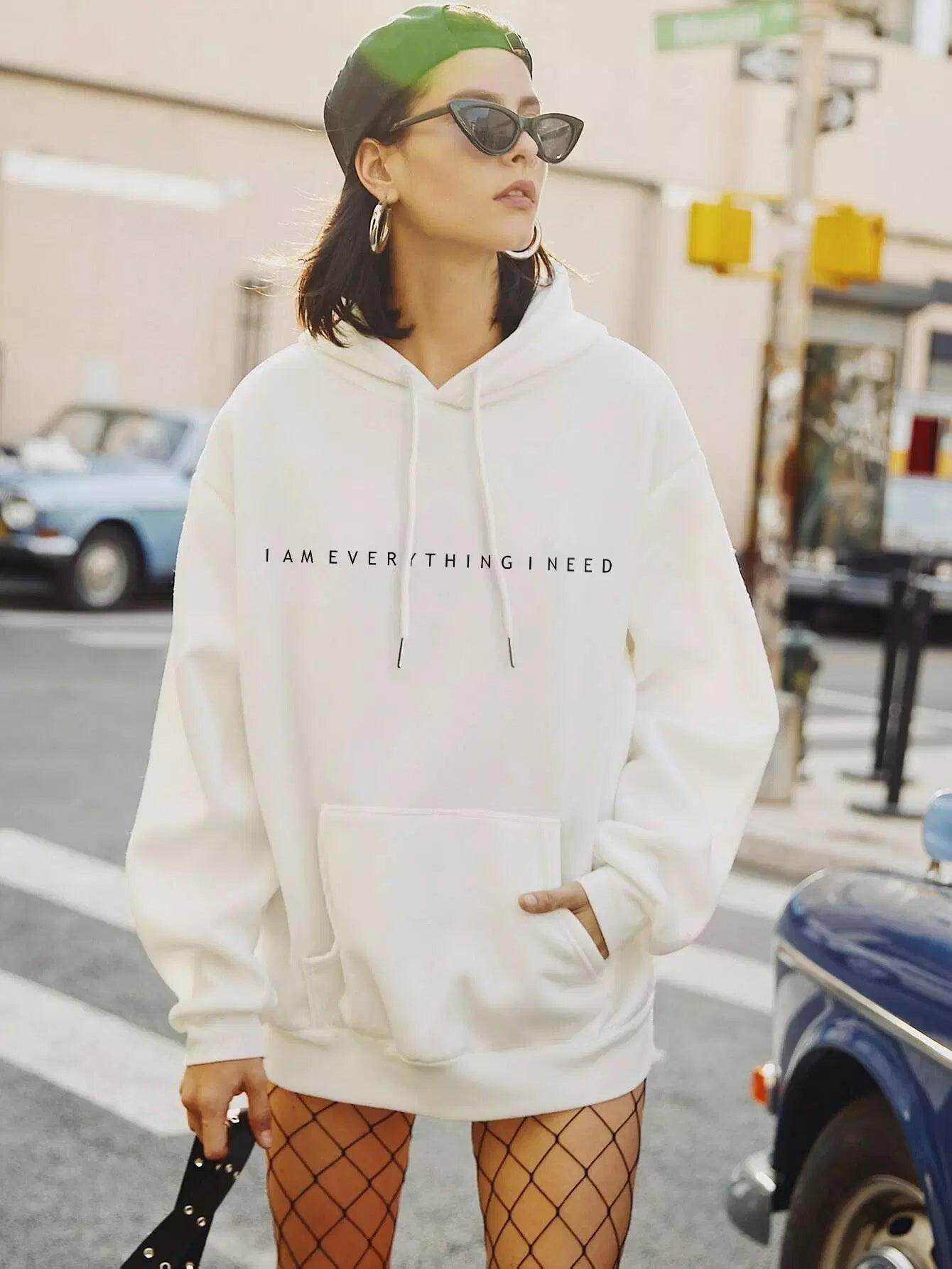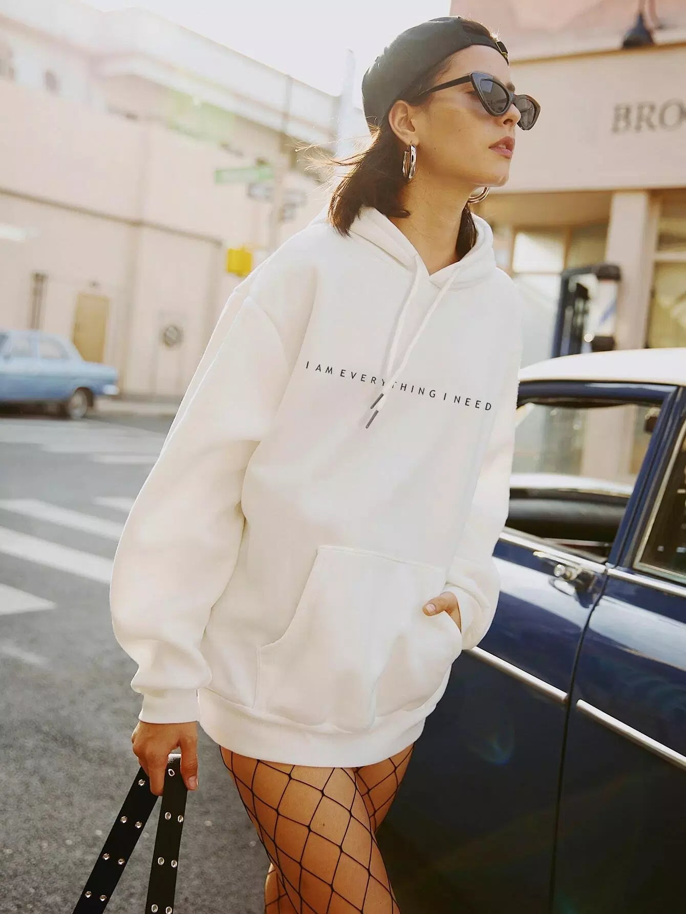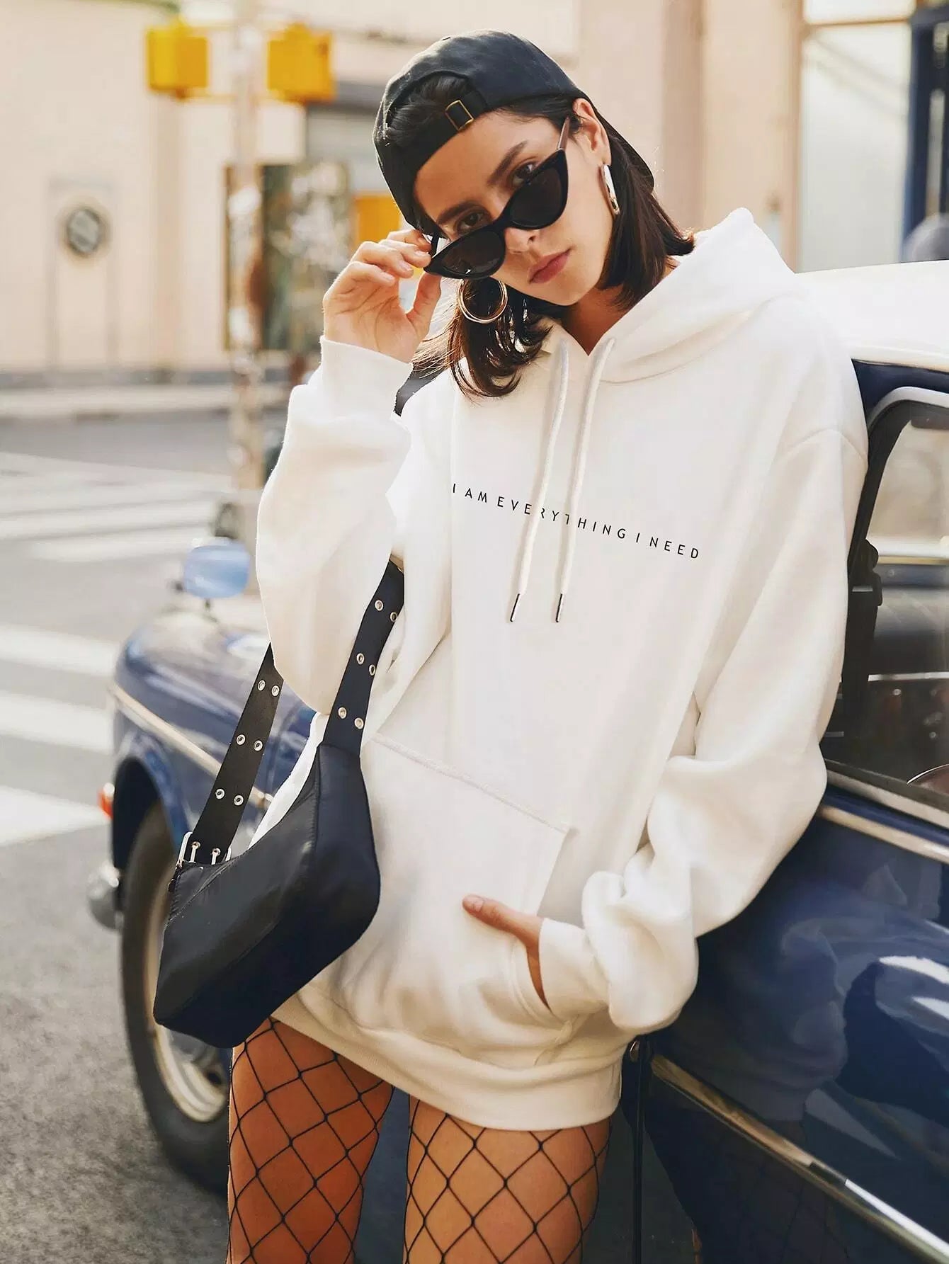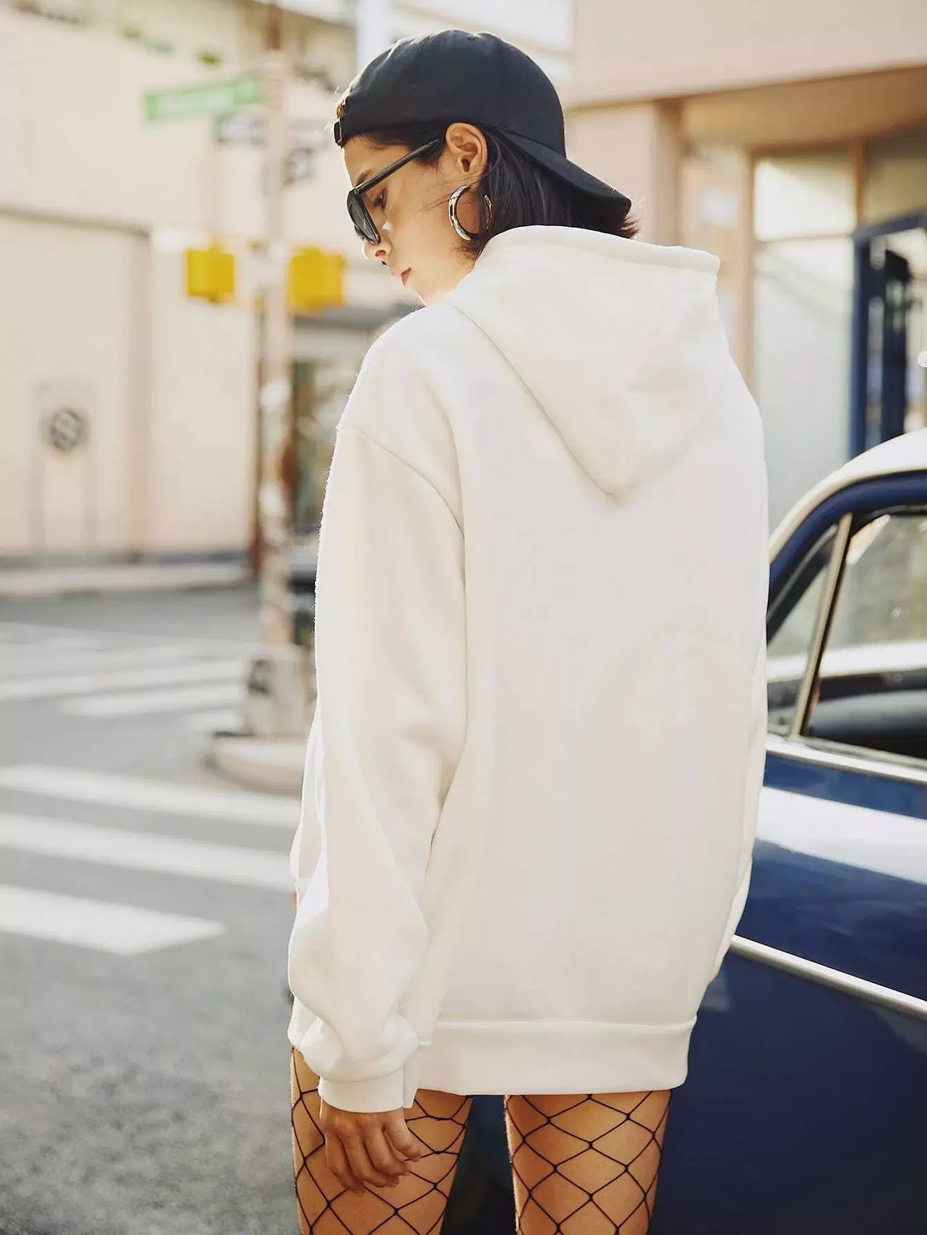 هودي مزين بشعار شعار جرافيك من الصوف المبطن برباط من الصوف