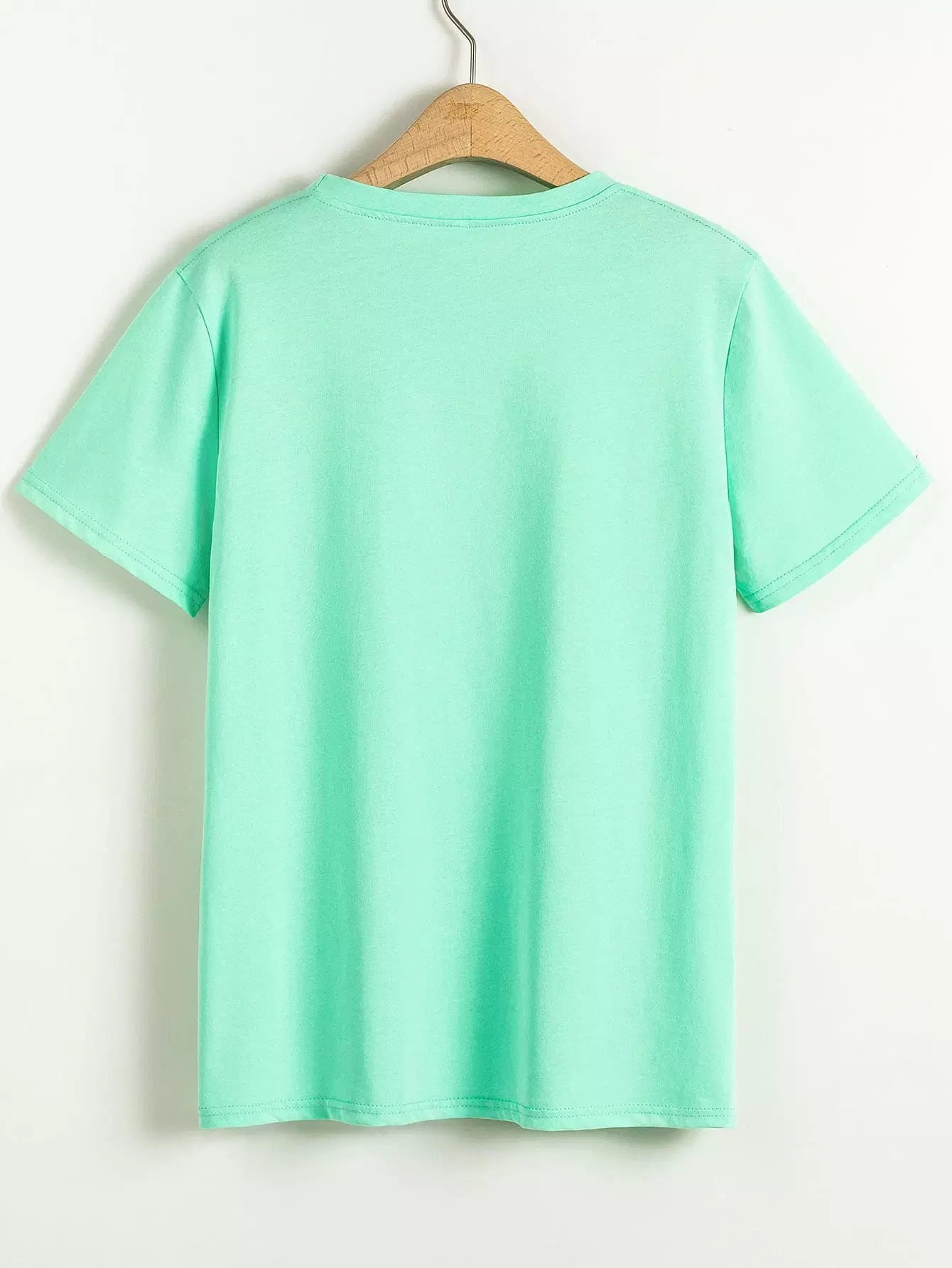 للنساء - تي شيرت برقبة دائرية ورسومات الشعار
