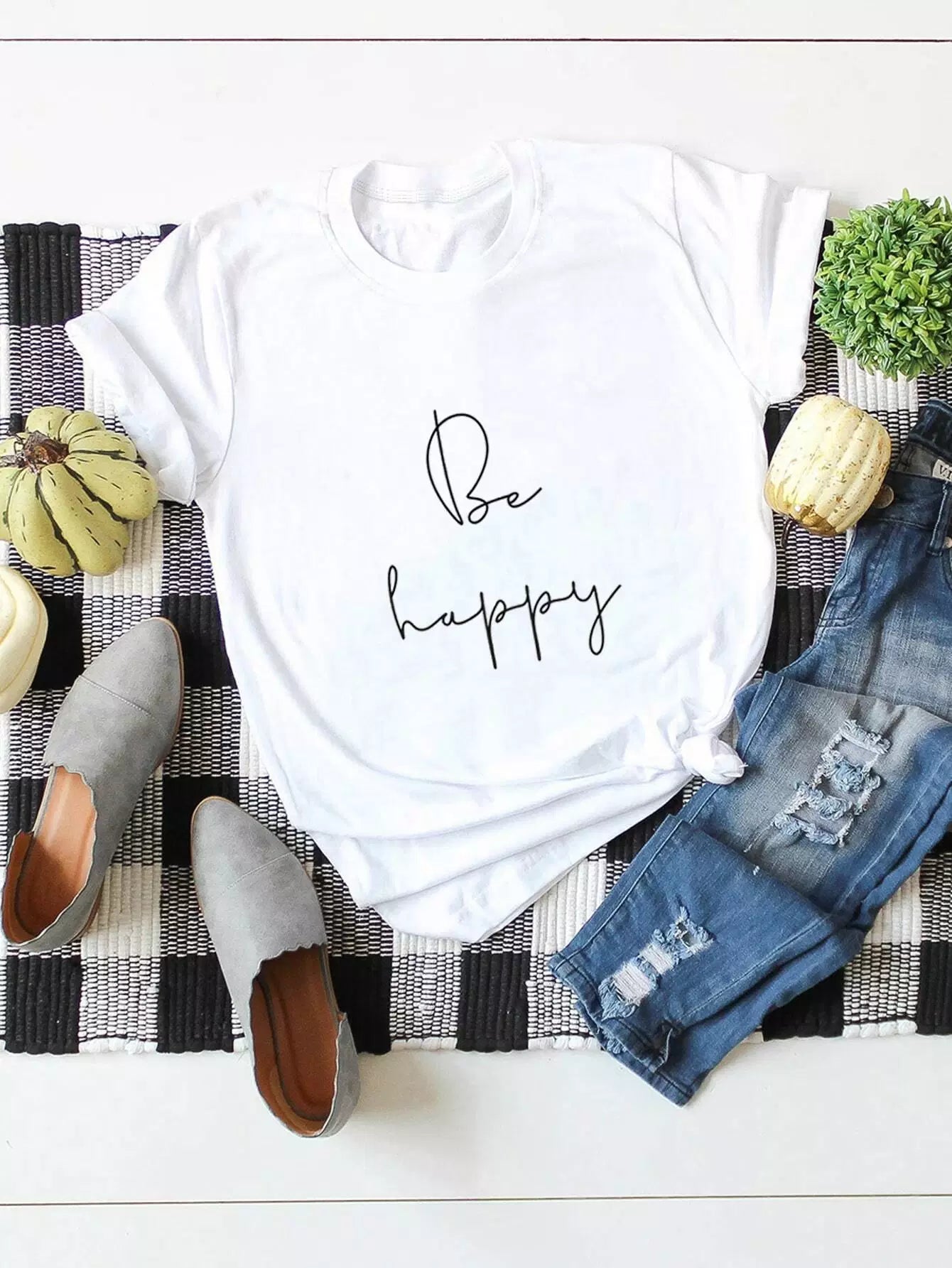 للنساء - تي شيرت برسومات الشعار وأكمام قصيرة