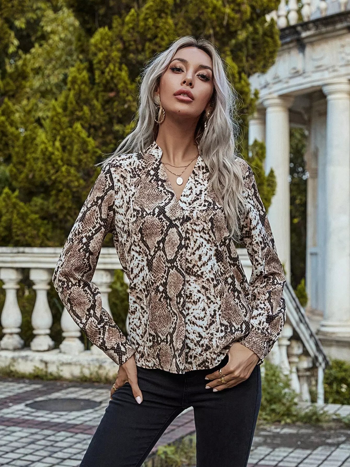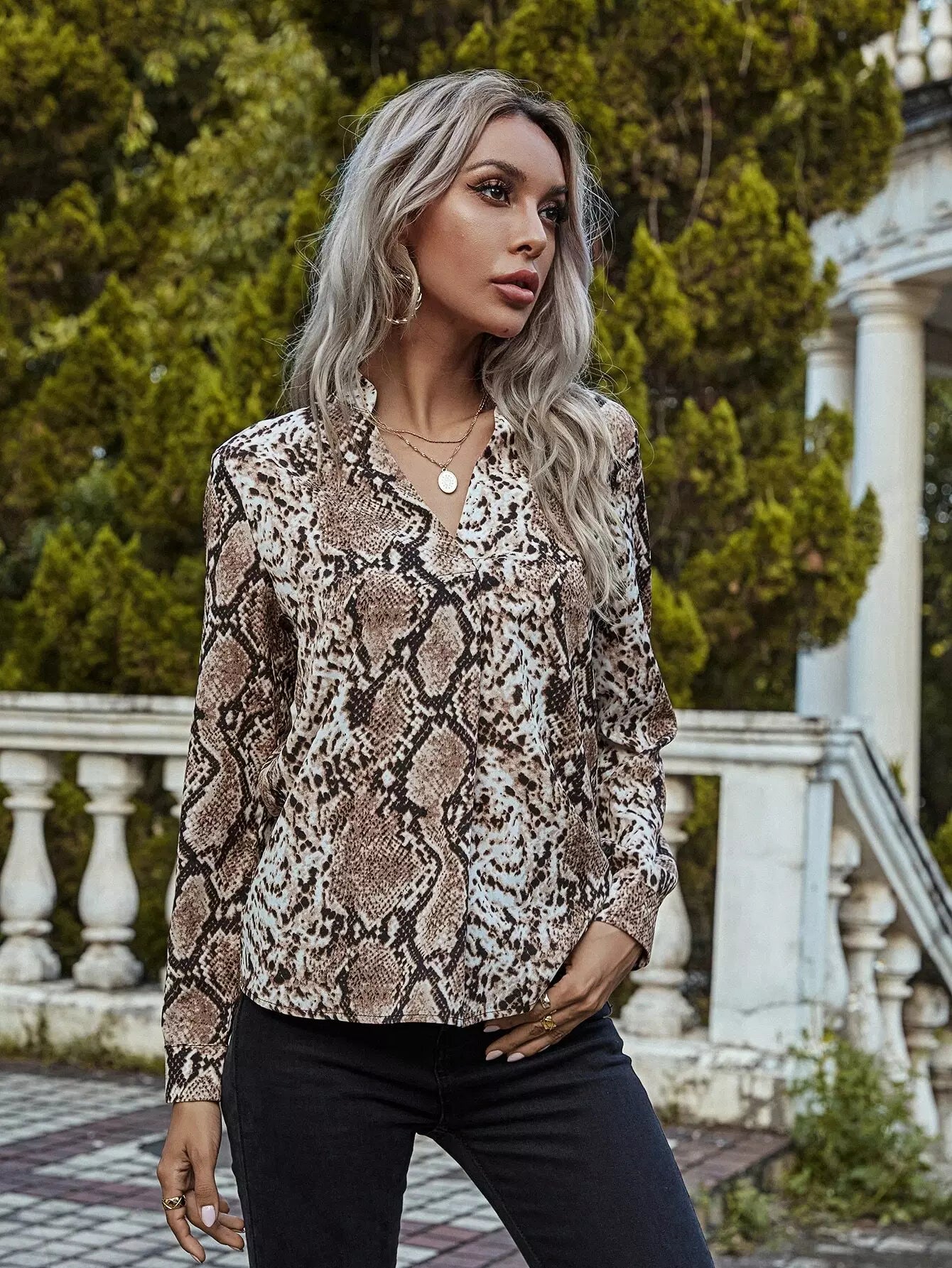 بلوزة بطبعة جلد الثعبان برقبة برقبة منقوشة