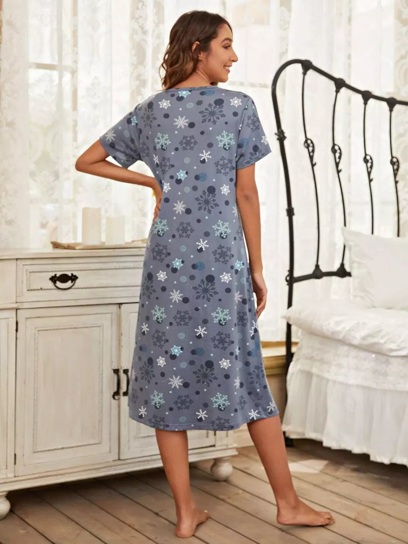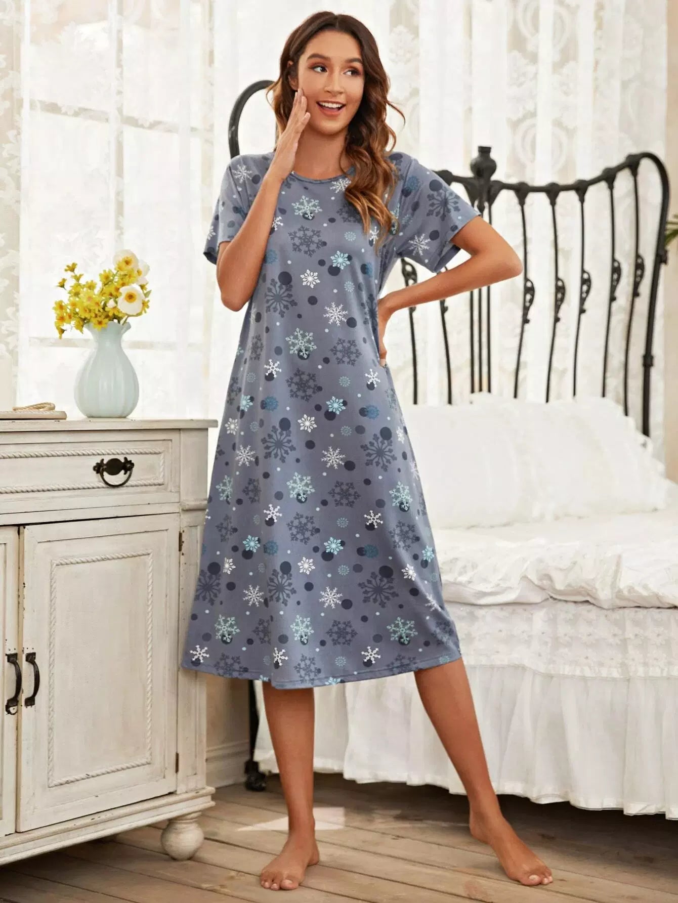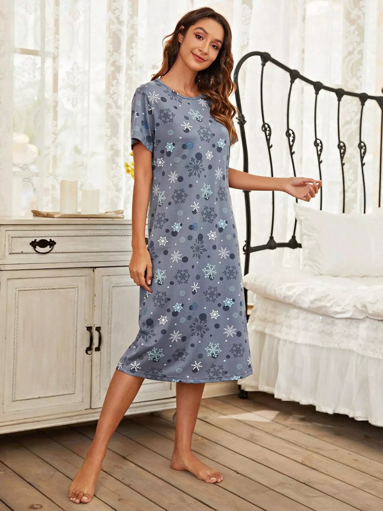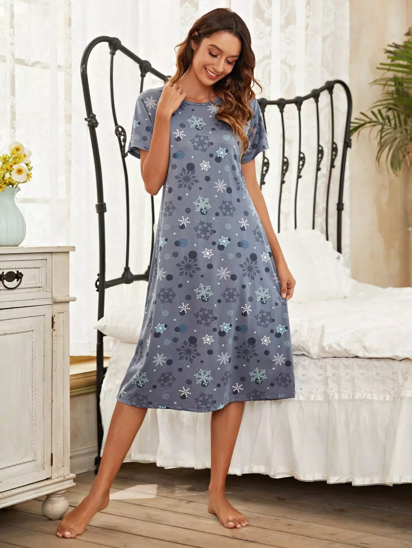 للنساء - فستان نوم بتصميم ندفات الثلج ونقاط البولكا