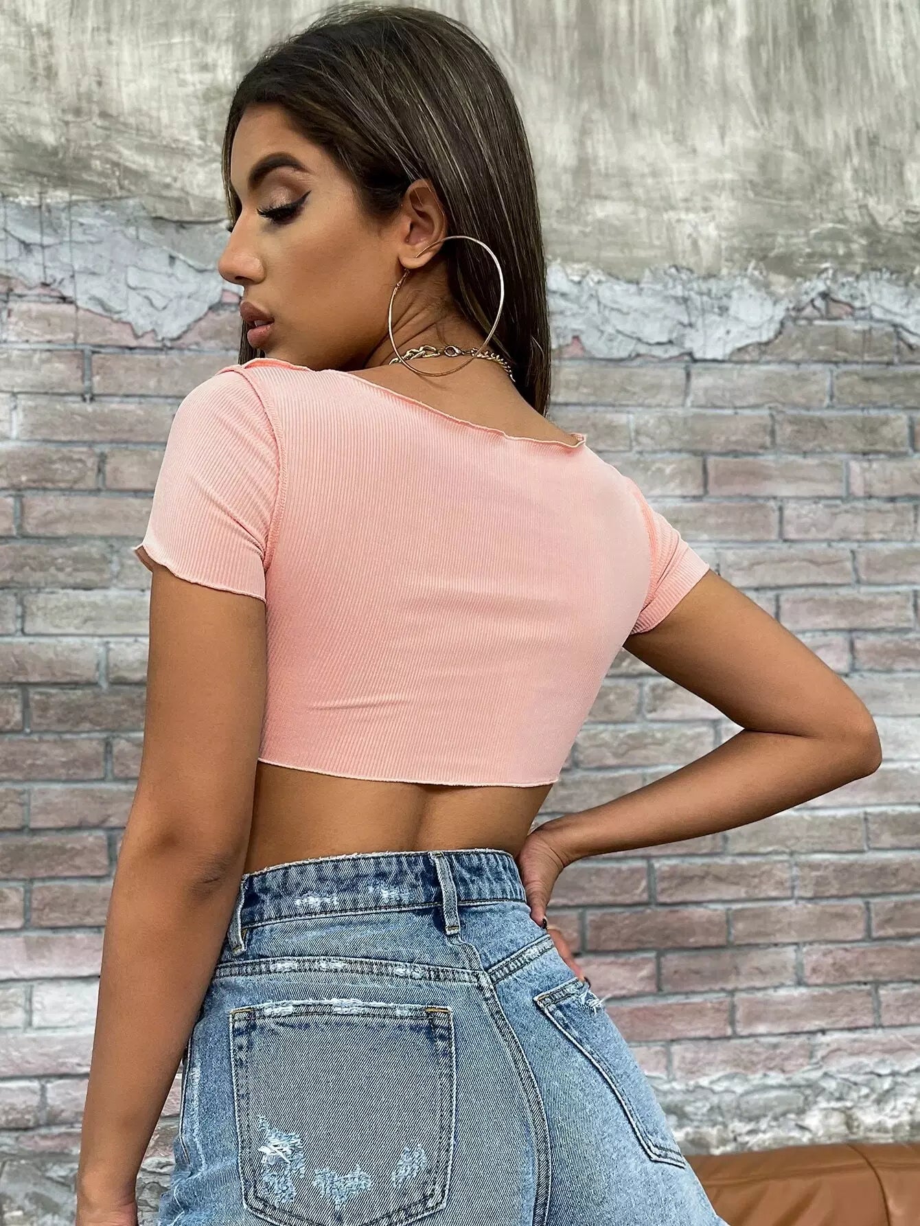 تي شيرت سادة بحاشية غير متماثلة