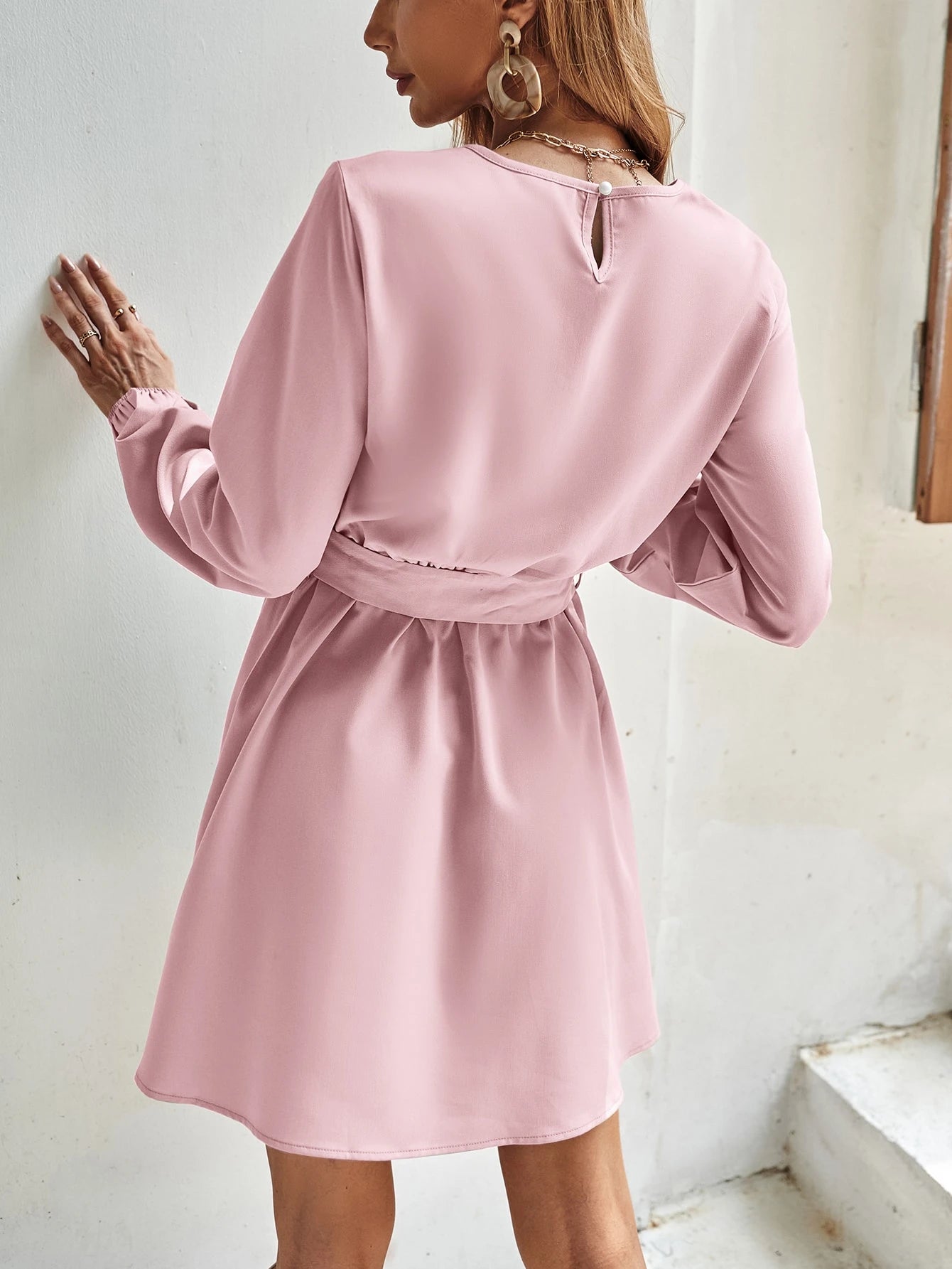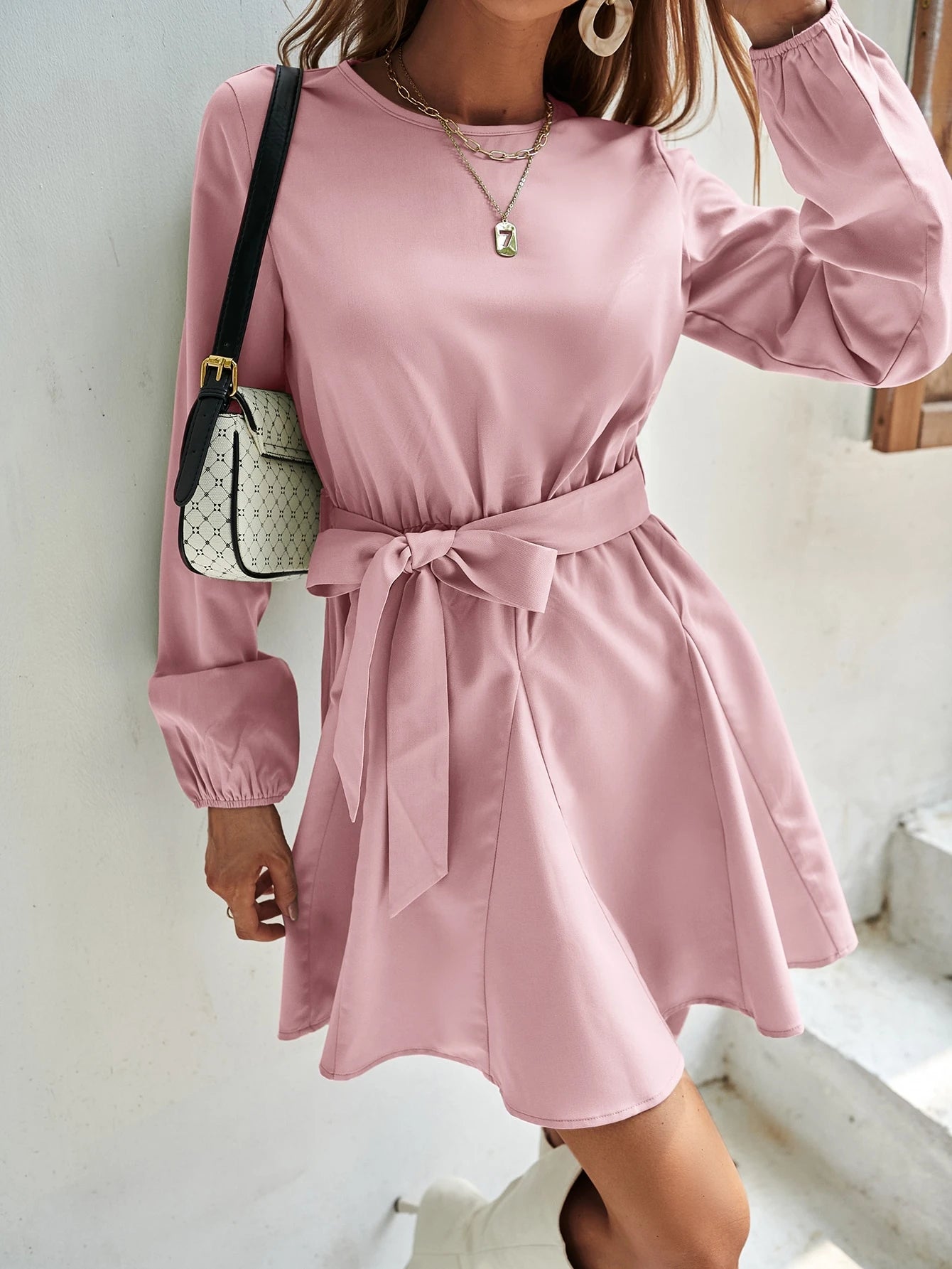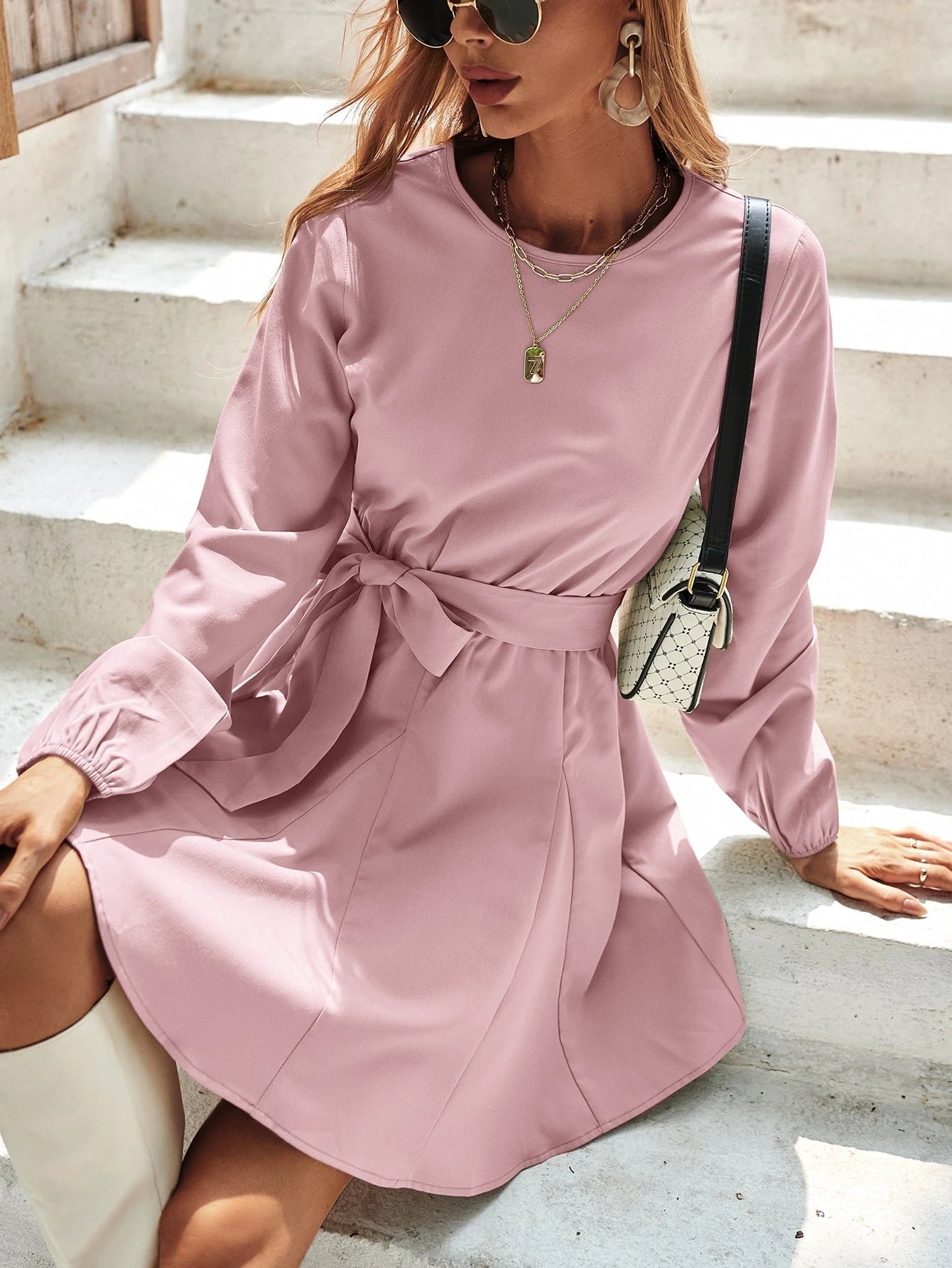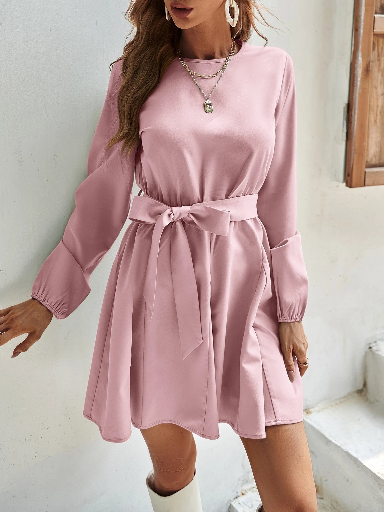 فستان سادة على شكل حرف A بدون حزام