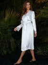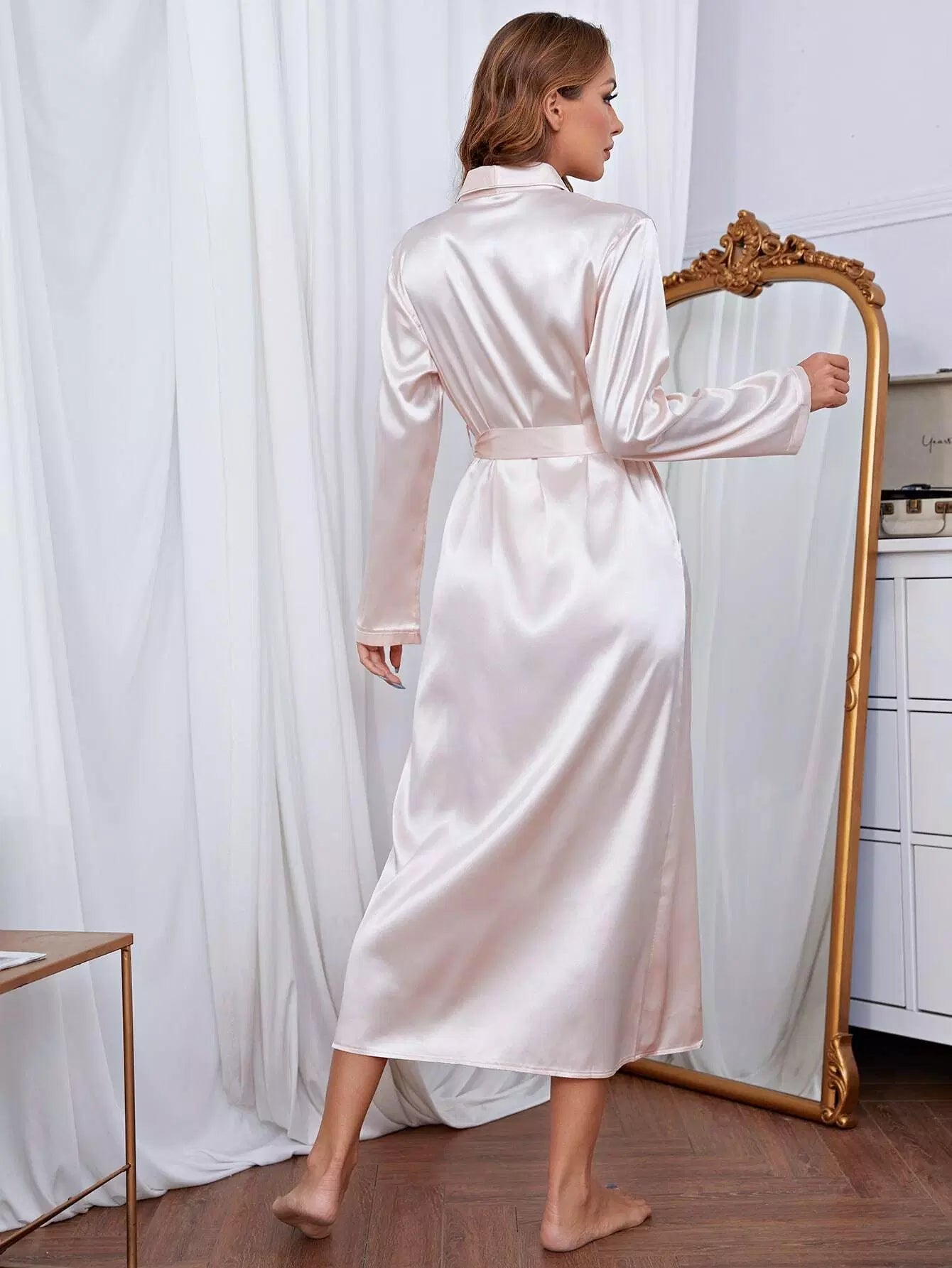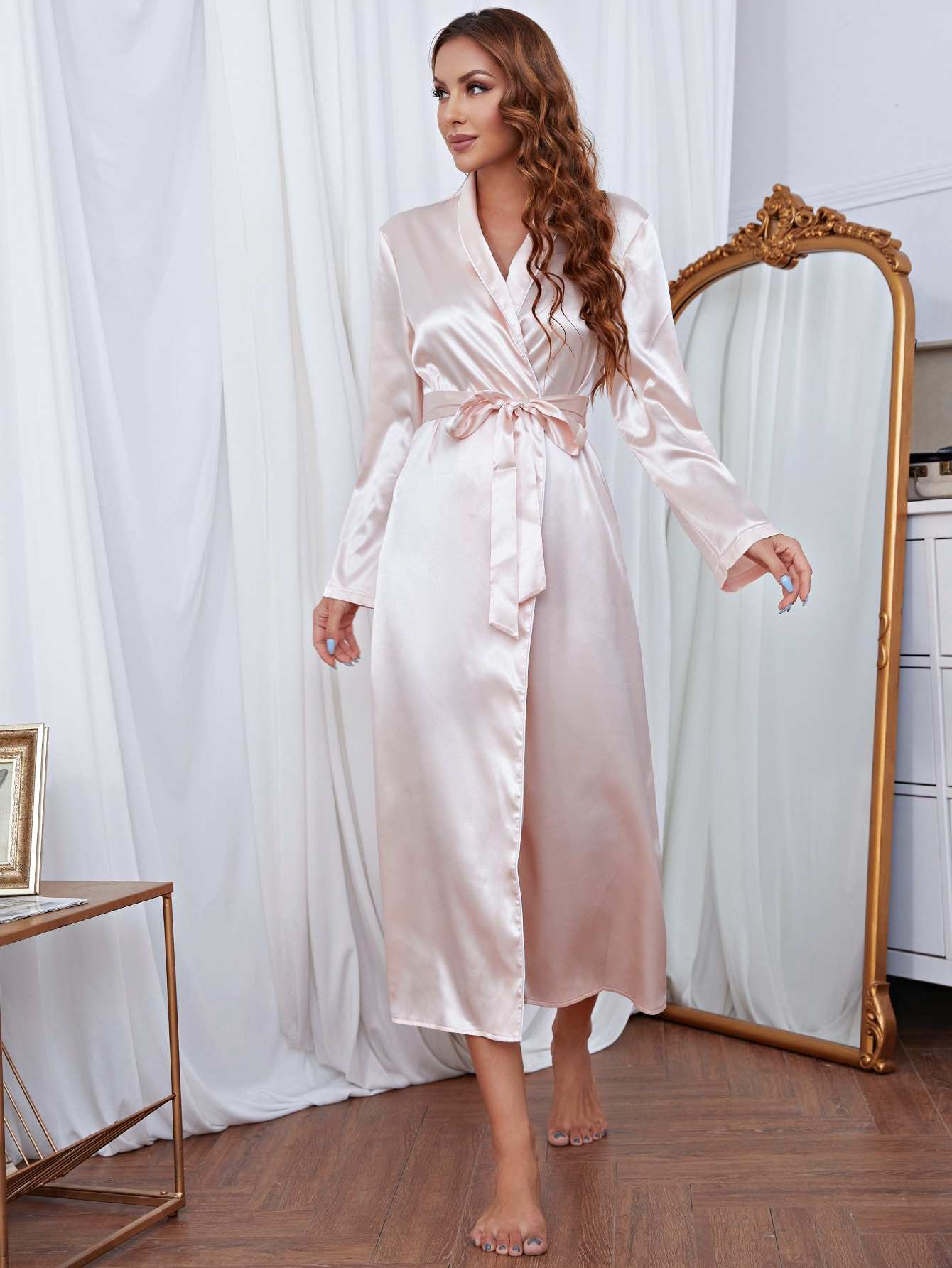 للنساء - رداء ليلي من الساتان بحزام سادة