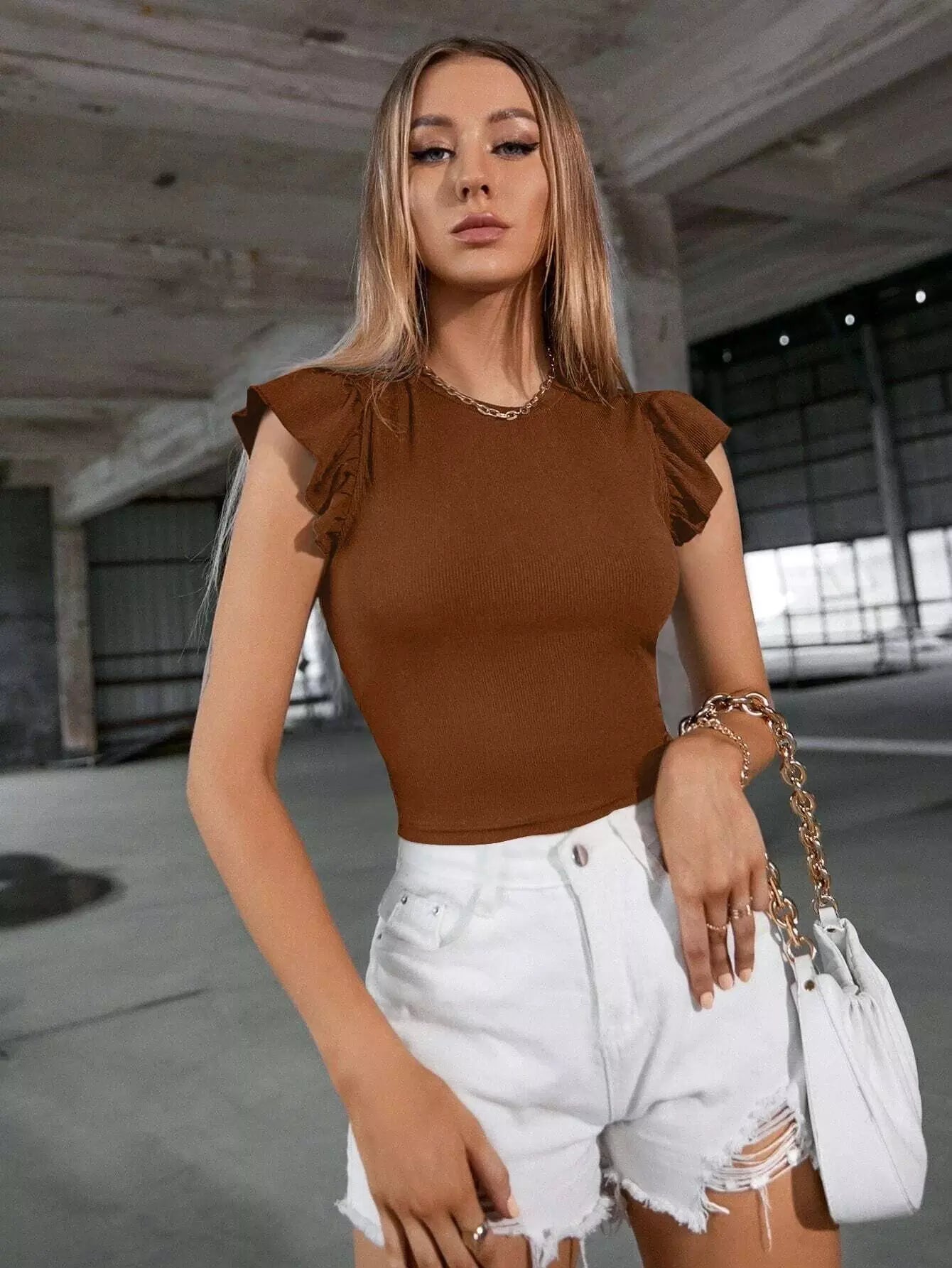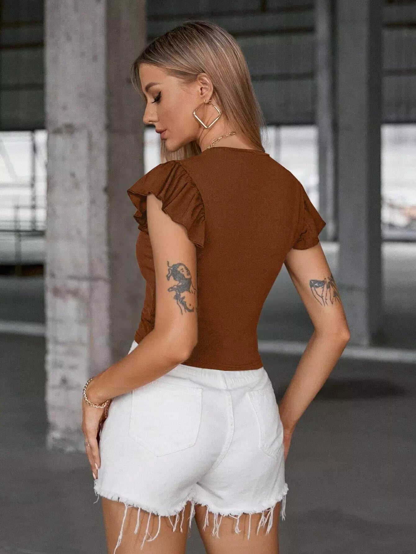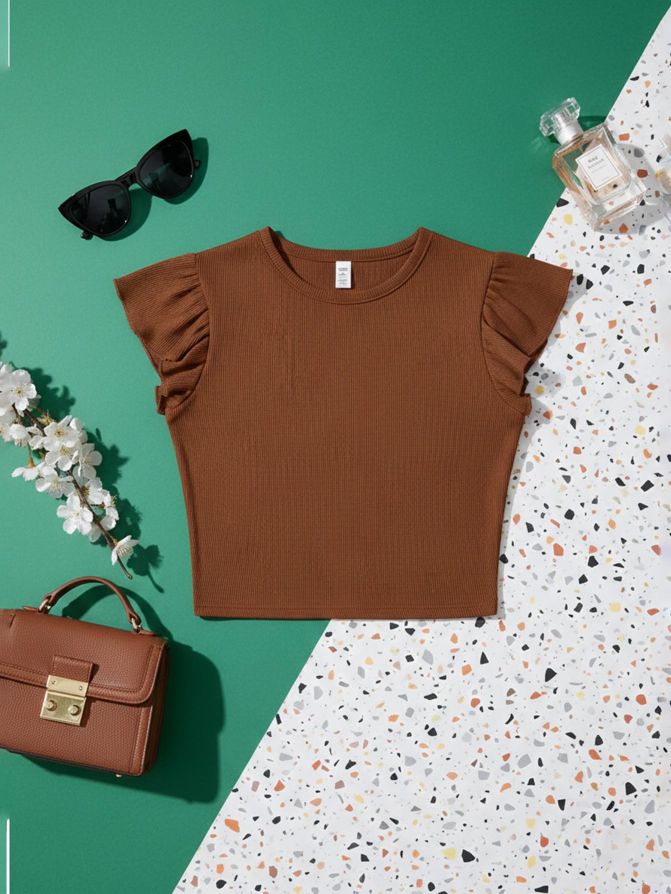 تي شيرت قصير بأكمام فراشة سادة