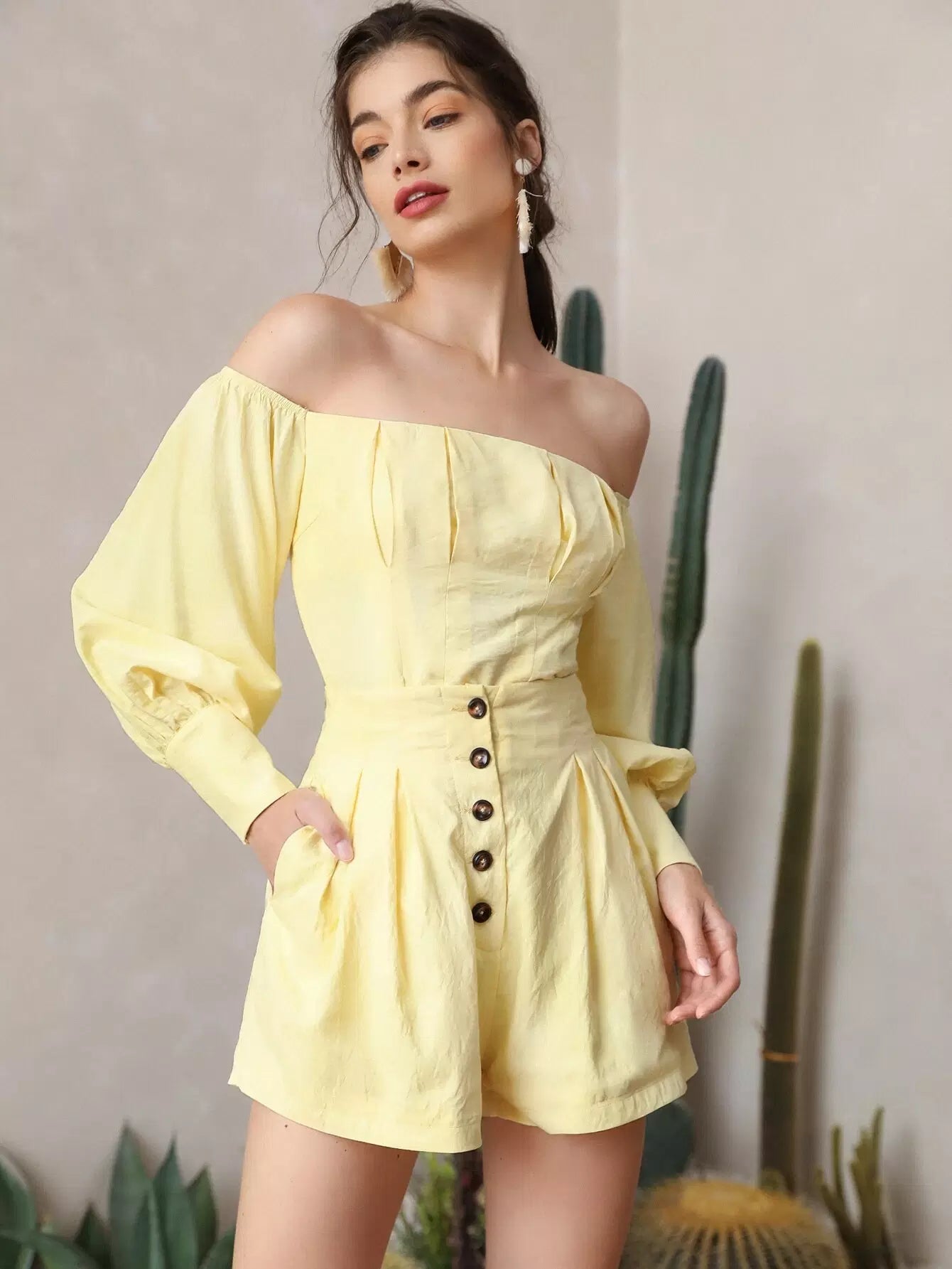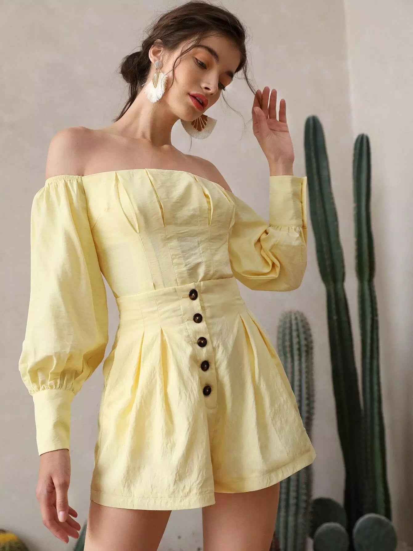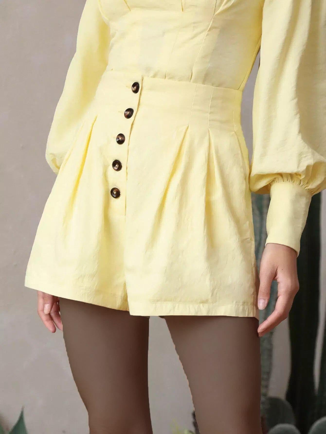 شورت سادة بأزرار سادة بأزرار واسعة الساق