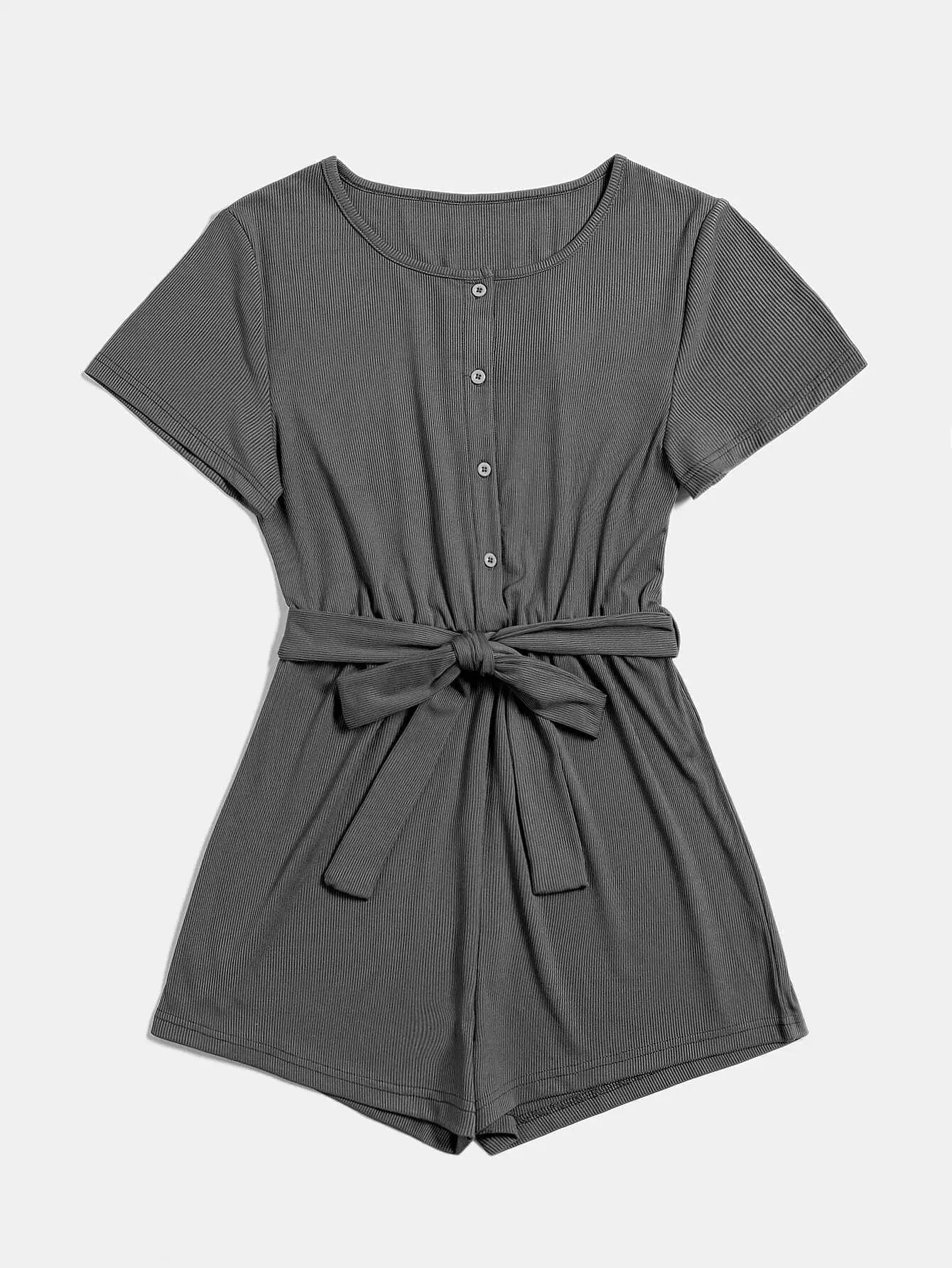 للنساء - رومبر مضلع بأزرار أمامية وحزام