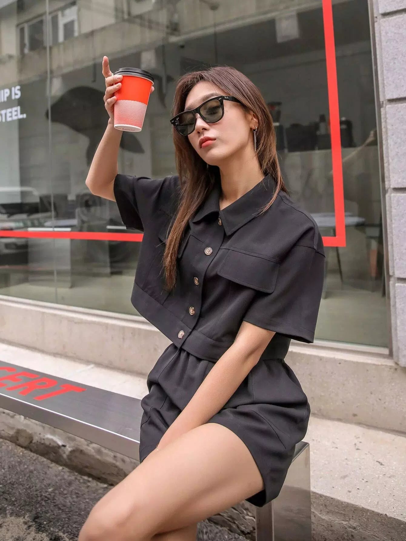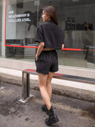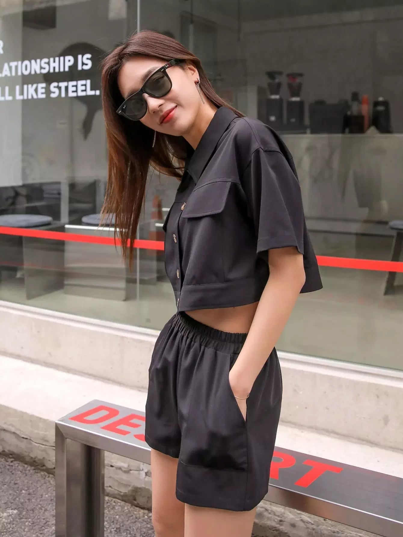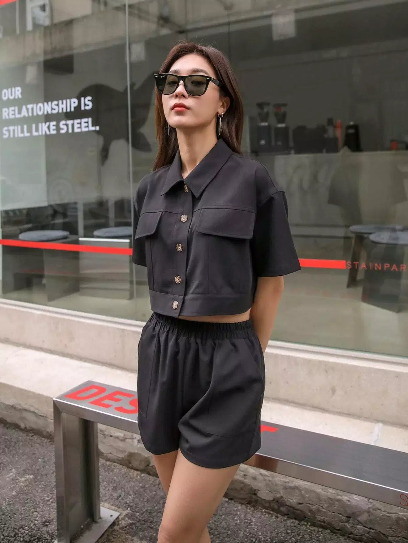معطف قصير قصير بأزرار أمامية سادة مع شورت قصير