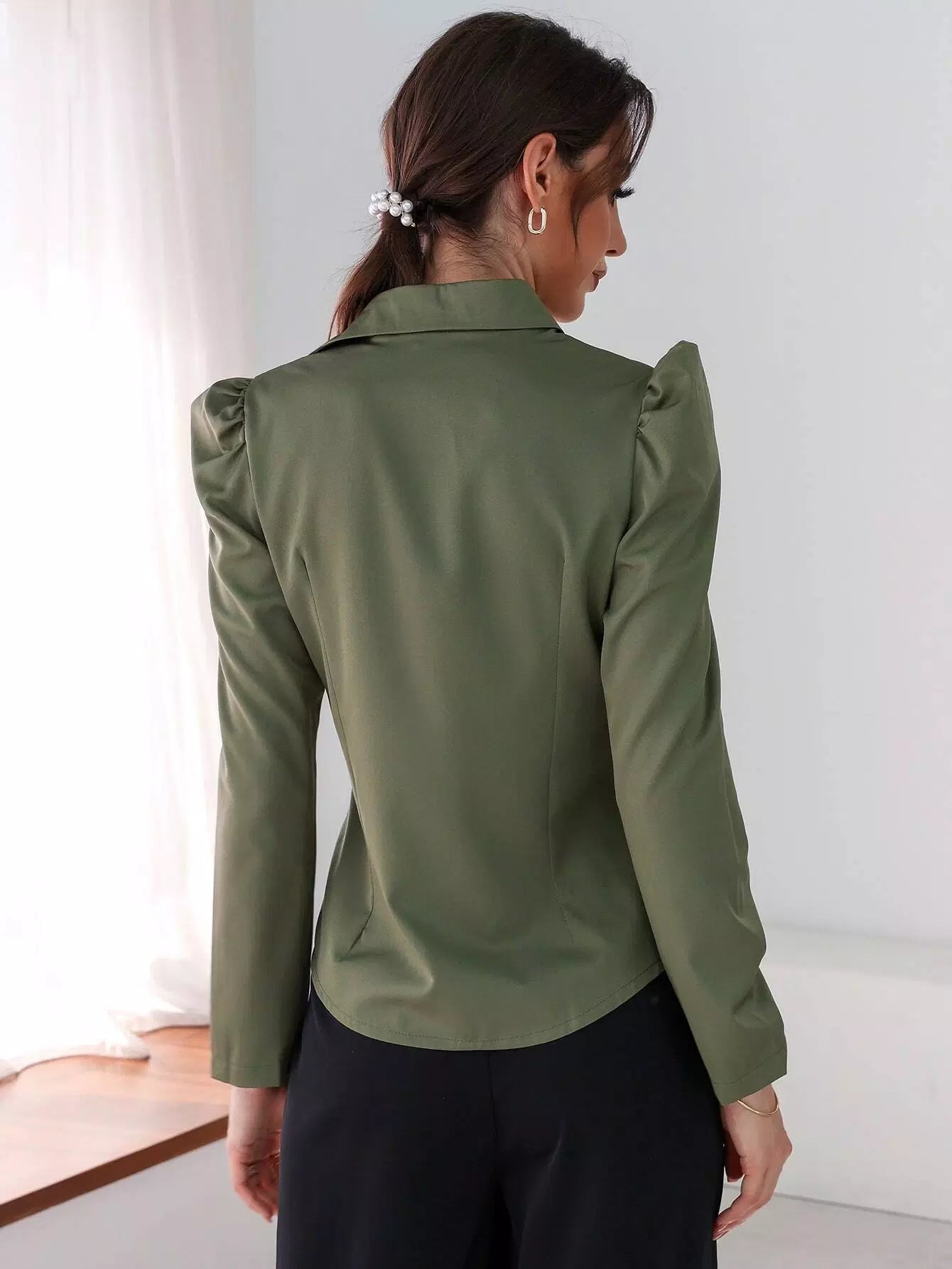 قميص سادة بأكمام طويلة وأزرار أمامية