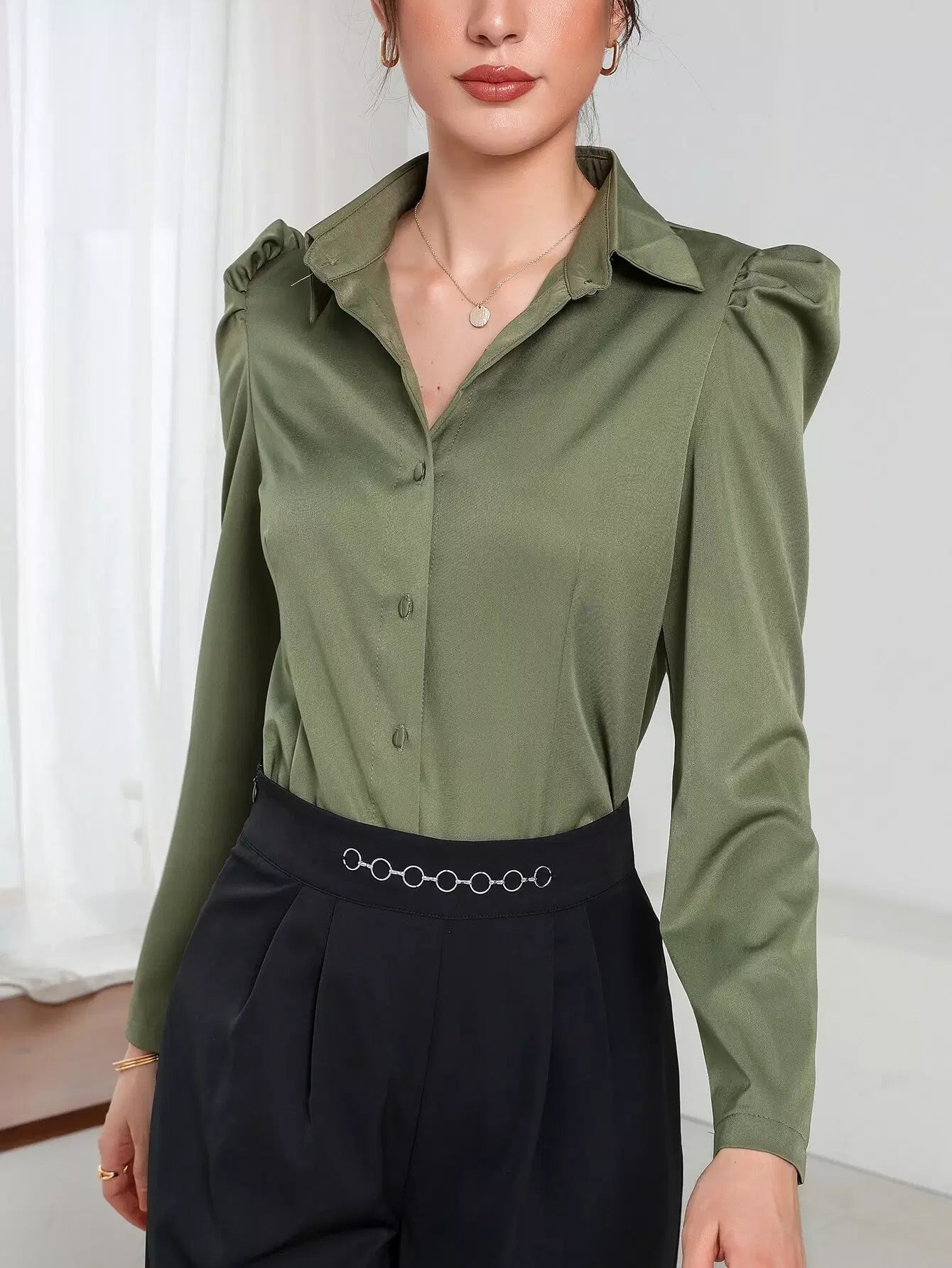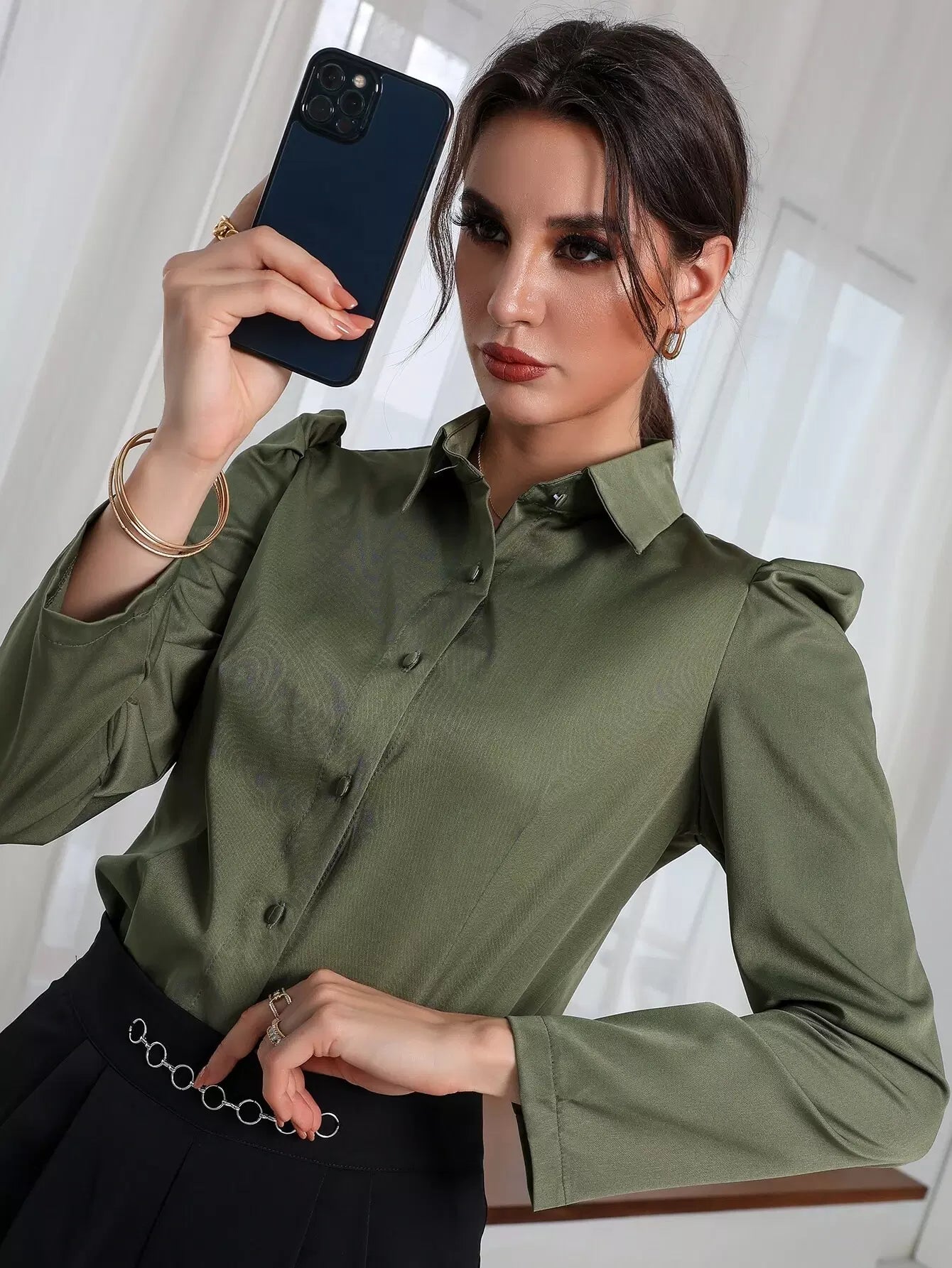 للنساء - قميص بأزرار أمامية وأكمام طويلة