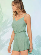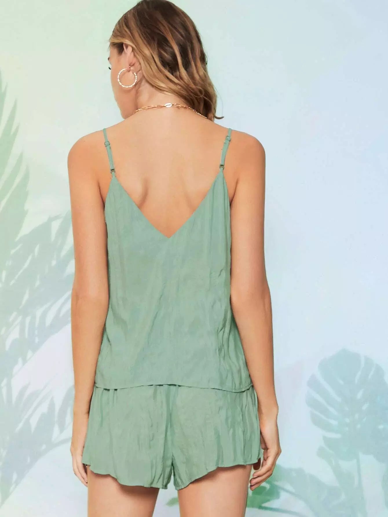 طقم بلوزة سادة كامي، وشورت بخصر مطاطي
