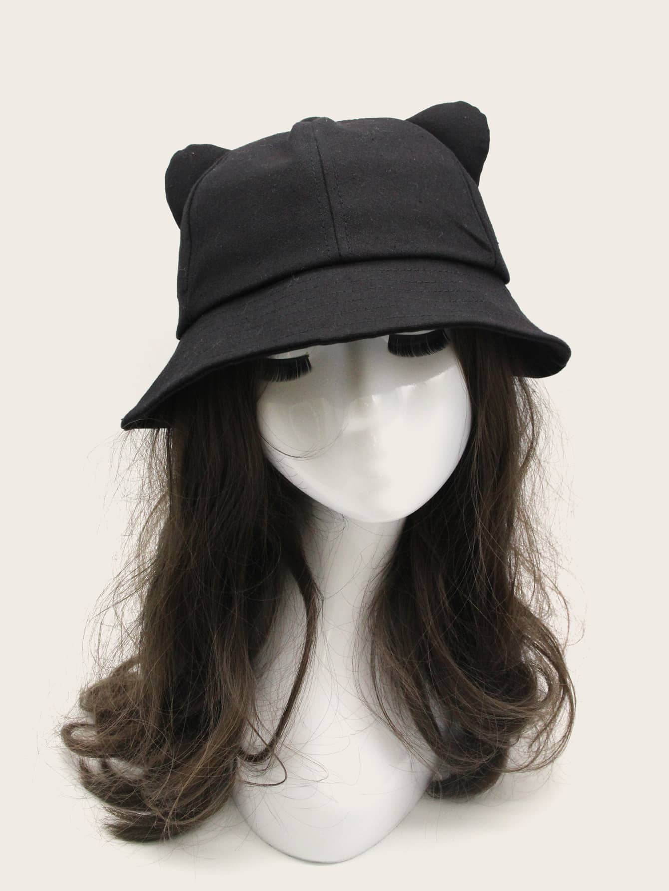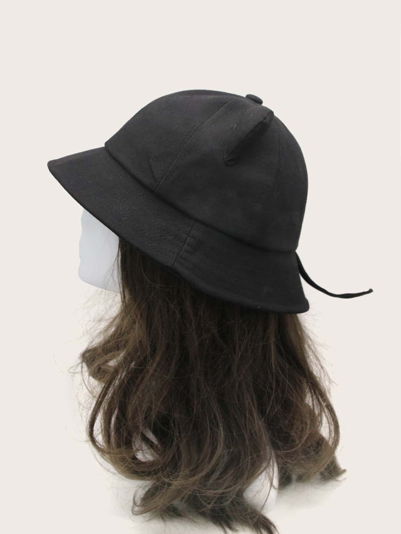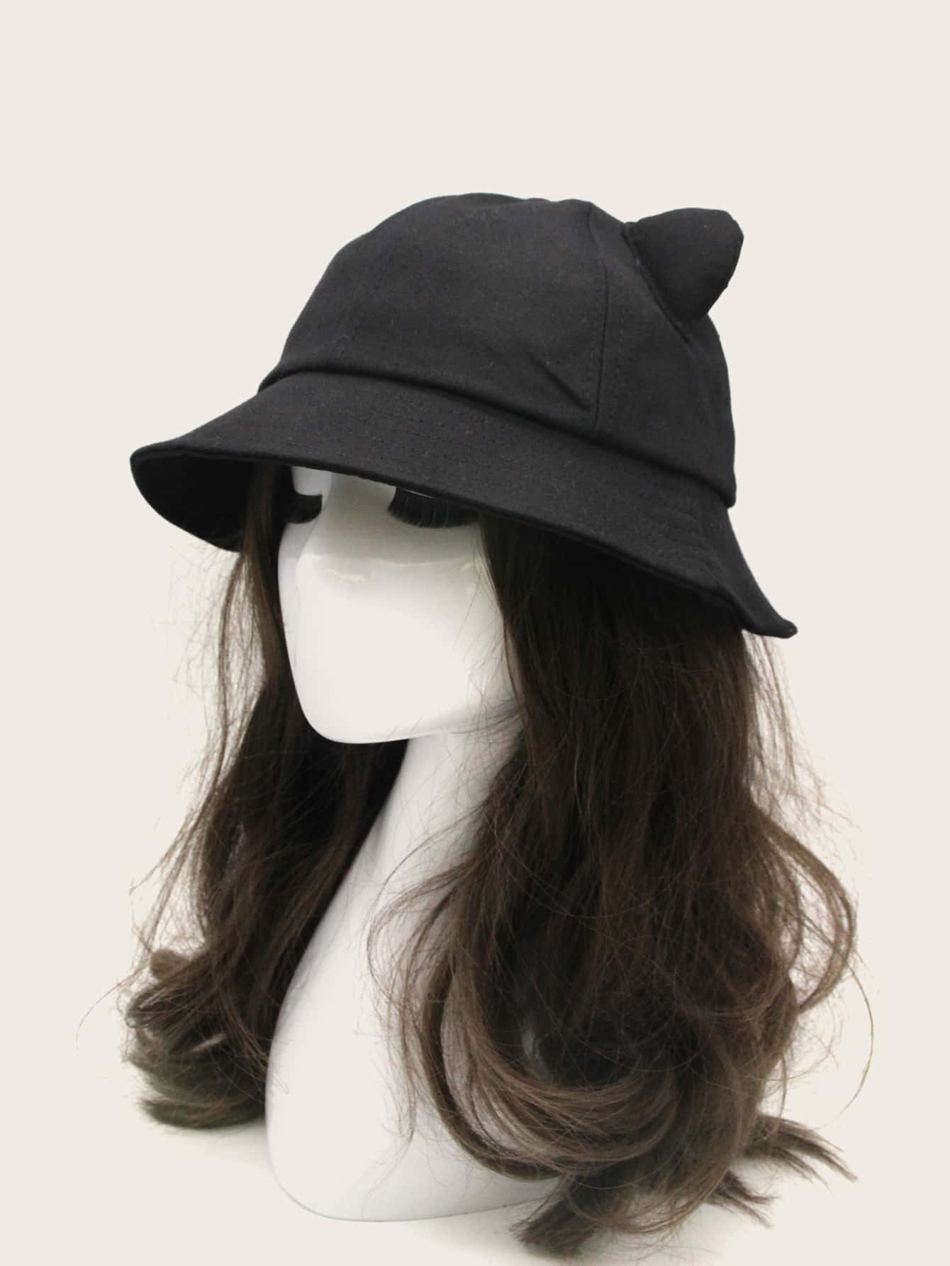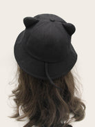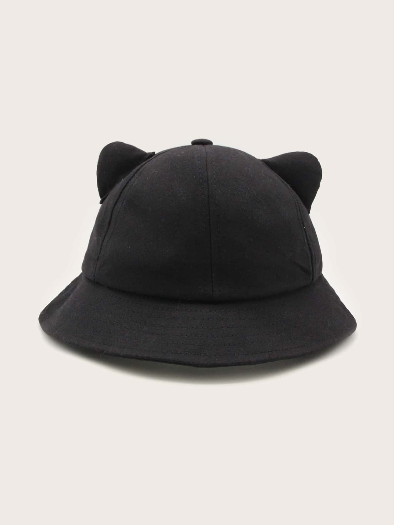 قبعة دلو مزينة بأذني قطة صلبة، مناسبة لفصل الشتاء والخريف.