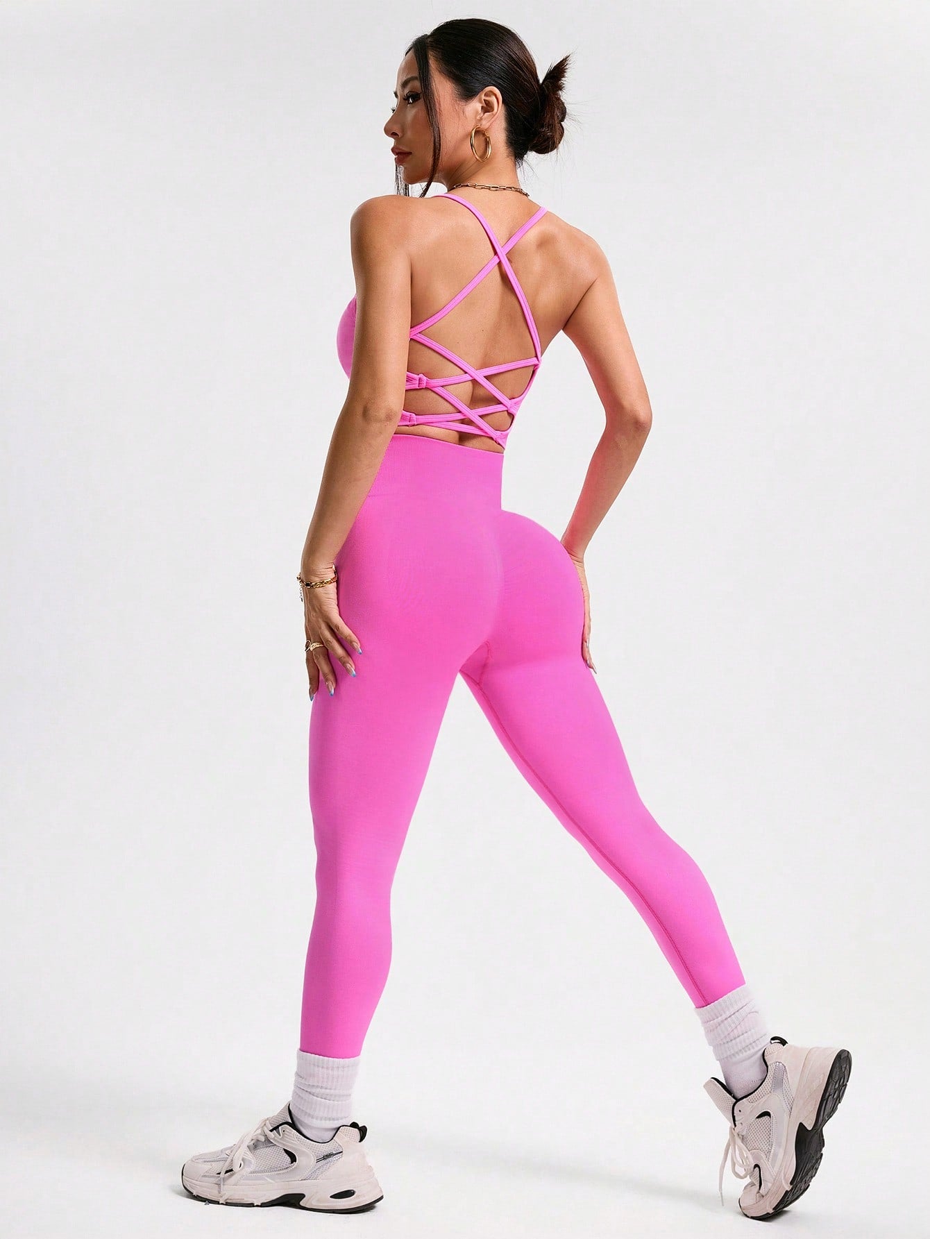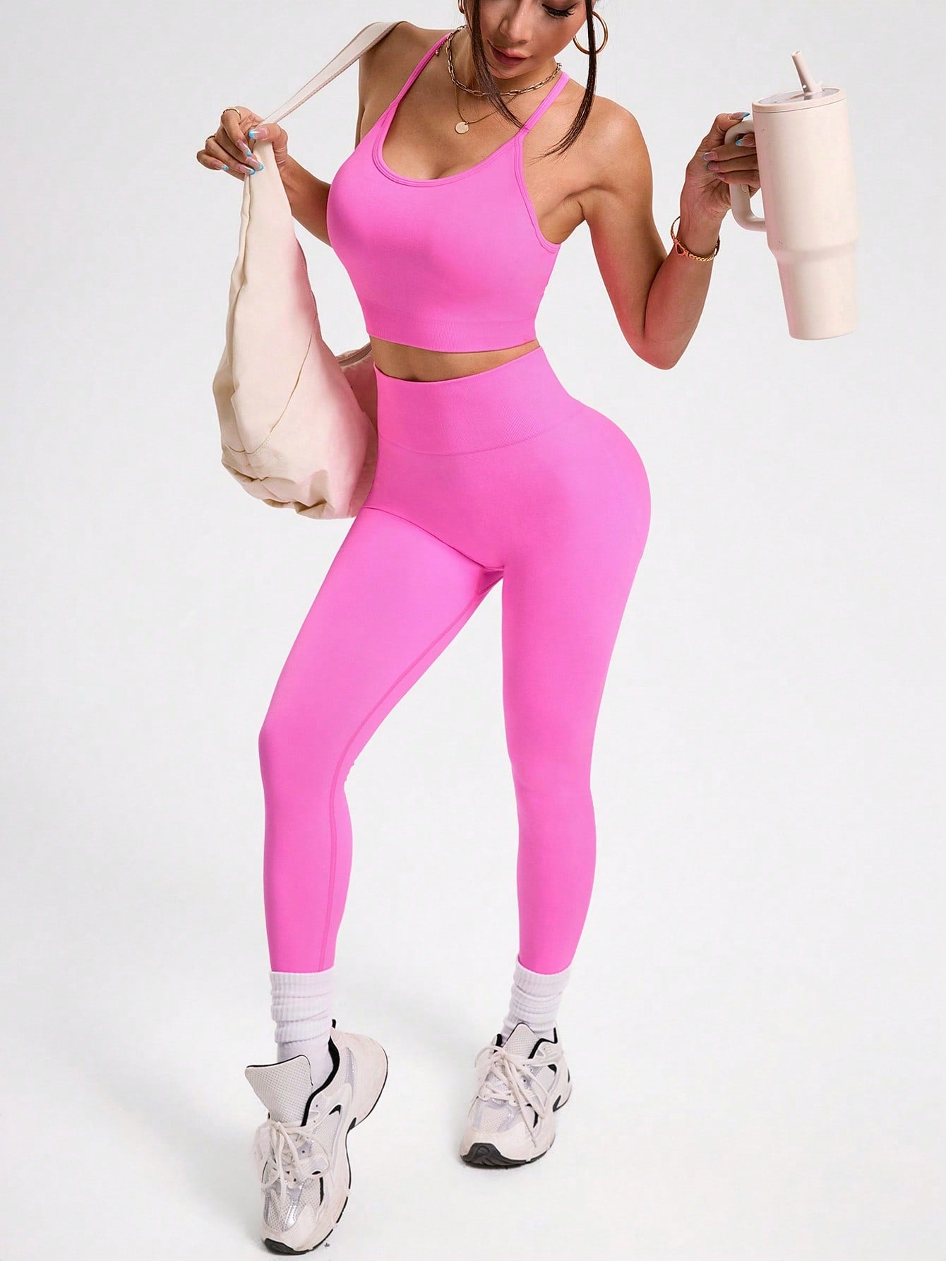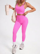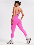 women Solid Color Backless Halter Vest And Seamless Elastic Leggings Women Sports Suit