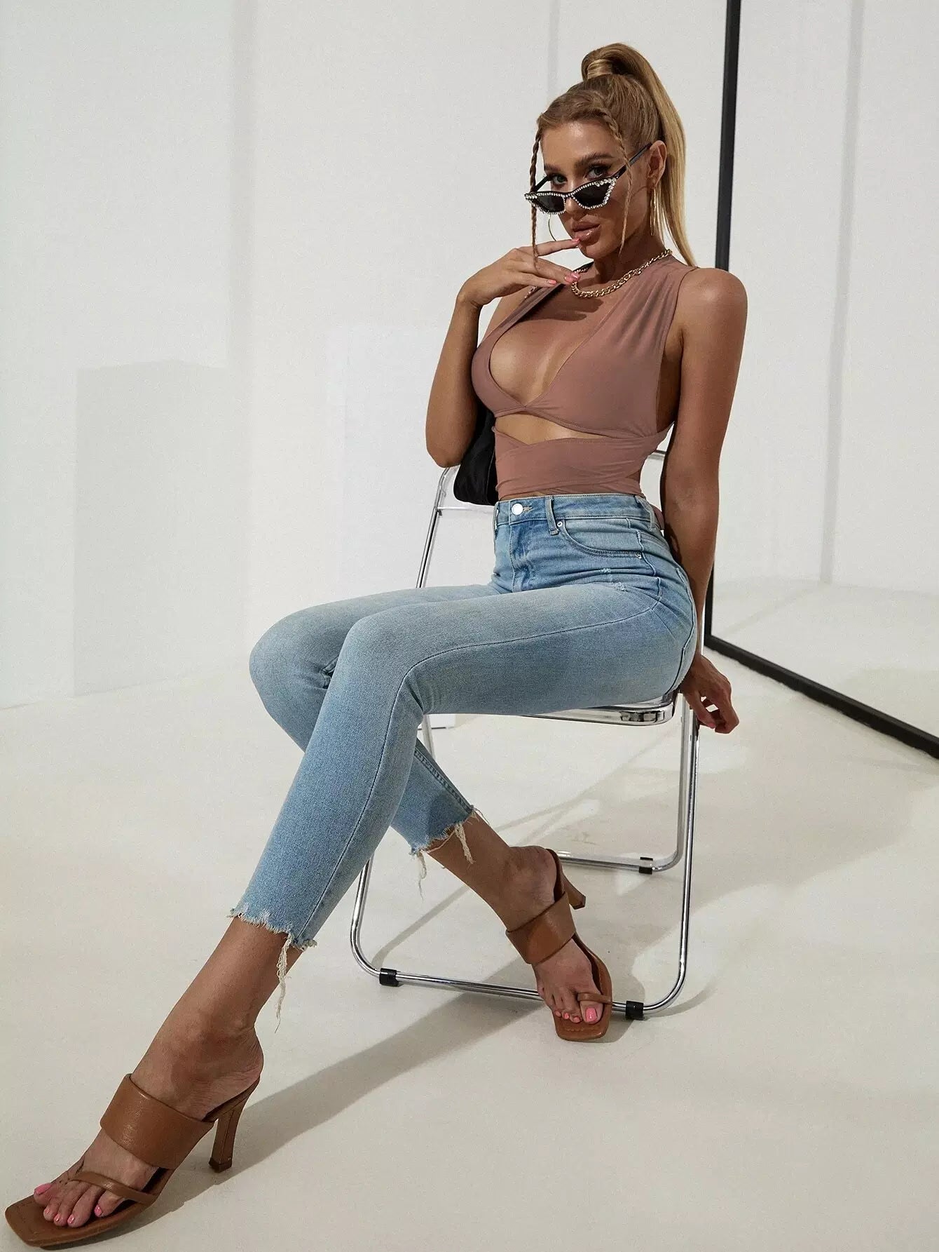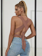 بلوزة سادة برباط على شكل صليب متقاطع على الظهر
