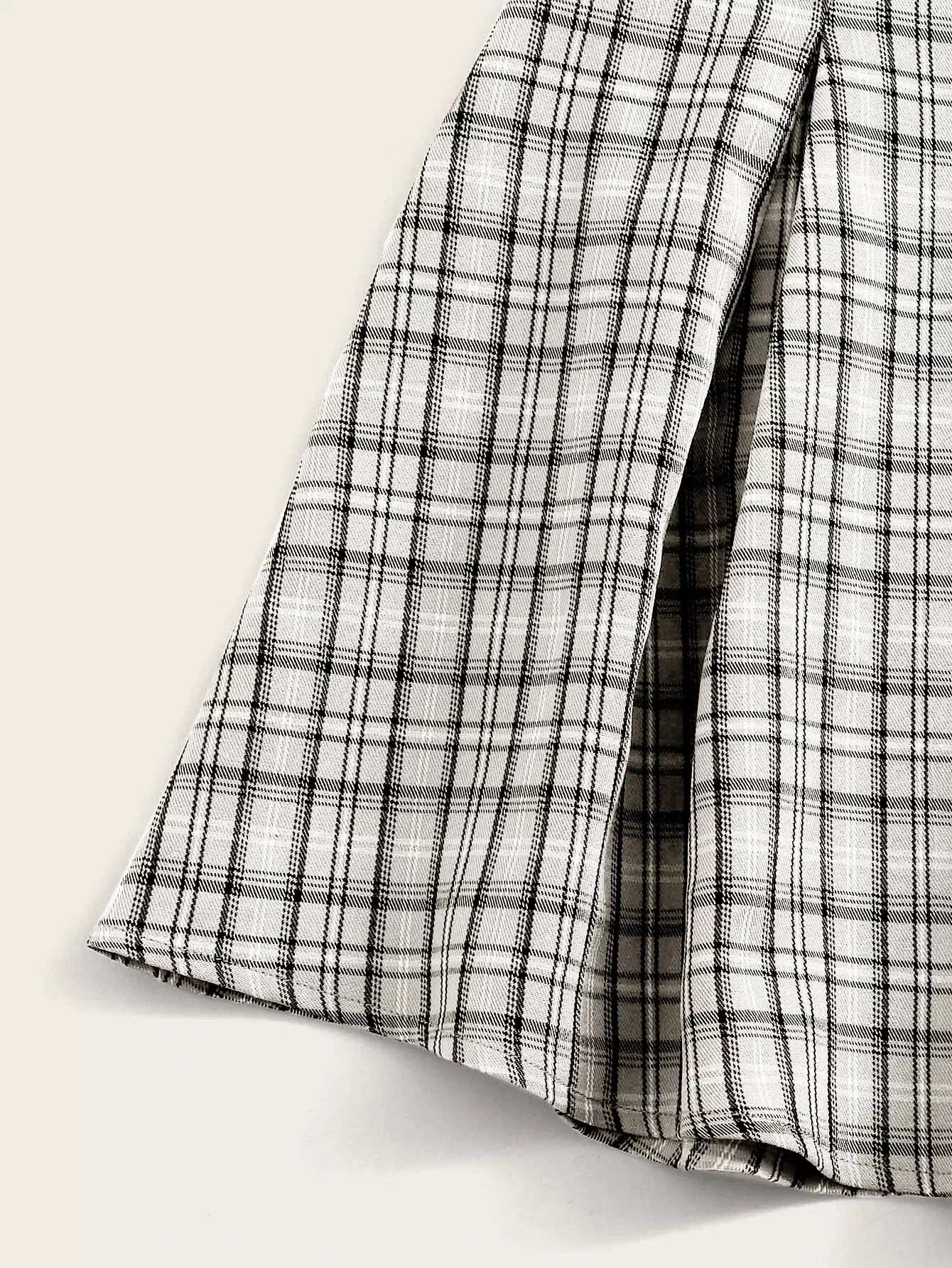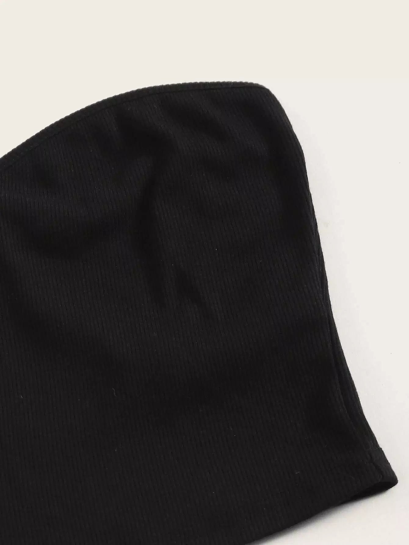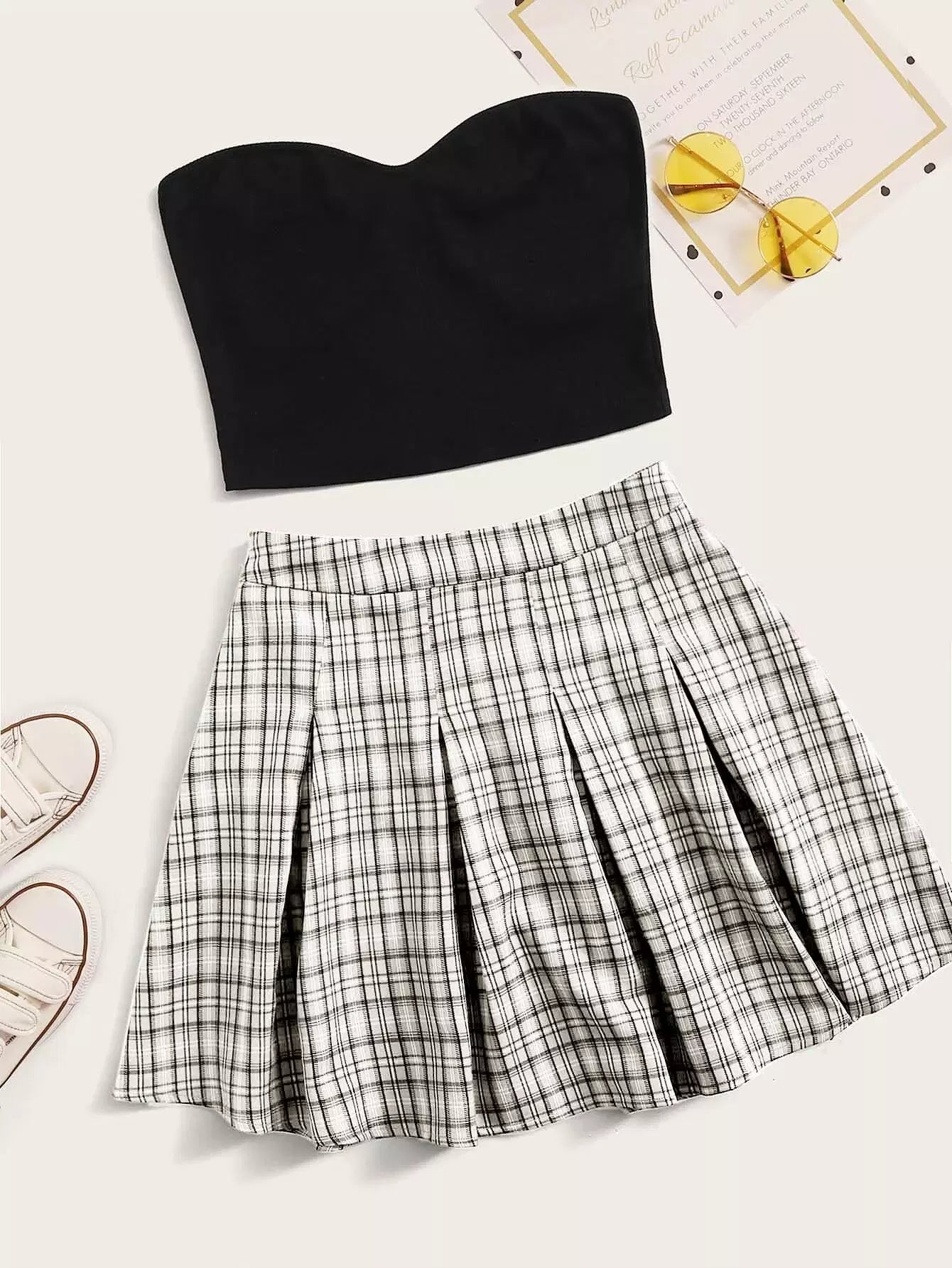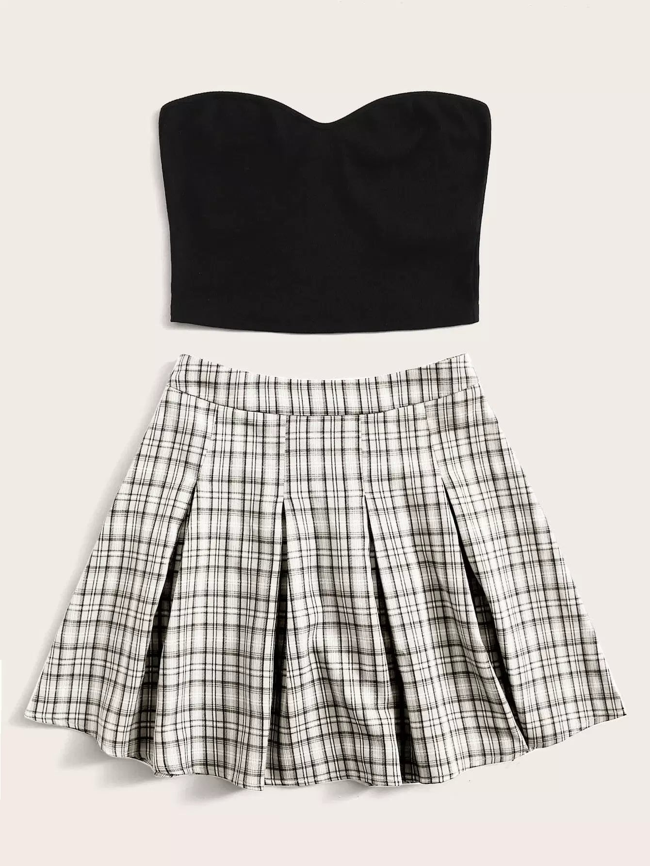 طقم بلوزة أنبوبي قصير سادة وتنورة منقوشة بطيات