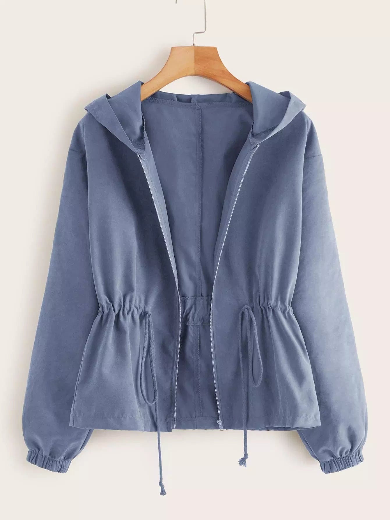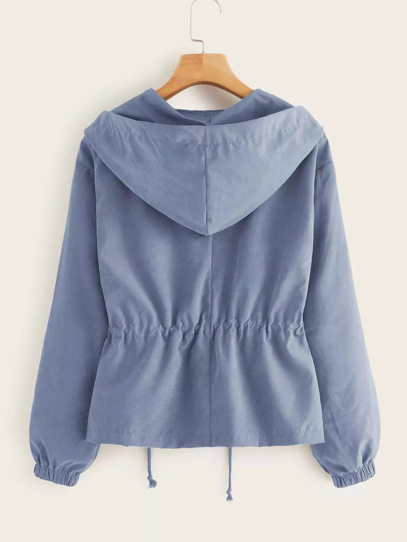 جاكيت سادة برباط على الخصر بغطاء للرأس سادة