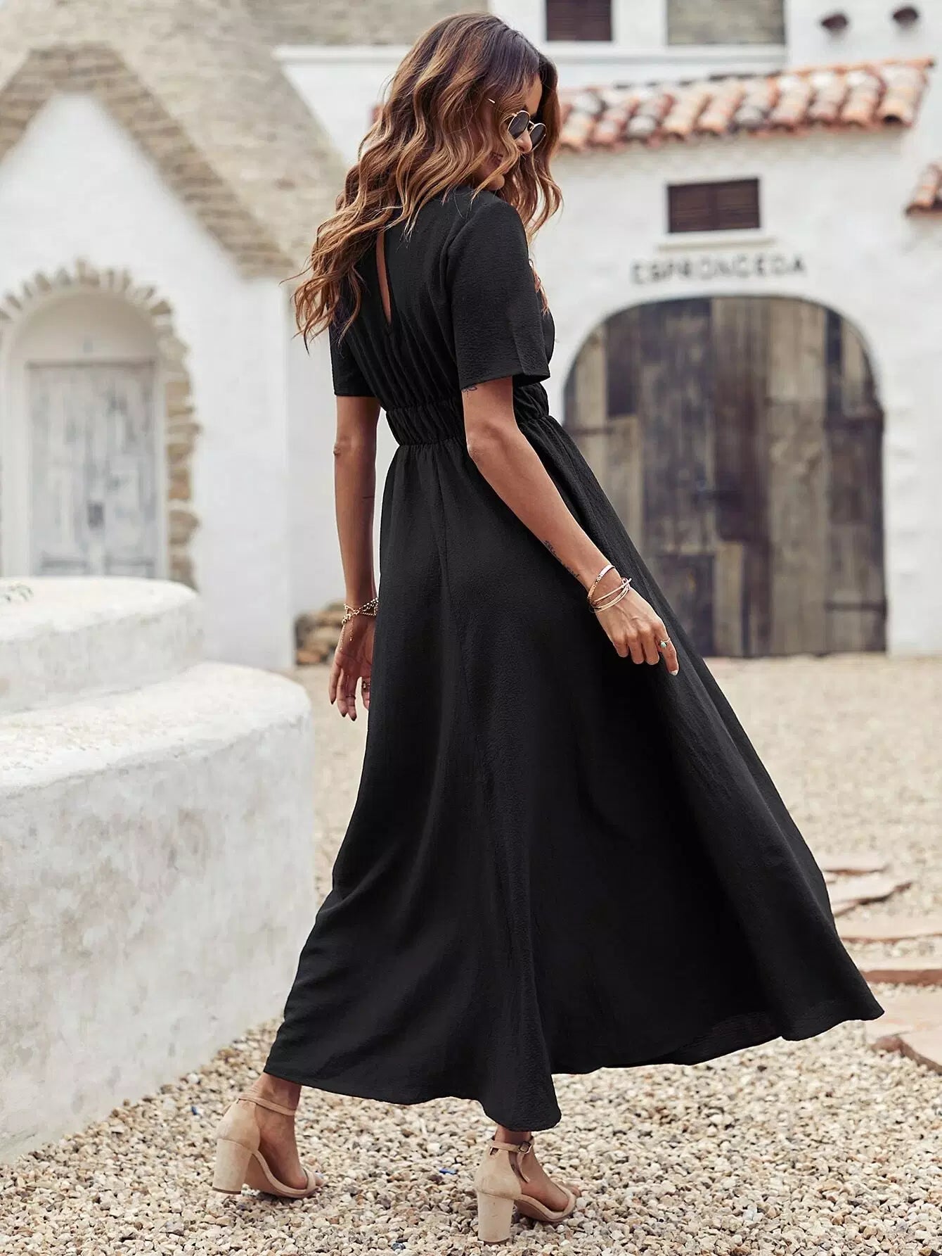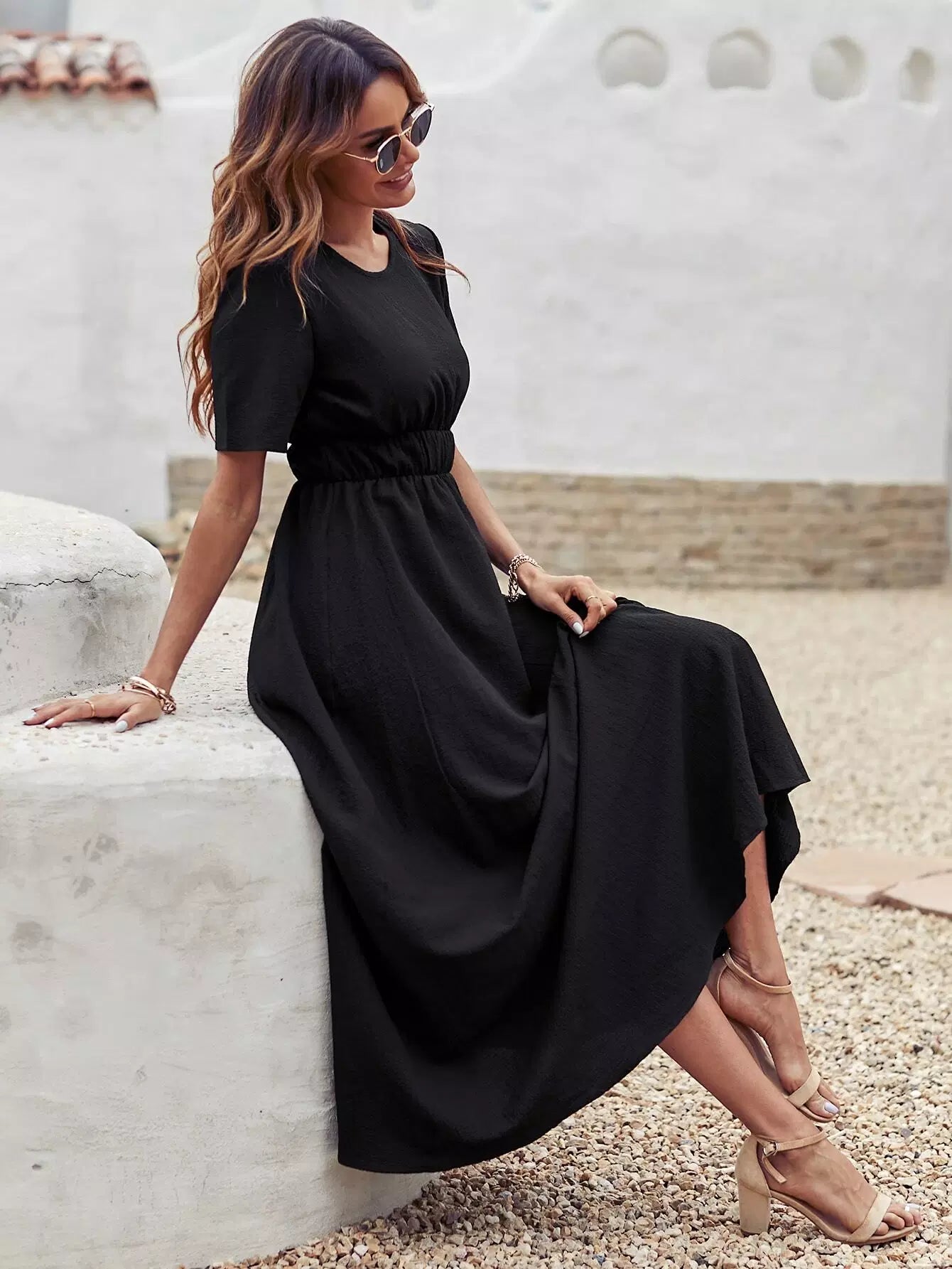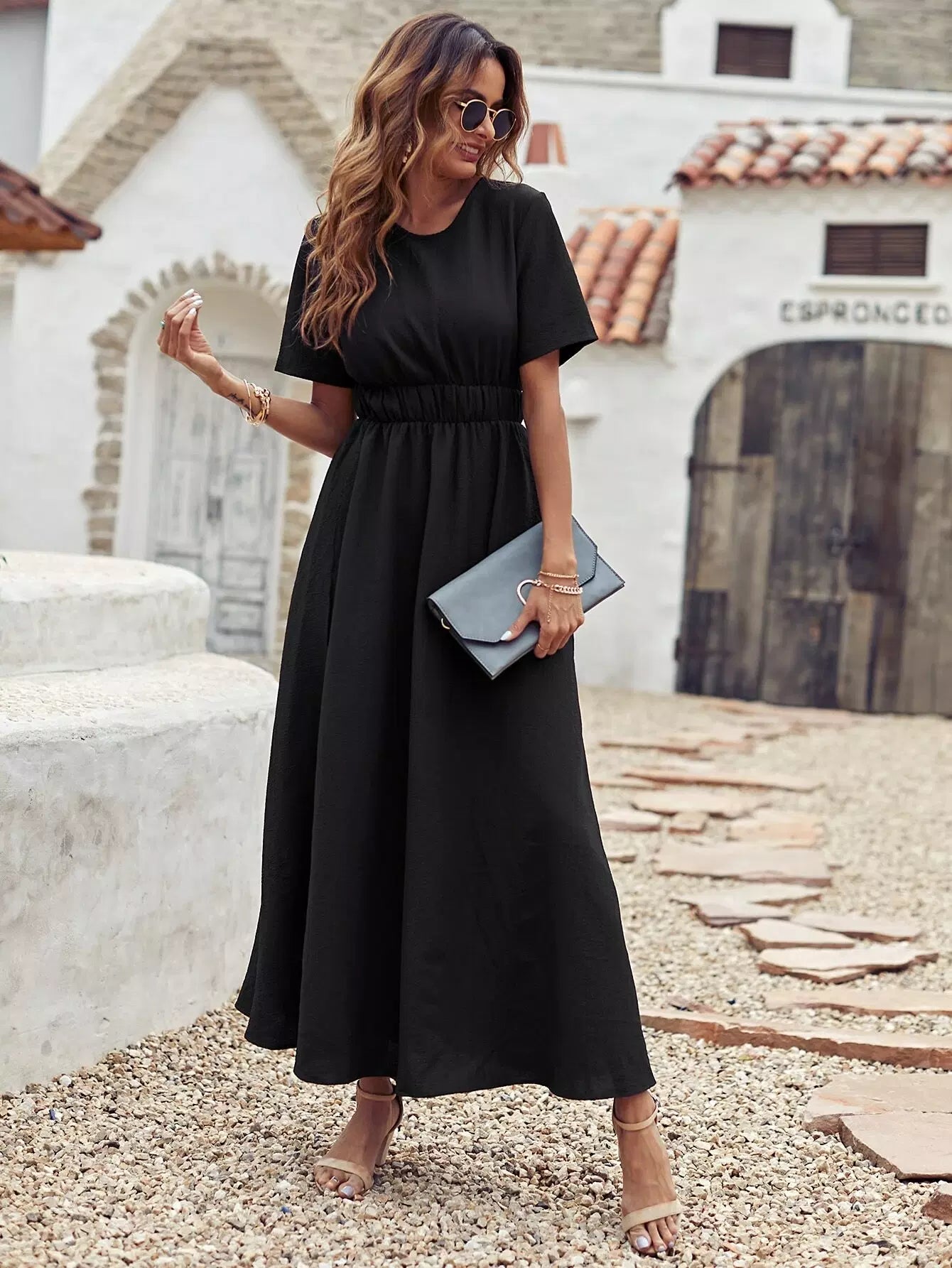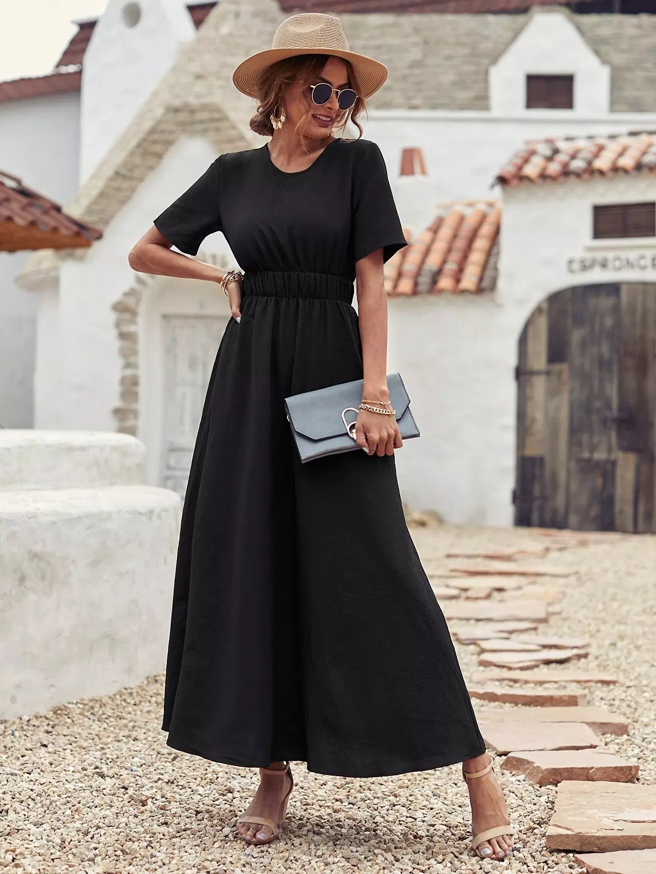 فستان سادة ذو خصر مطاطي سادة على شكل حرف A
