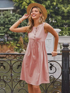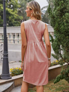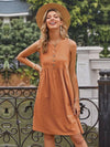فستان سادة بدون أكمام بنصف أزرار بنصف أزرار