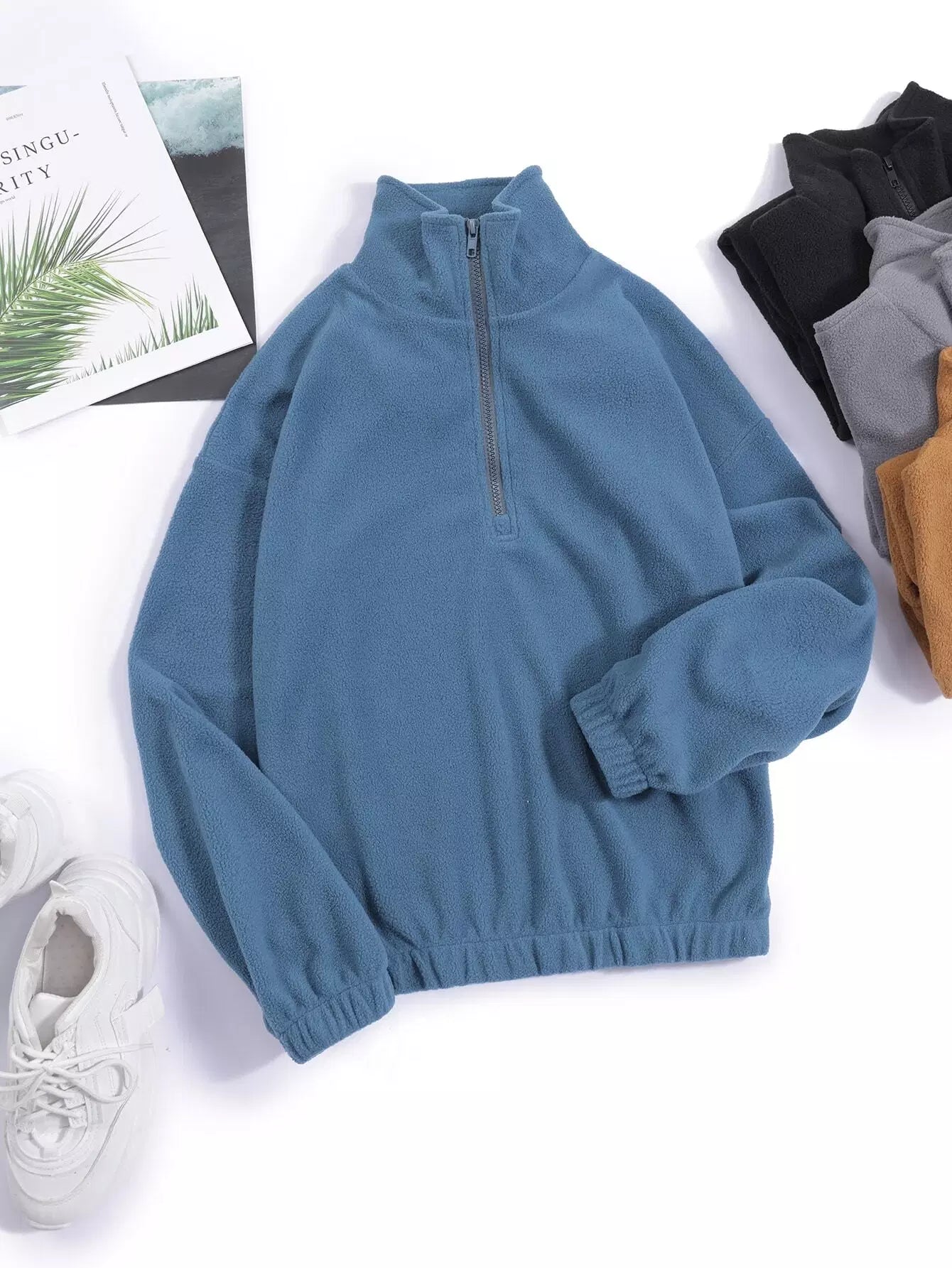 سويت شيرت صوفي سادة بنصف سحّاب