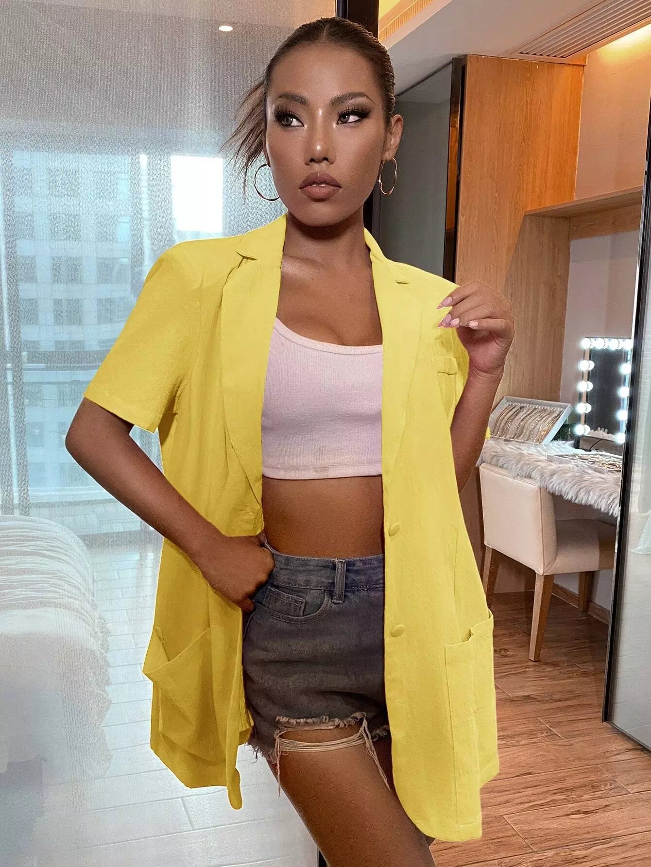 سترة بياقة بياقة بياقة بياقة بأزرار أمامية سادة