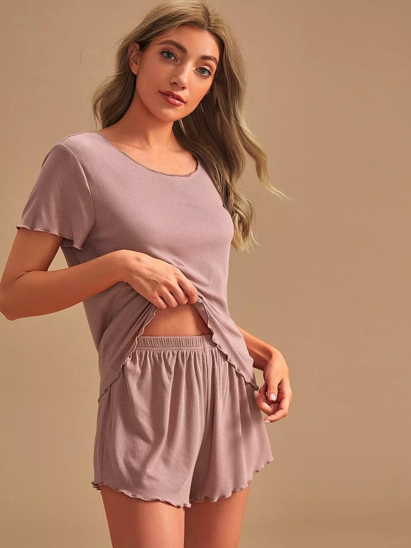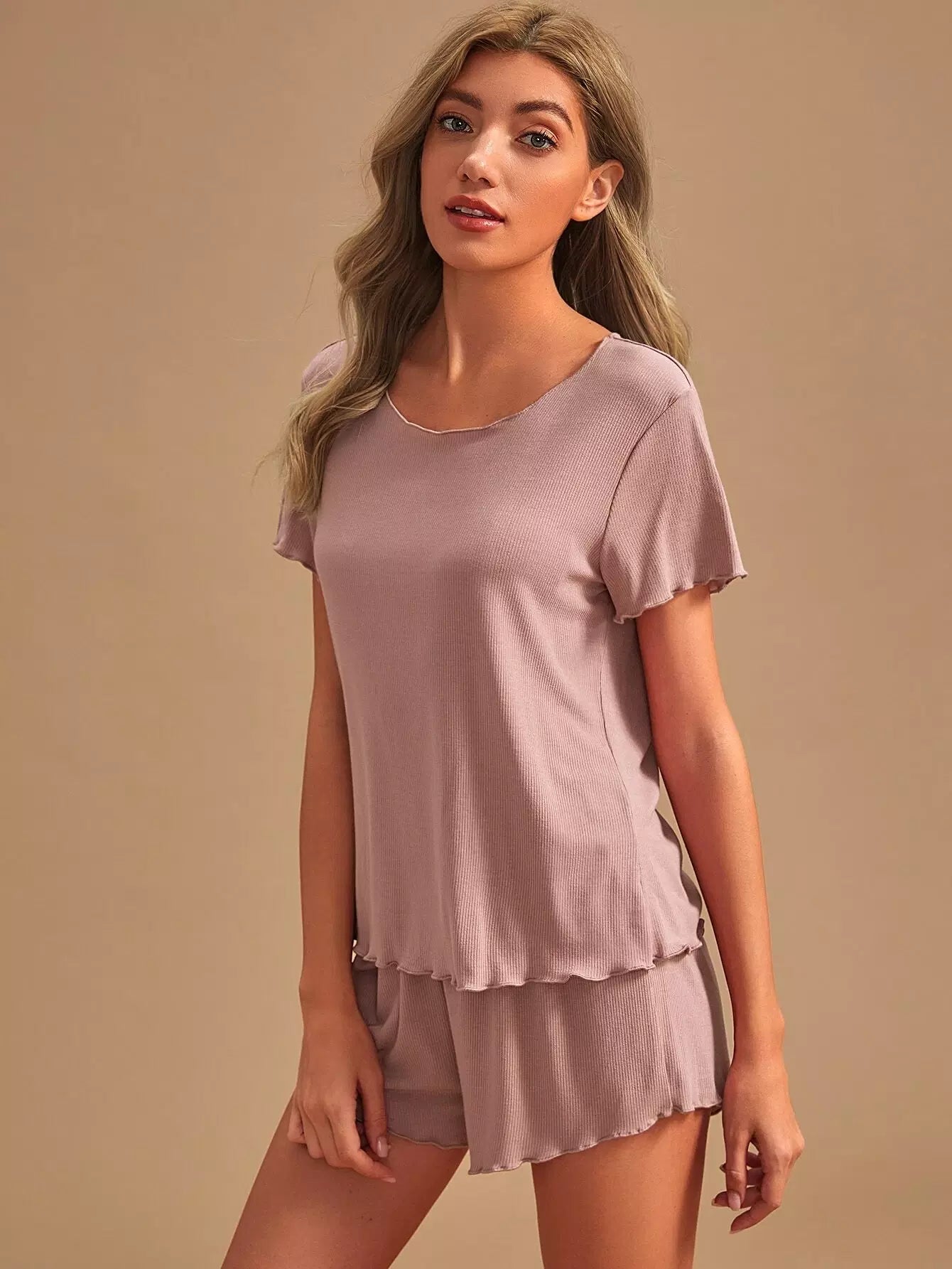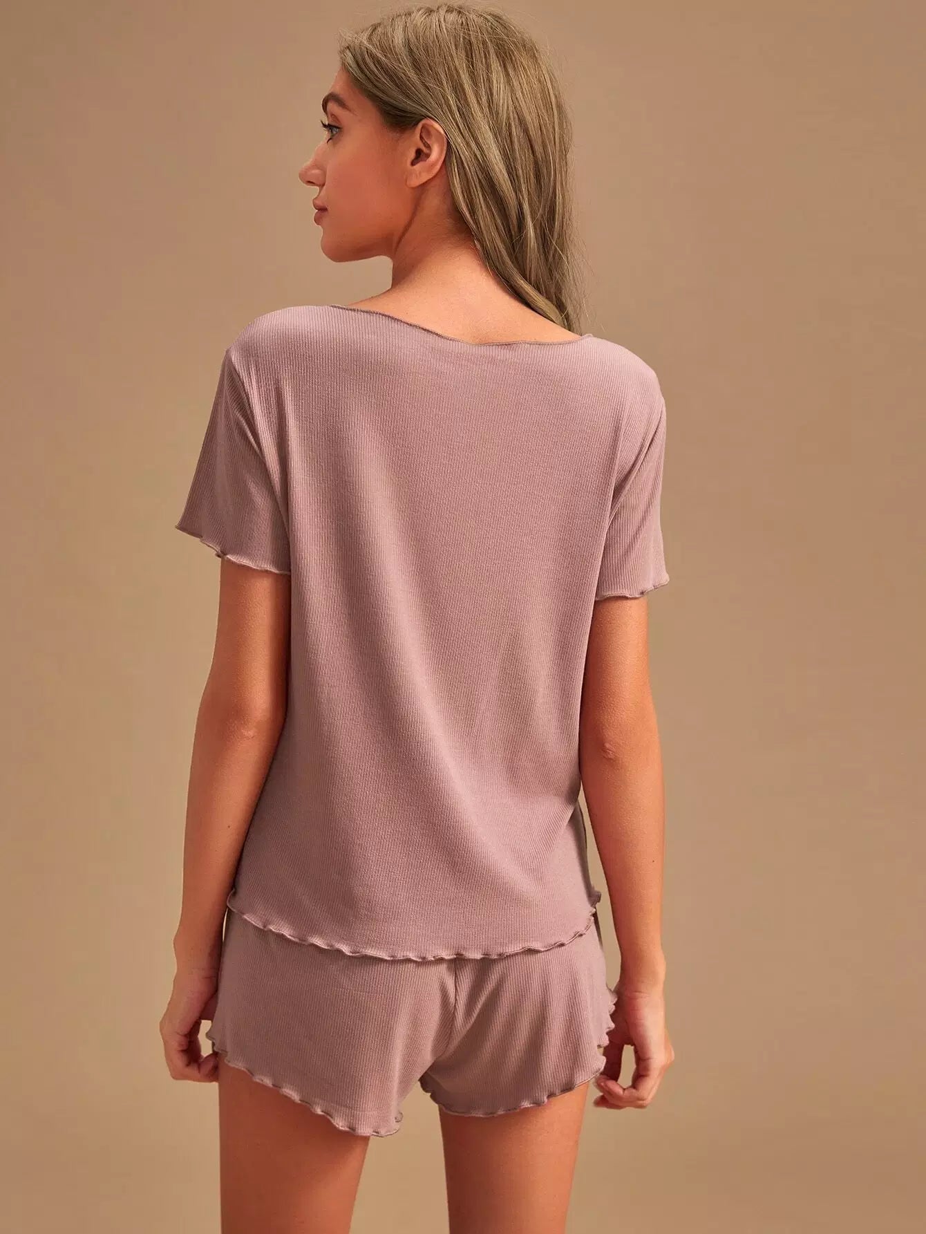 طقم بيجامة بقطعة خس سادة