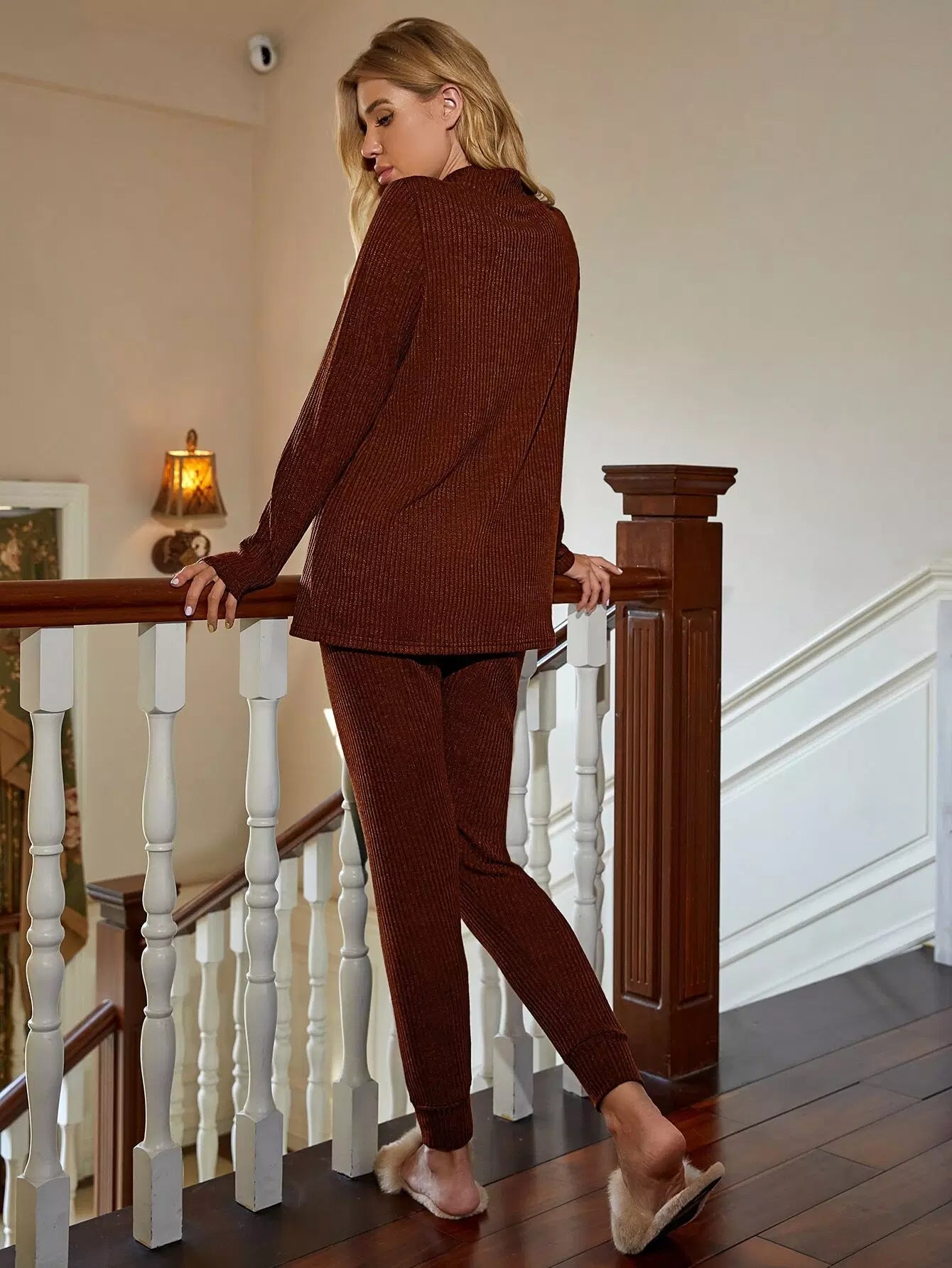 طقم استراحة برقبة سادة برقبة سادة مضلعة مضلعة