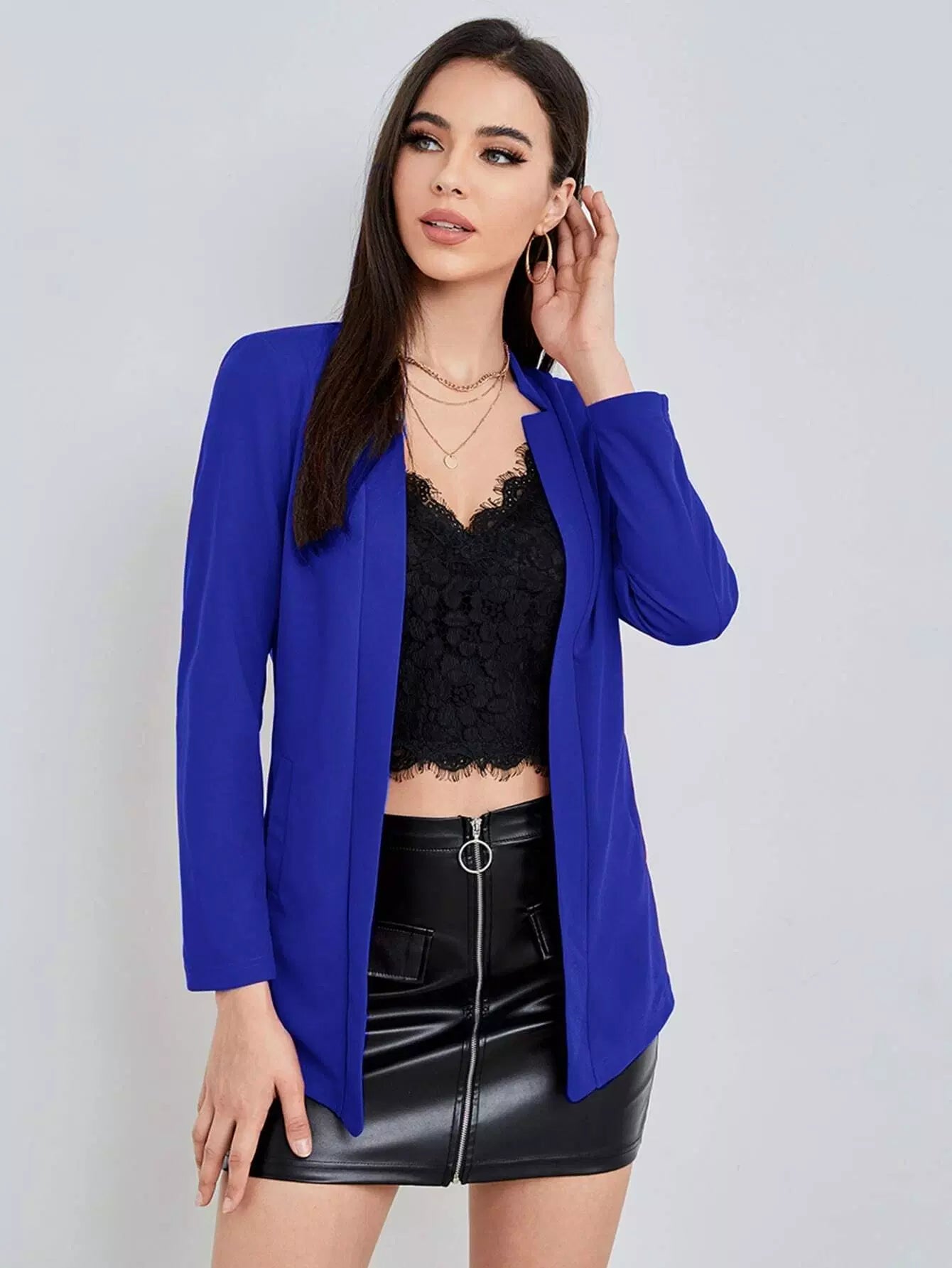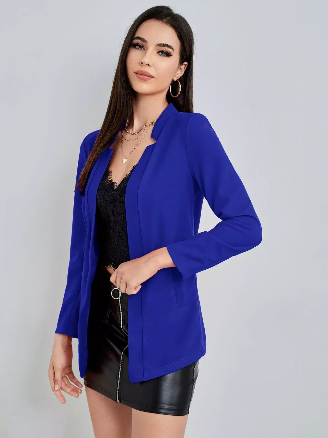 بليزر سادة مفتوح من الأمام مفتوح من الأمام