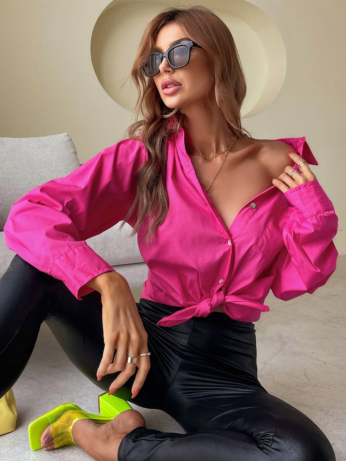 قميص طويل سادة بجيب أمامي