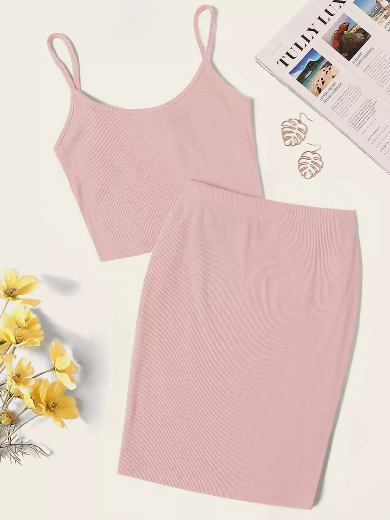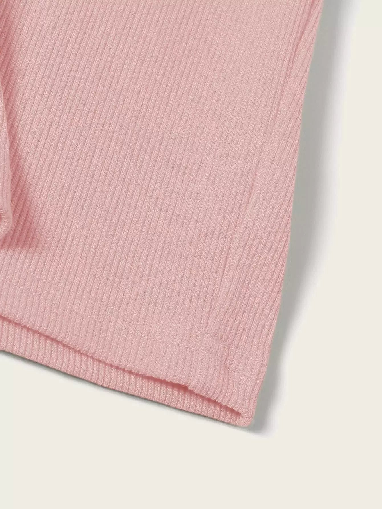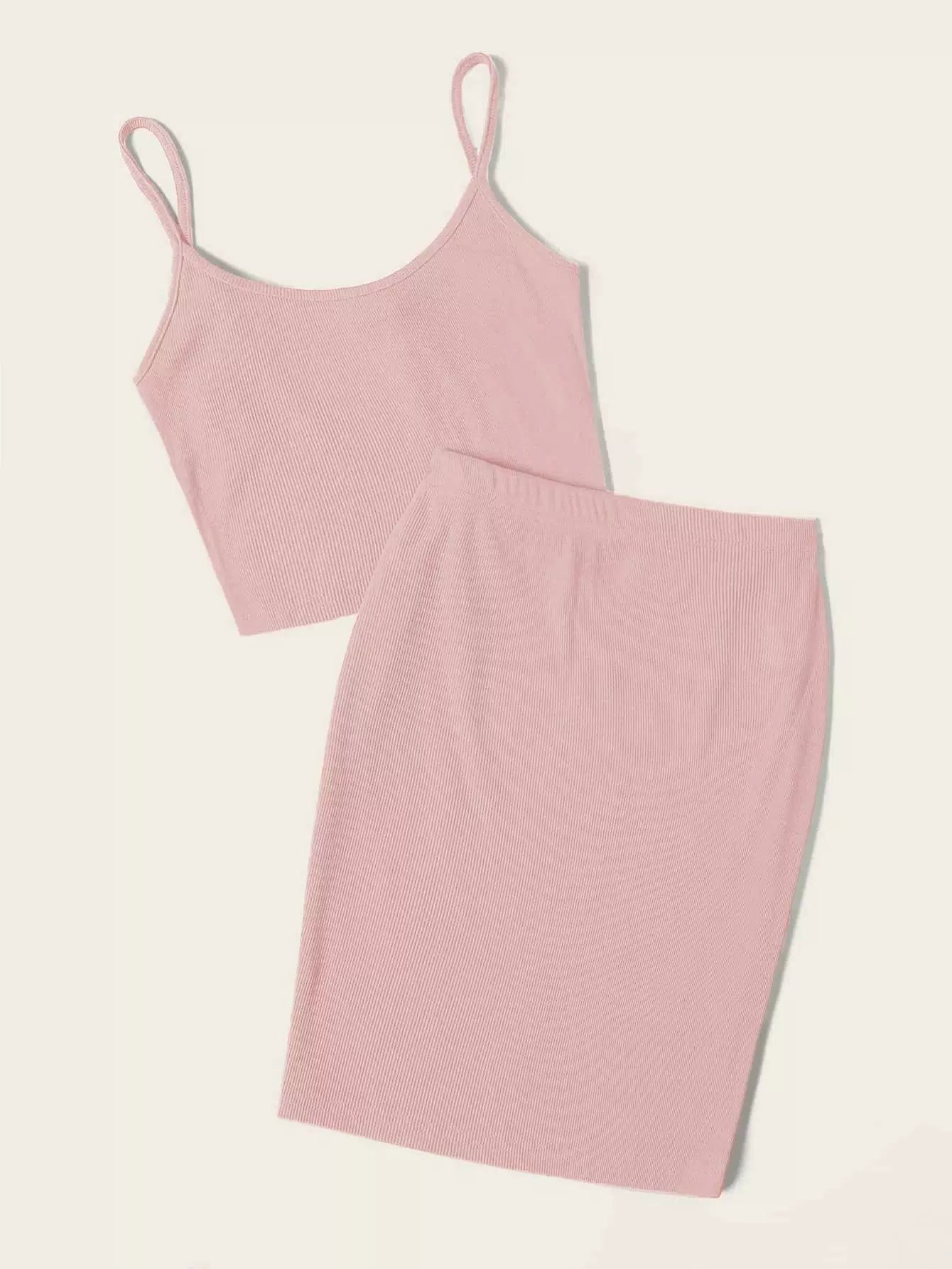 طقم قميص قصير محبوك على شكل ضلع سادة مع تنورة
