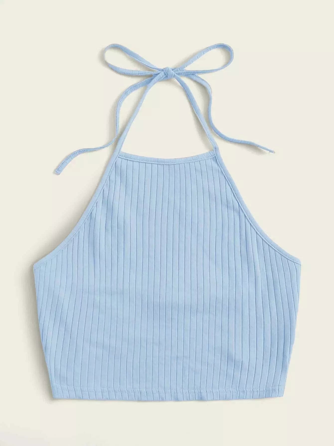 النساء - بلوزة هالتر متماسكة مضلعة