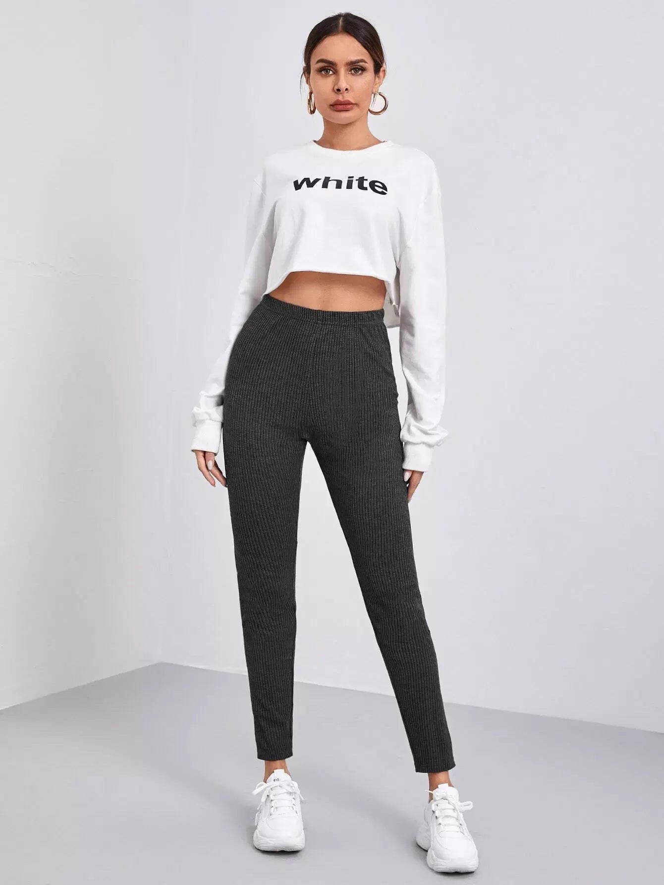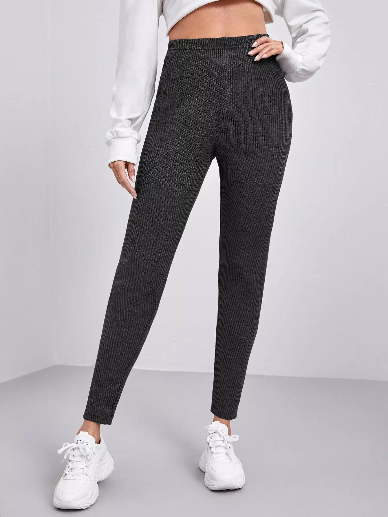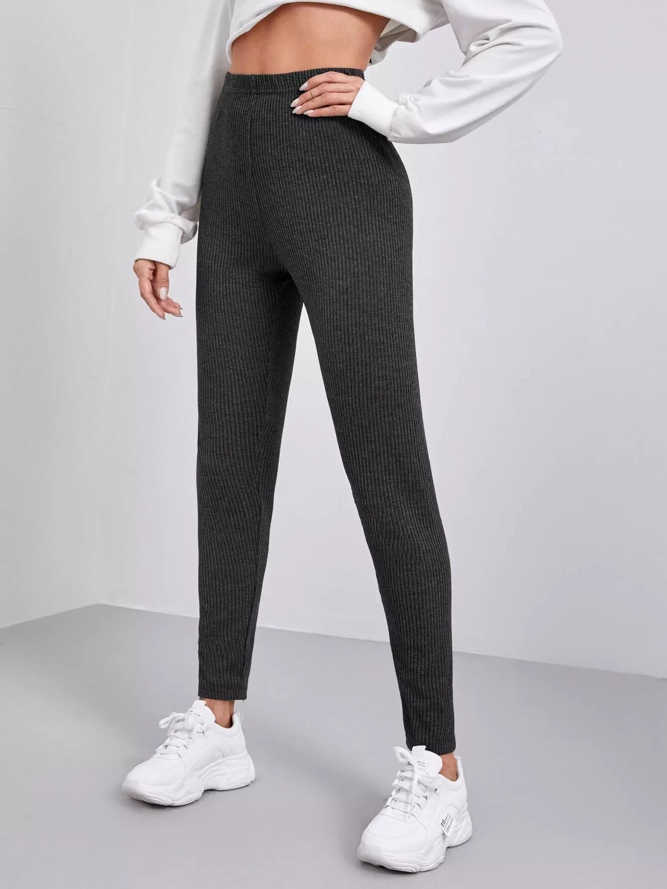 بنطال ضيق من نسيج مضلع سادة