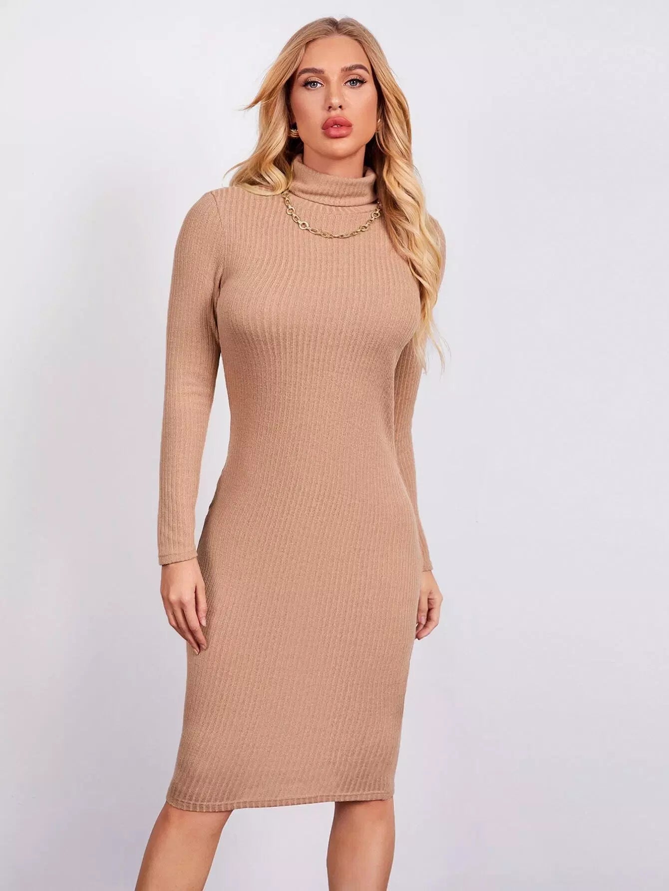 فستان سادة محبوك على شكل ضلع محبوك سادة