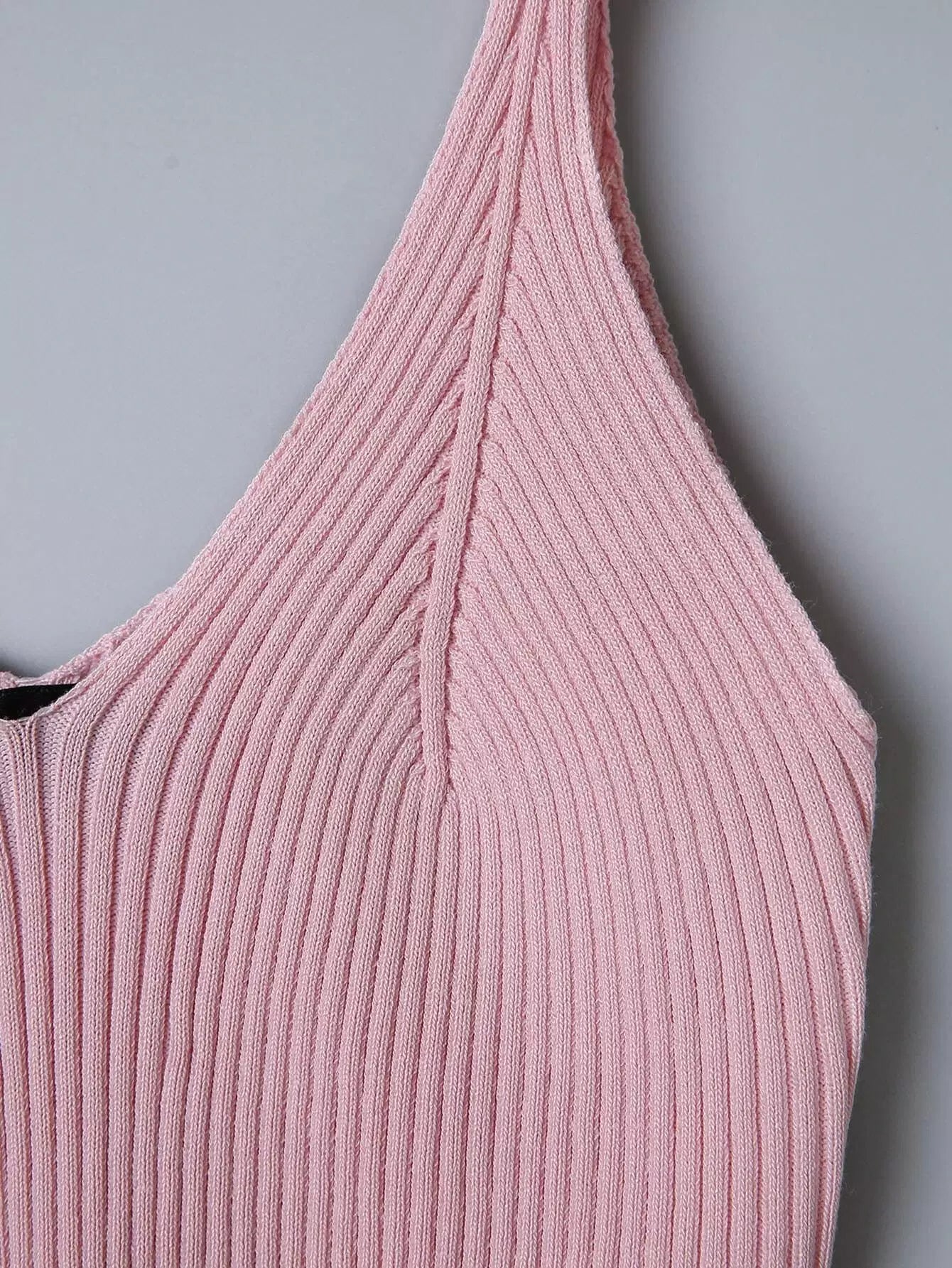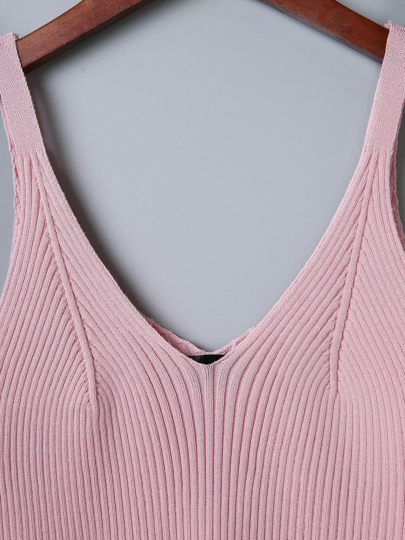 النساء - بلوزة محبوكة ومضلعة صلبة