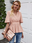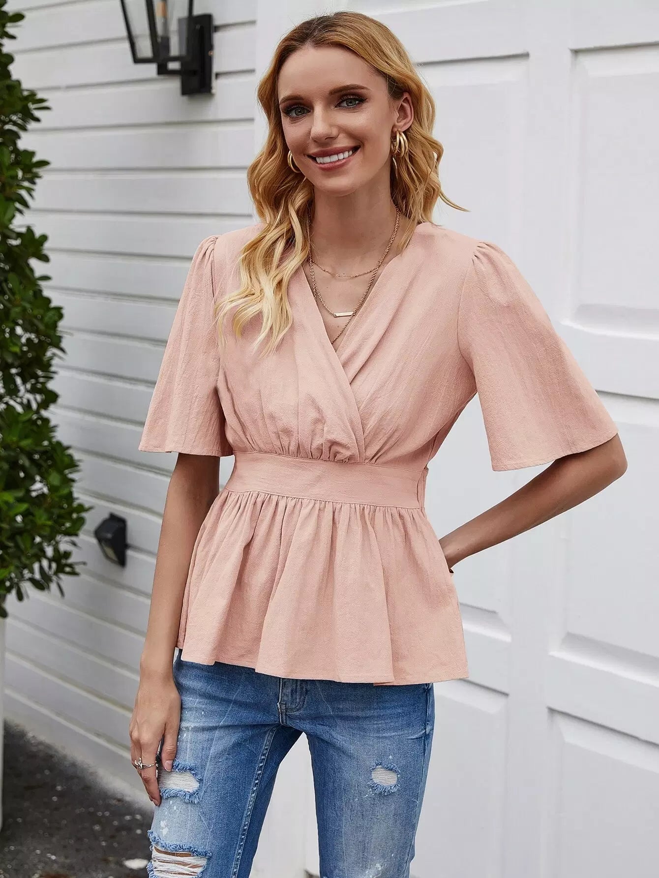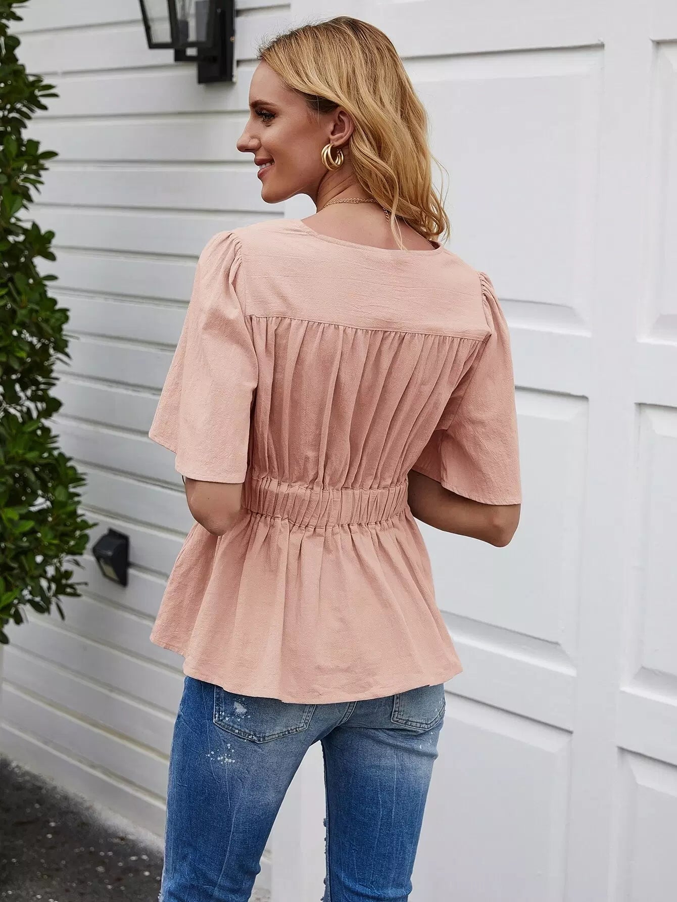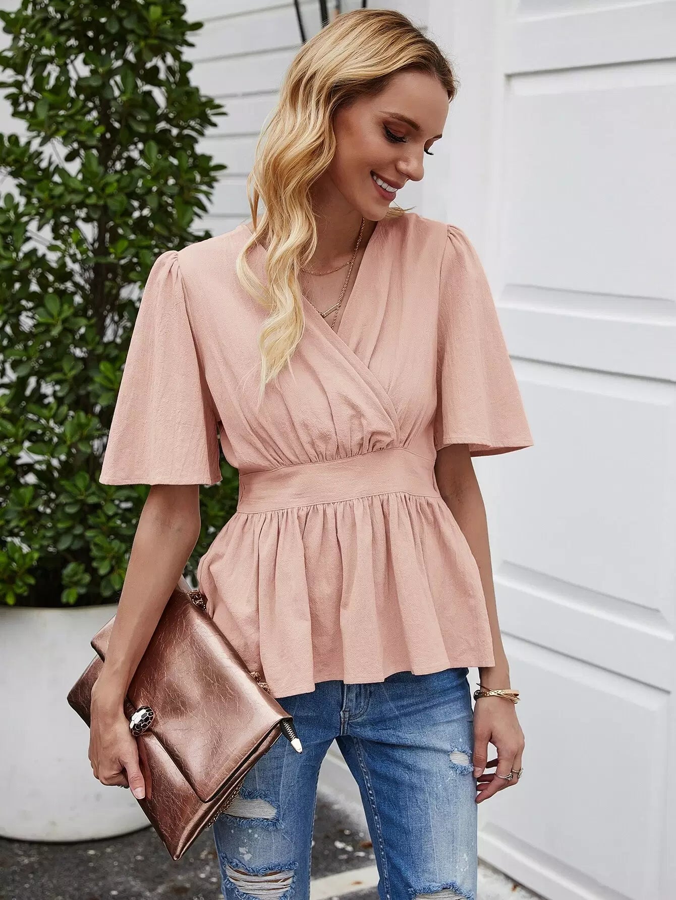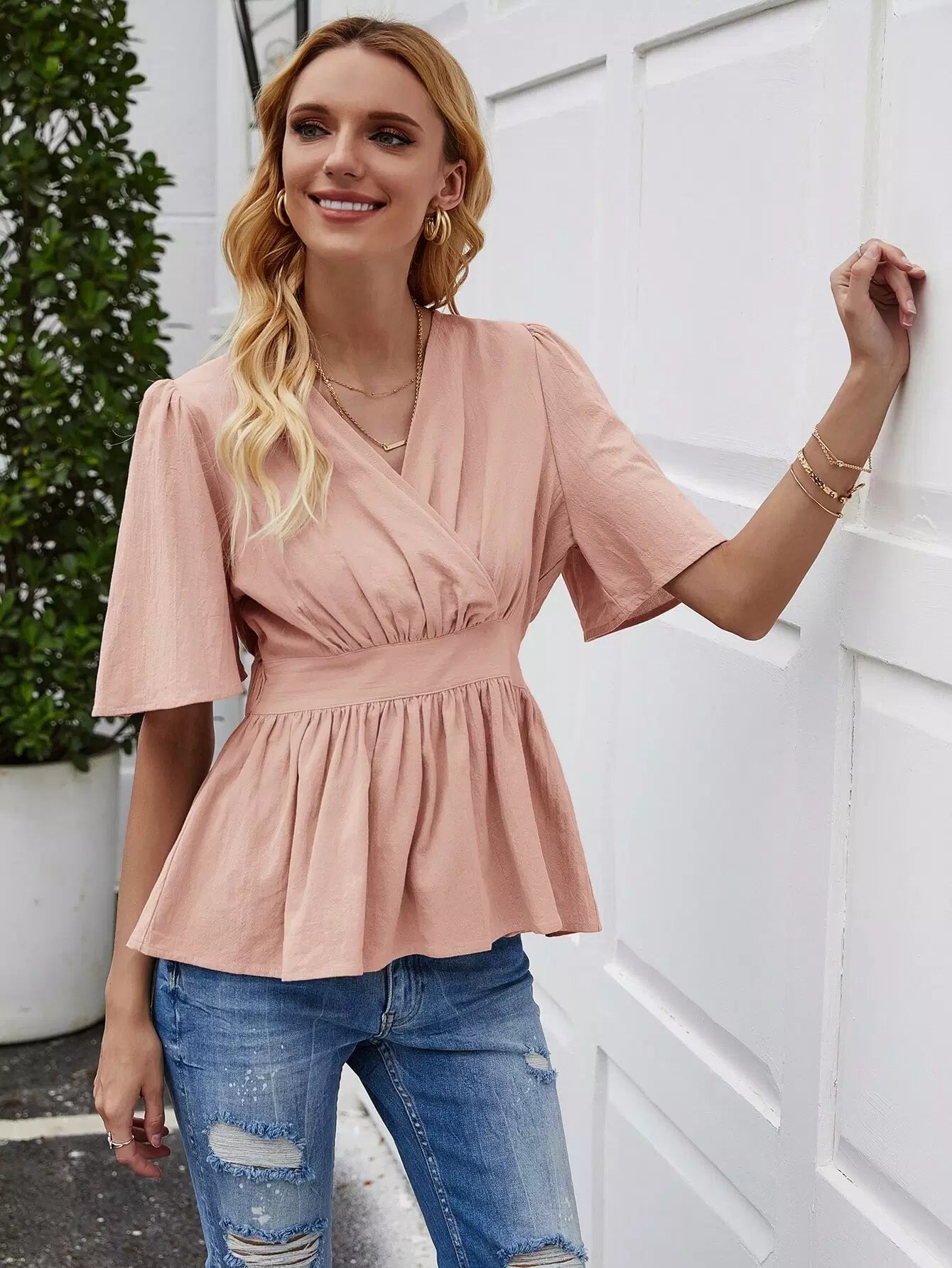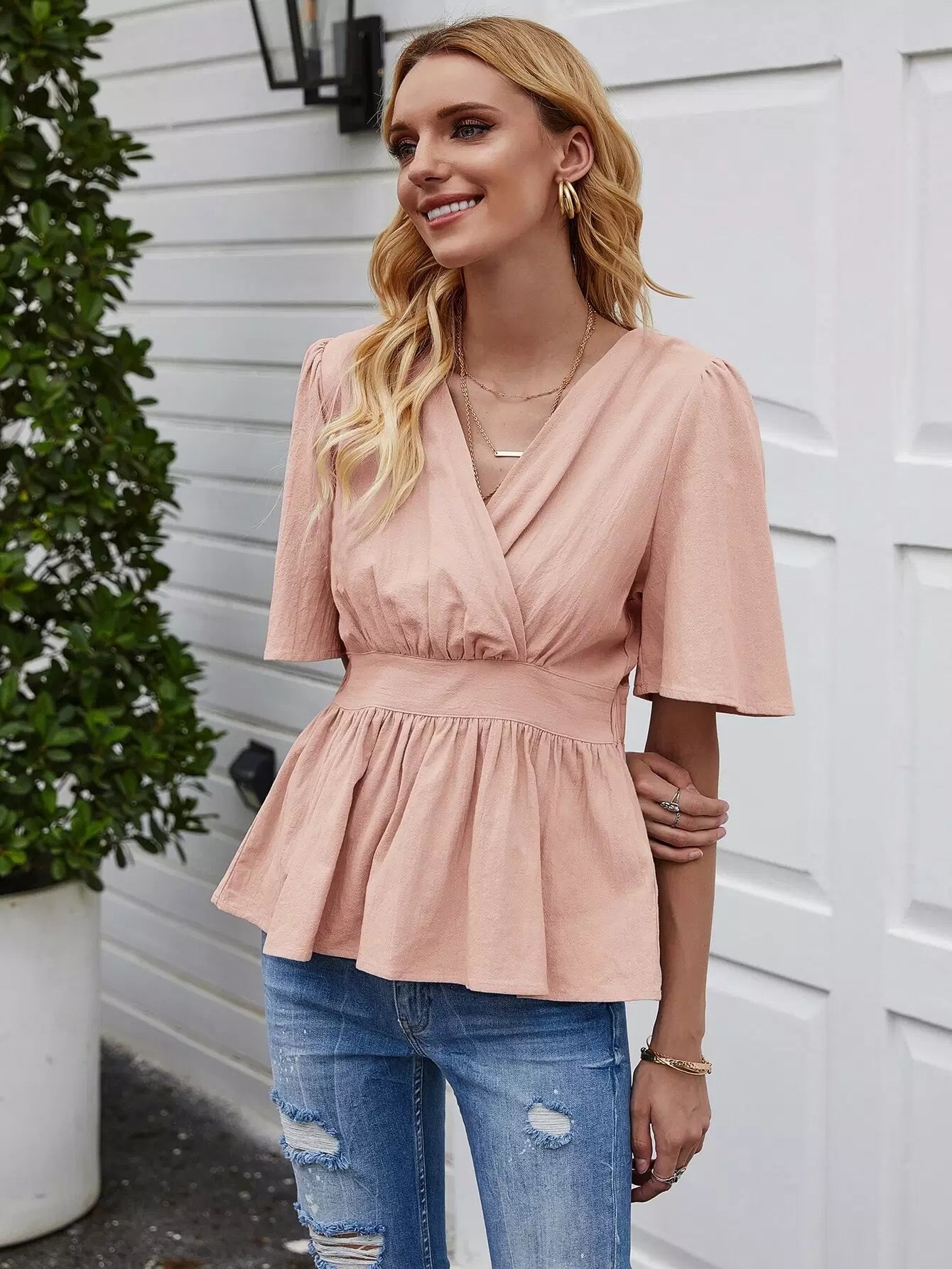 بلوزة بيبلوم سادة مكشكشة من الخلف سادة