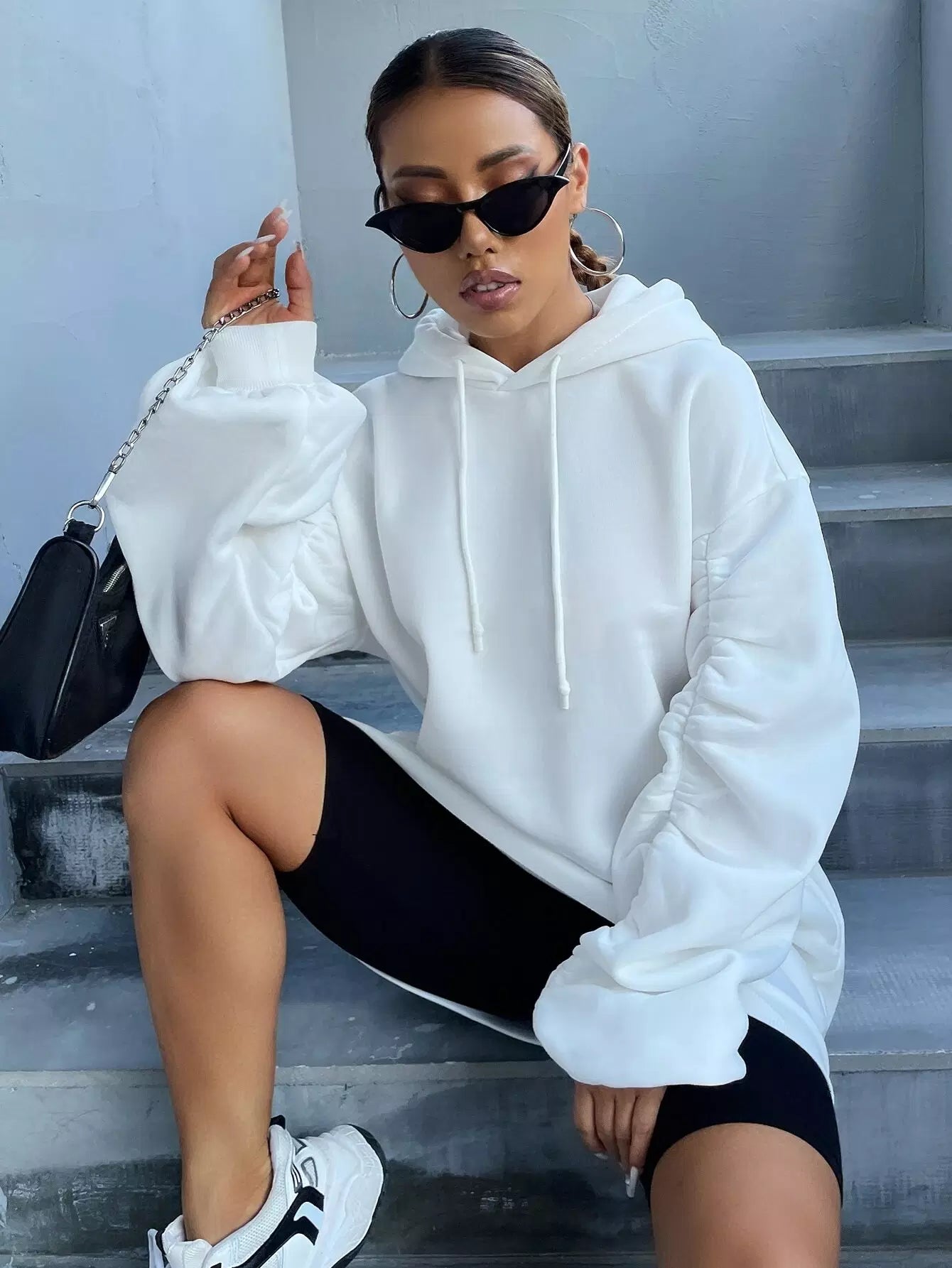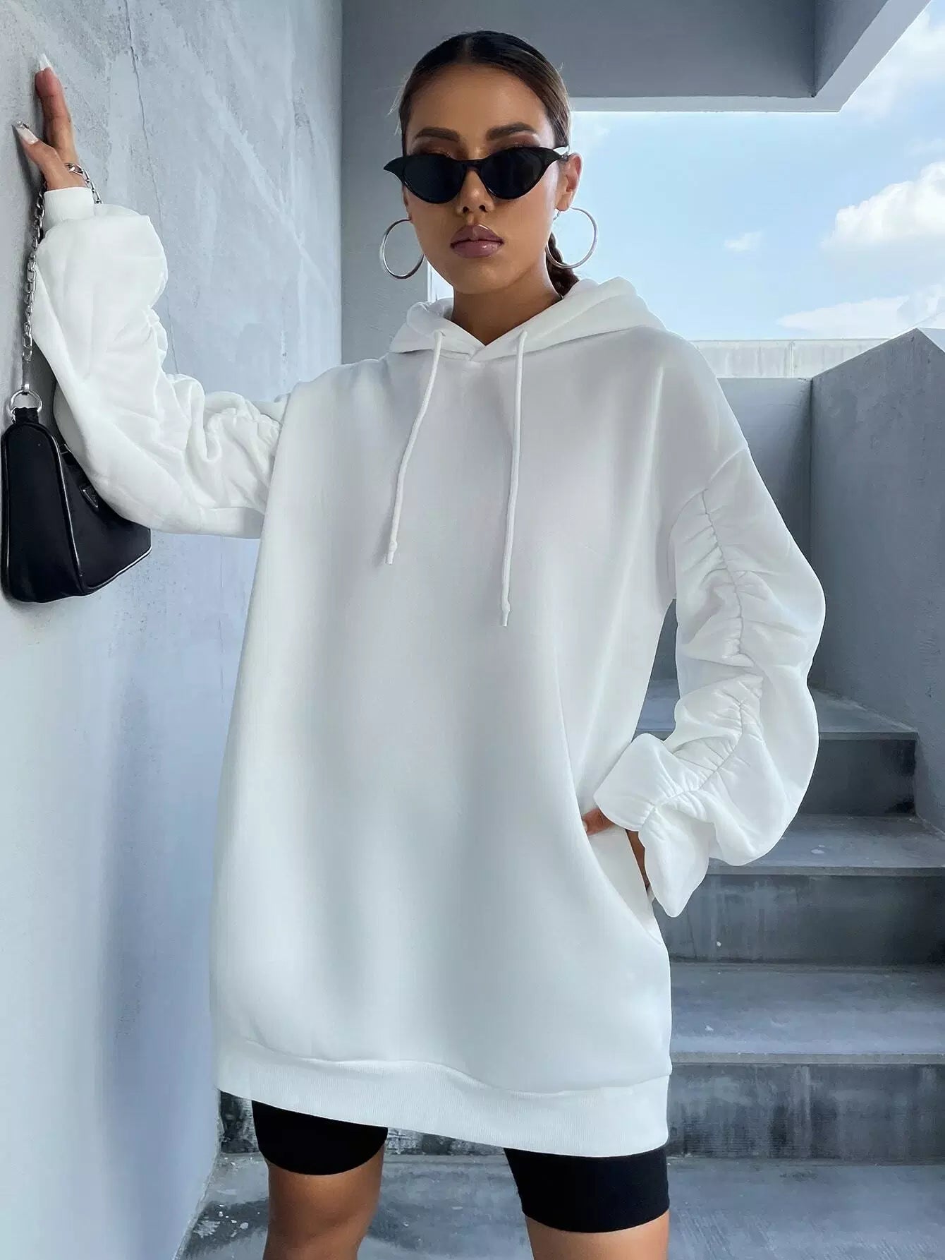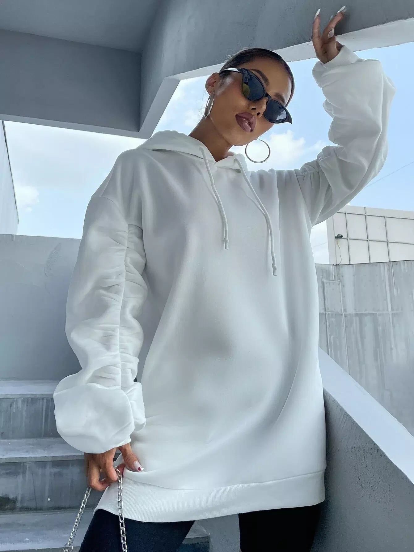 هودي سادة بأربطة مكشكشة ذات هودي كبيرة الحجم