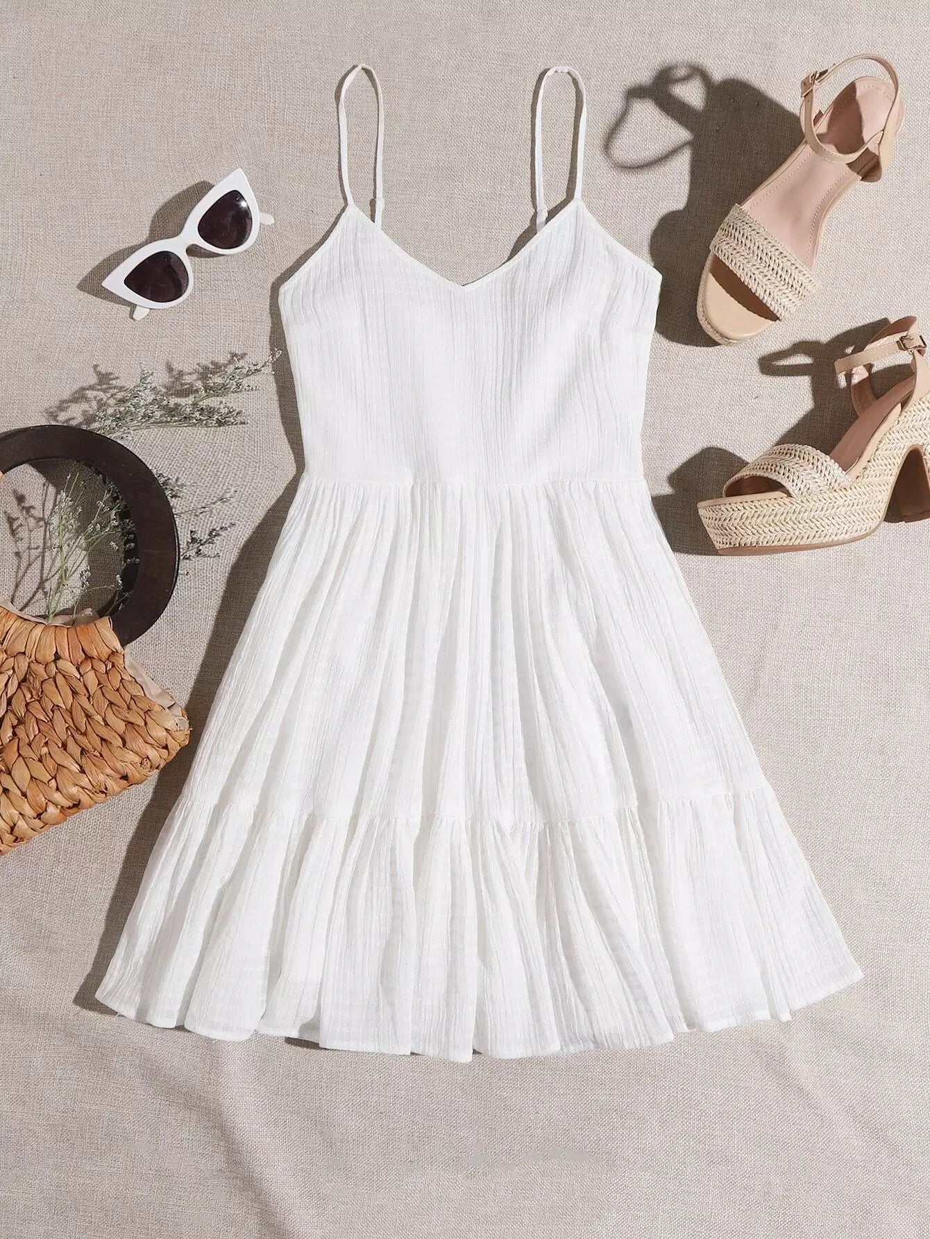 فستان كشكش سادة بحافة مكشكشة