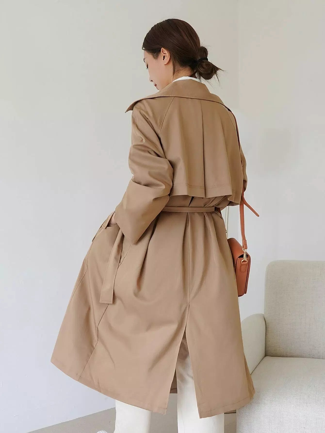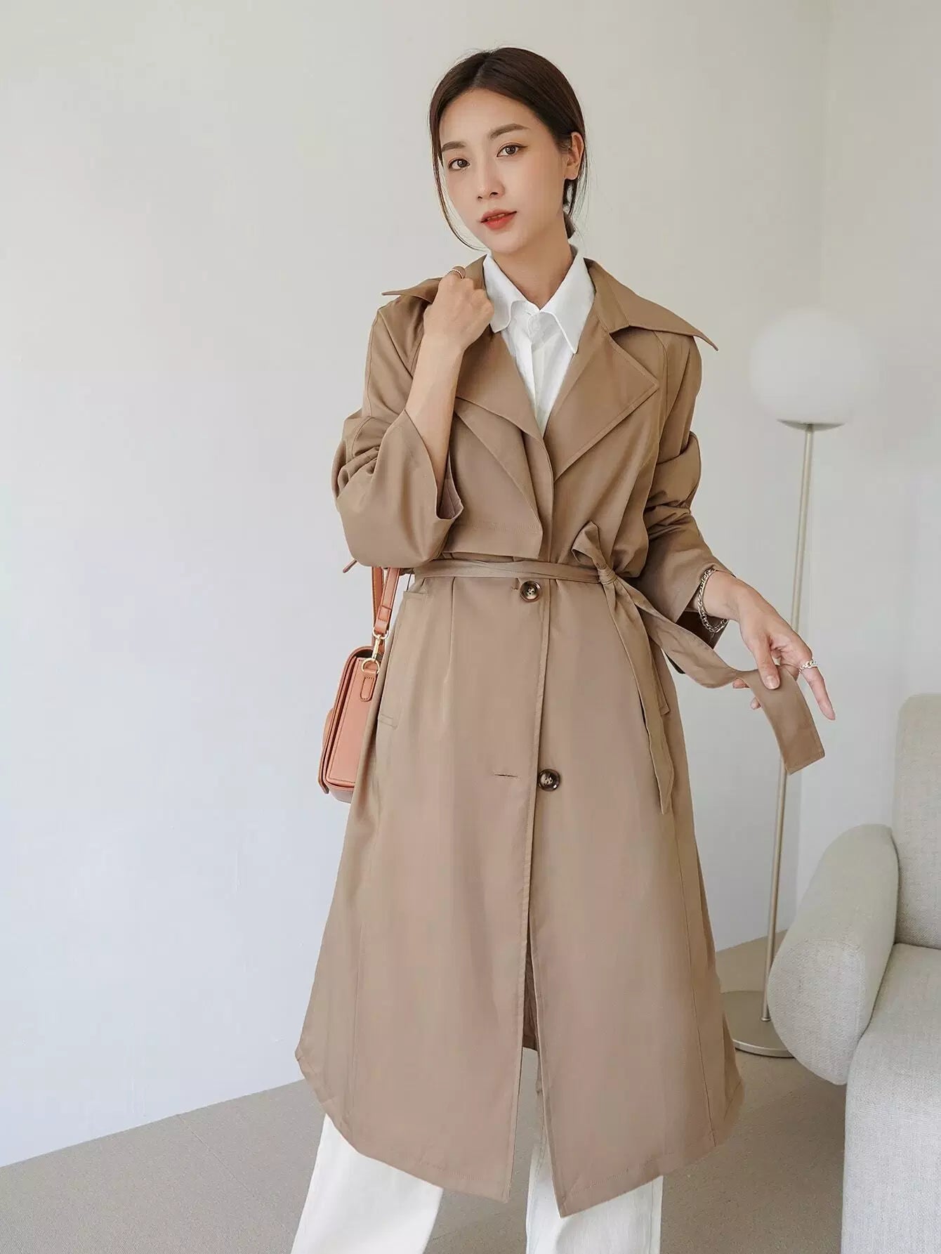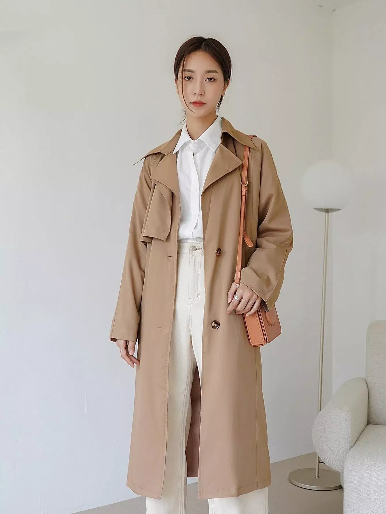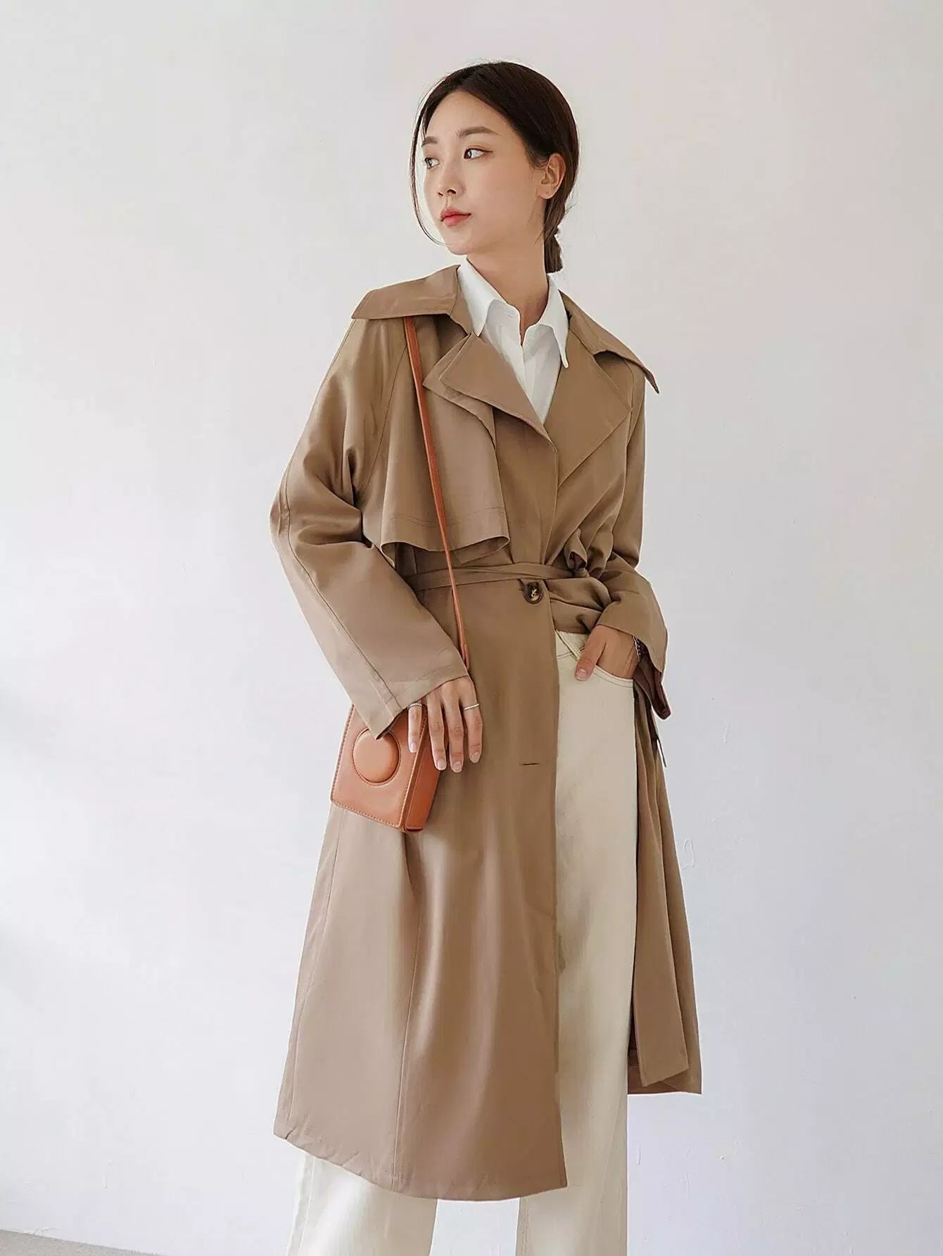 معطف واقٍ من المطر بصدر واحد سادة بدون حزام