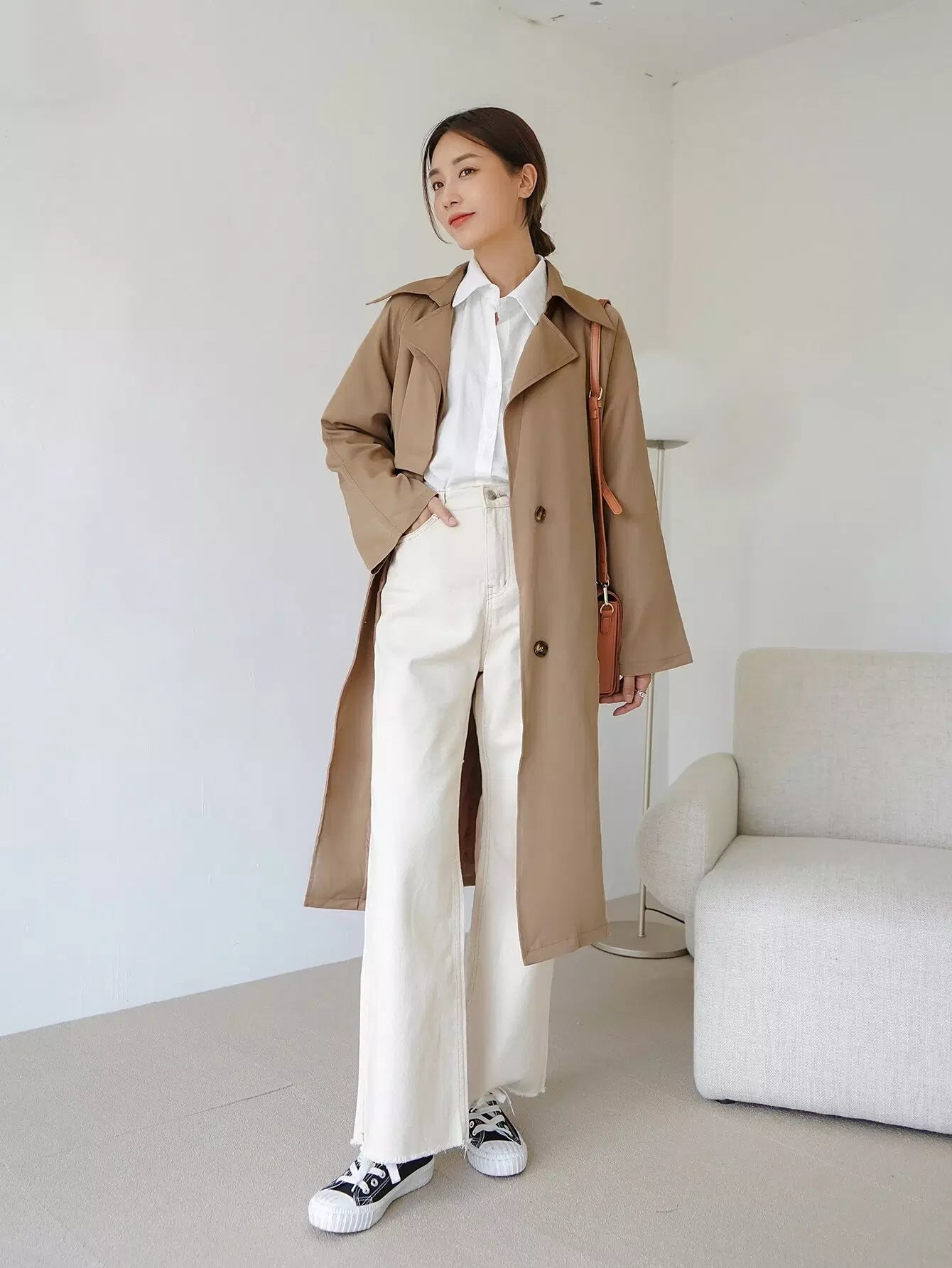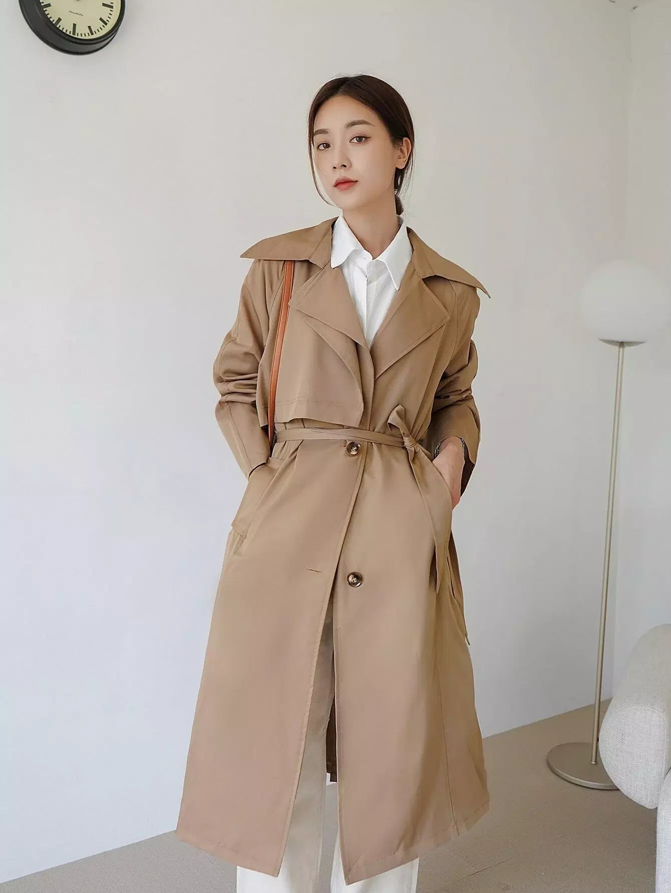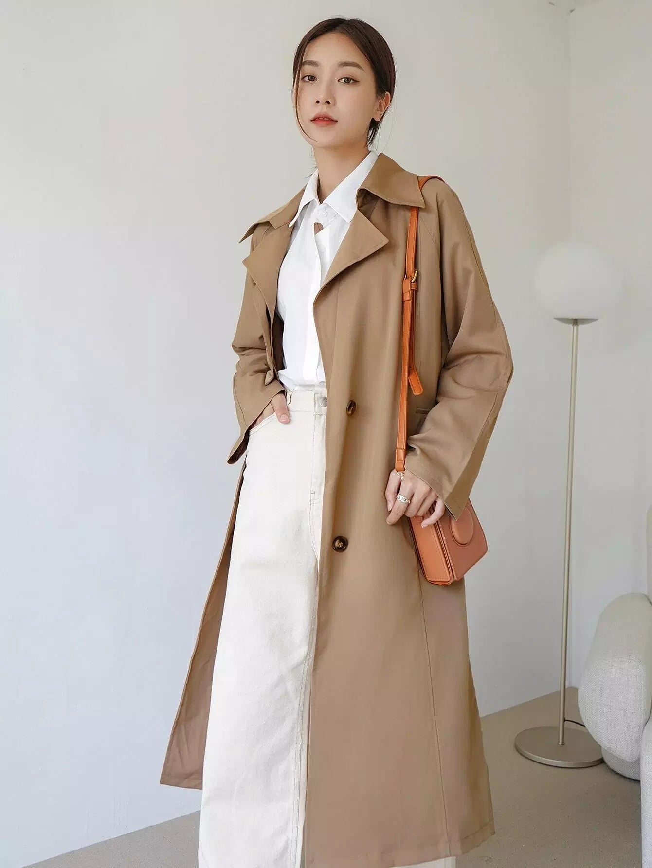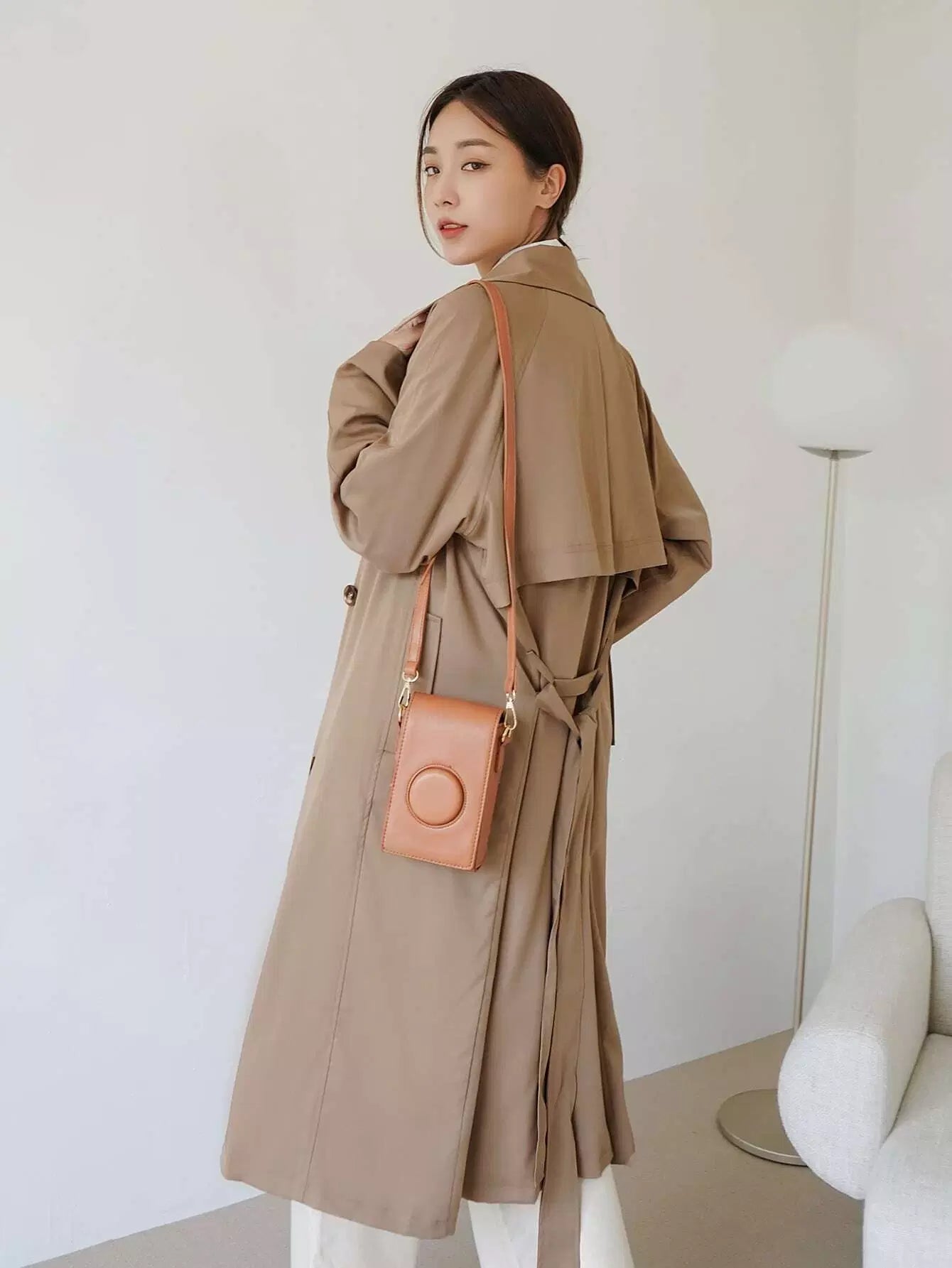 معطف واقٍ من المطر بصدر واحد سادة بدون حزام