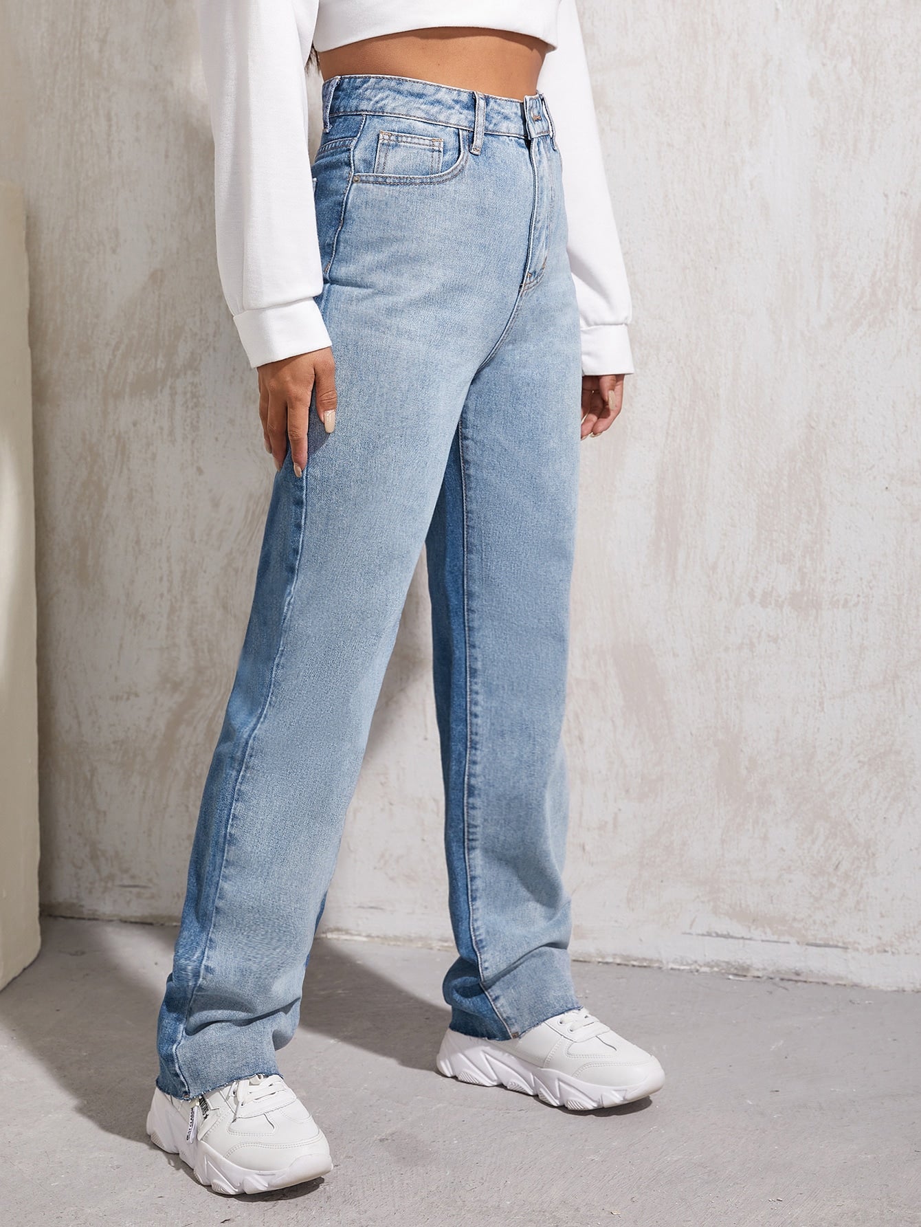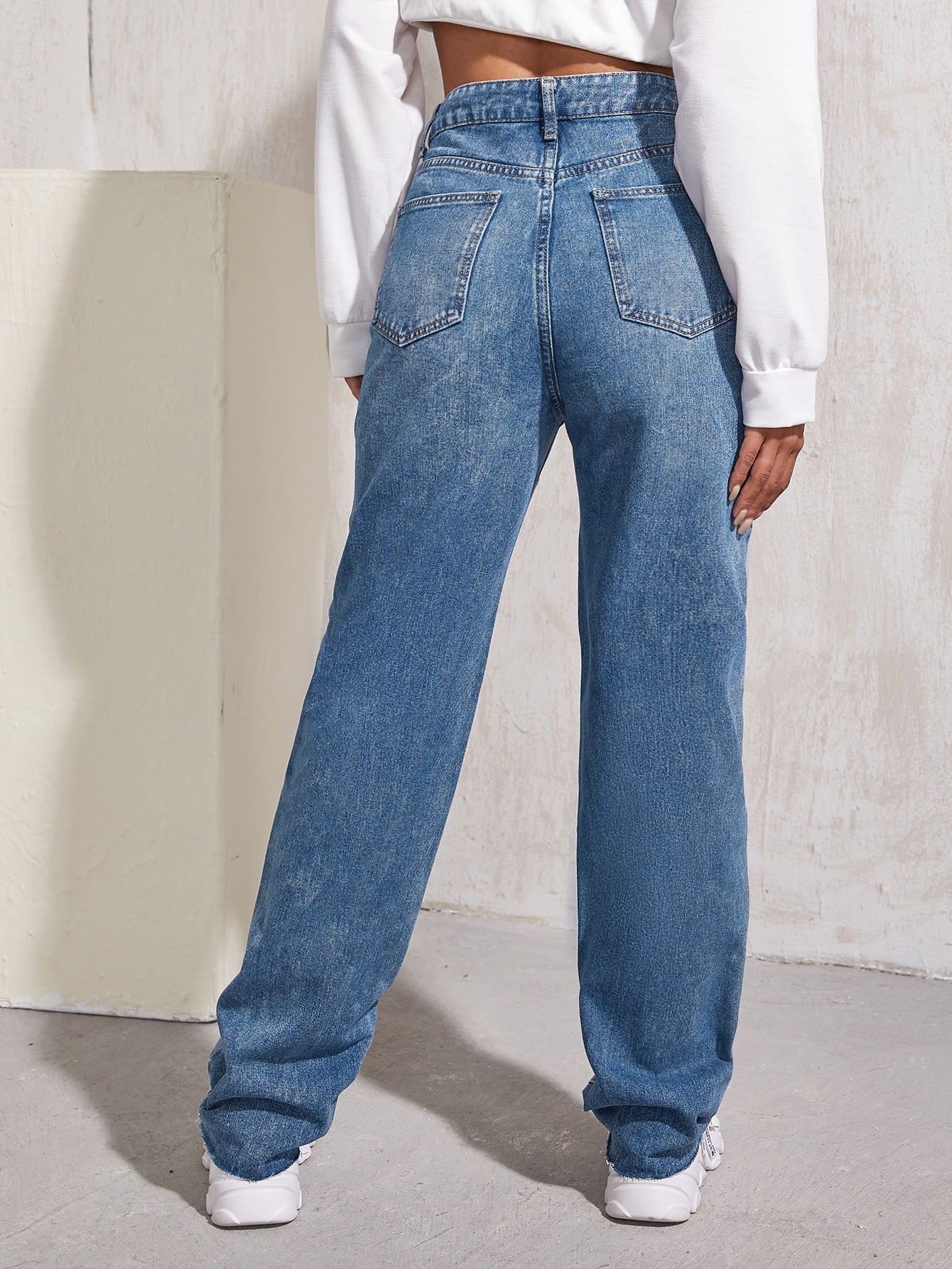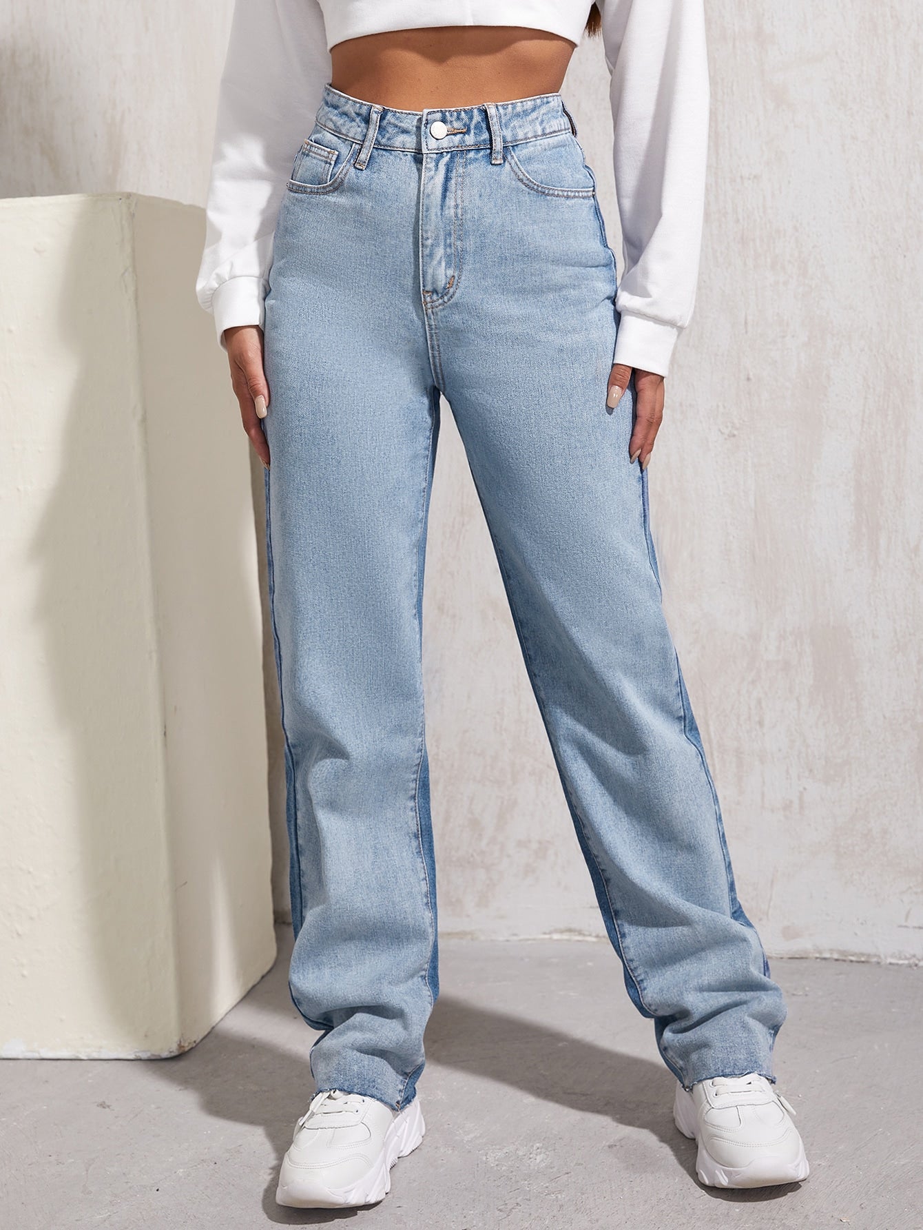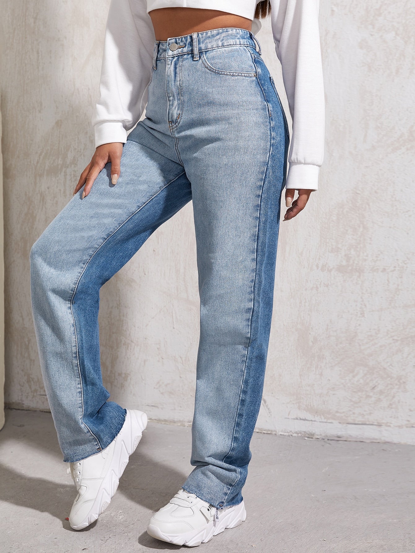 High Waist Two Tone Boyfriend Jeans