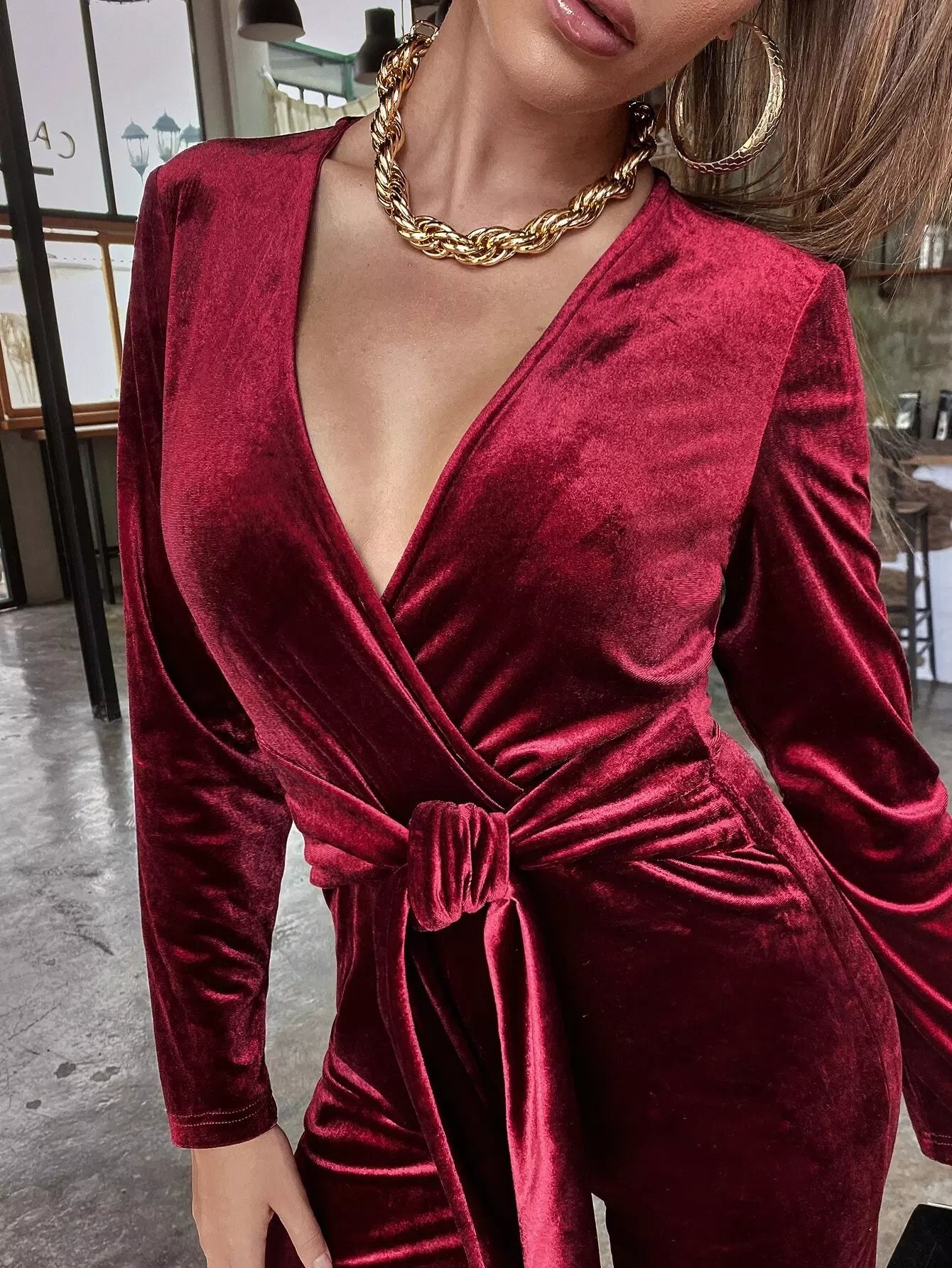 | خط العنق | رقبة عميقة على شكل حرف V |