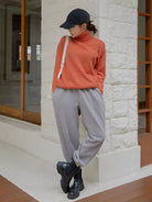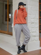 سترة سادة بياقة مدورة منسدلة الكتف سادة
