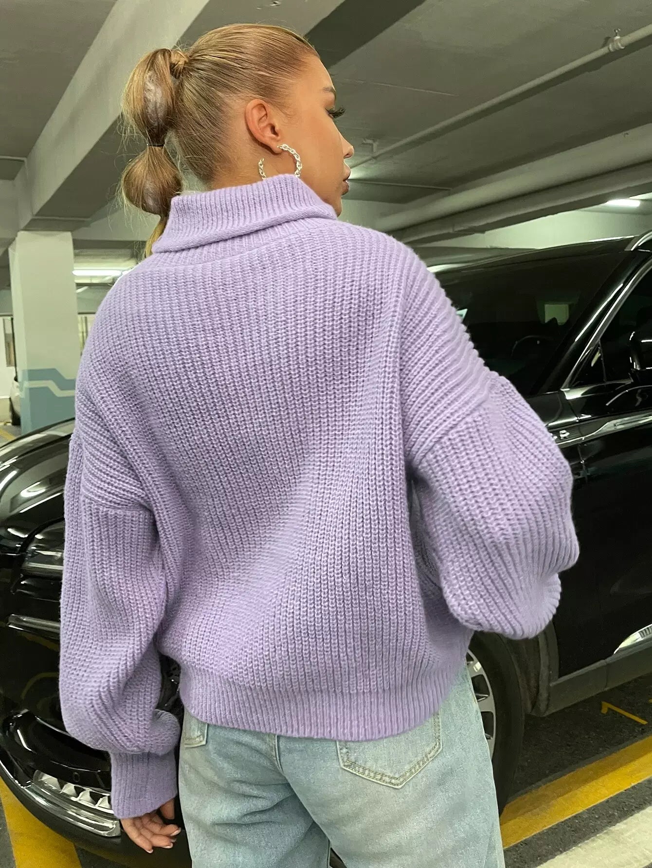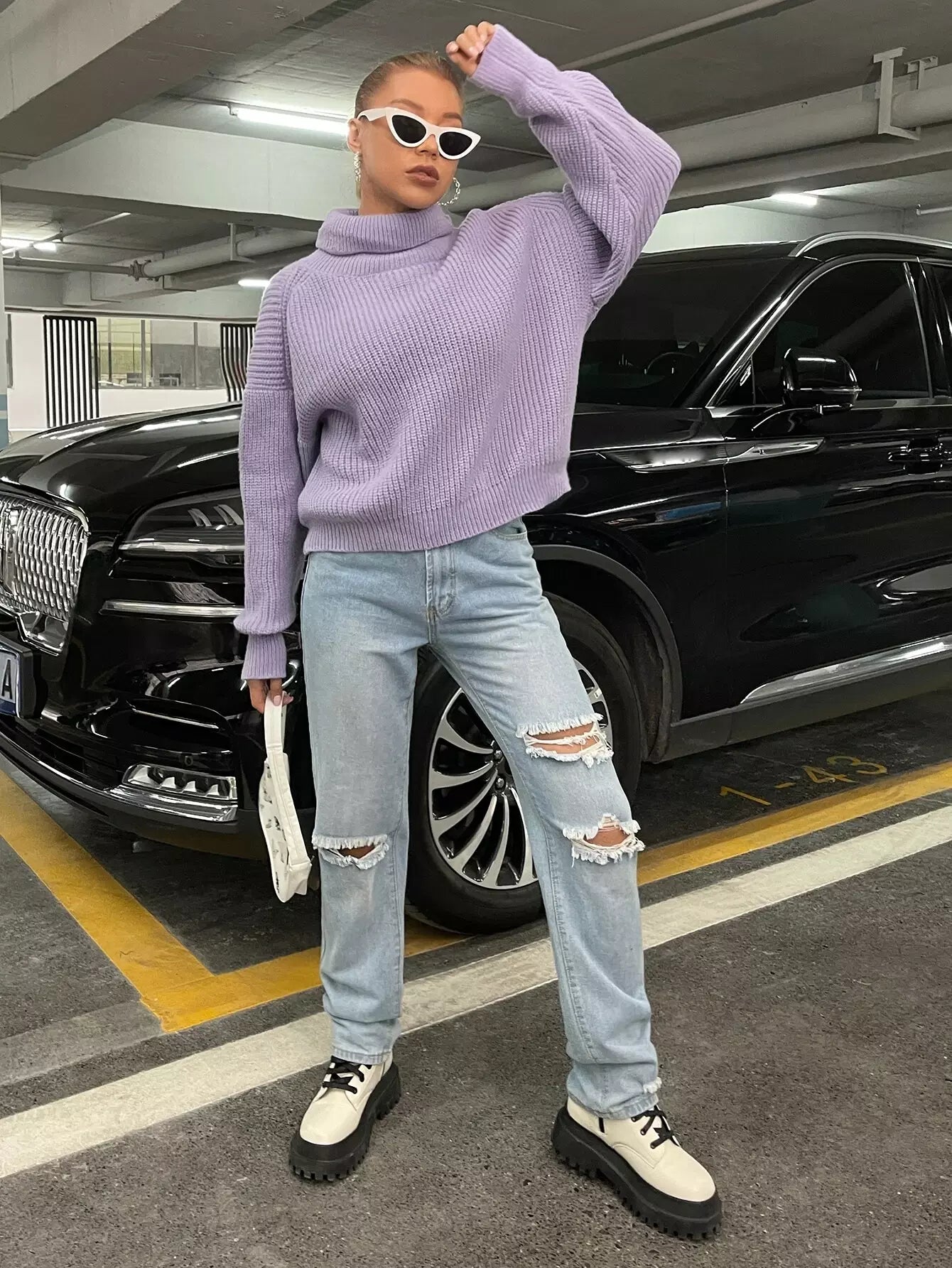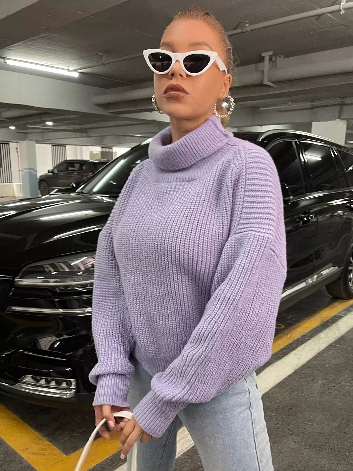 سترة سادة بياقة مدورة منسدلة الكتف سادة